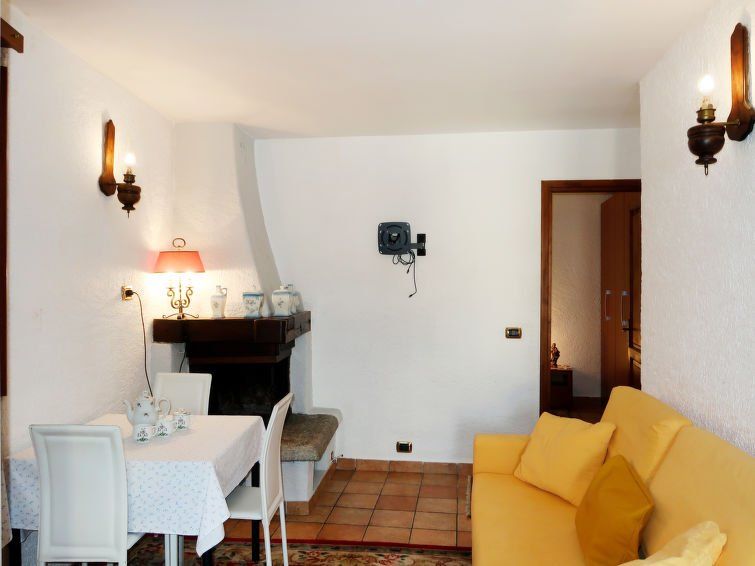 2-room apartment 45 m2 on 1st floor. Practical furnishings: living/dining room with open-hearth fireplace and dining table. 1 double bedroom. Open kitchen (mini-oven, oven, dishwasher, 4 gas rings, toaster, freezer, electric coffee machine). Shower/WC. Heating. Natural stone floors.