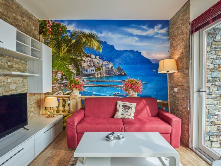 3-room villa 100 m2 on 2 levels. Fully renovated in 2021, modern furnishings: living/dining room with sliding door, panoramic window with 1 double sofabed (140 cm), satellite TV (flat screen). Exit to the terrace. 1 double bedroom with satellite TV. Exit to the terrace. Open kitchen (oven, dishwasher, 4 induction hot plates, microwave, freezer, electric coffee machine).