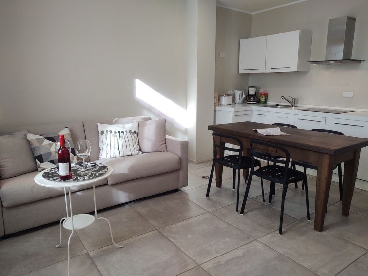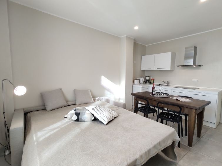 "Monolocale", 1-room apartment 40 m2, on the ground floor. Beautiful furnishings: living/sleeping room with 1 double sofabed, dining table and satellite TV. Open kitchen (dishwasher, 4 induction hot plates, toaster, kettle, microwave, electric coffee machine). Shower/WC. Oil heating.