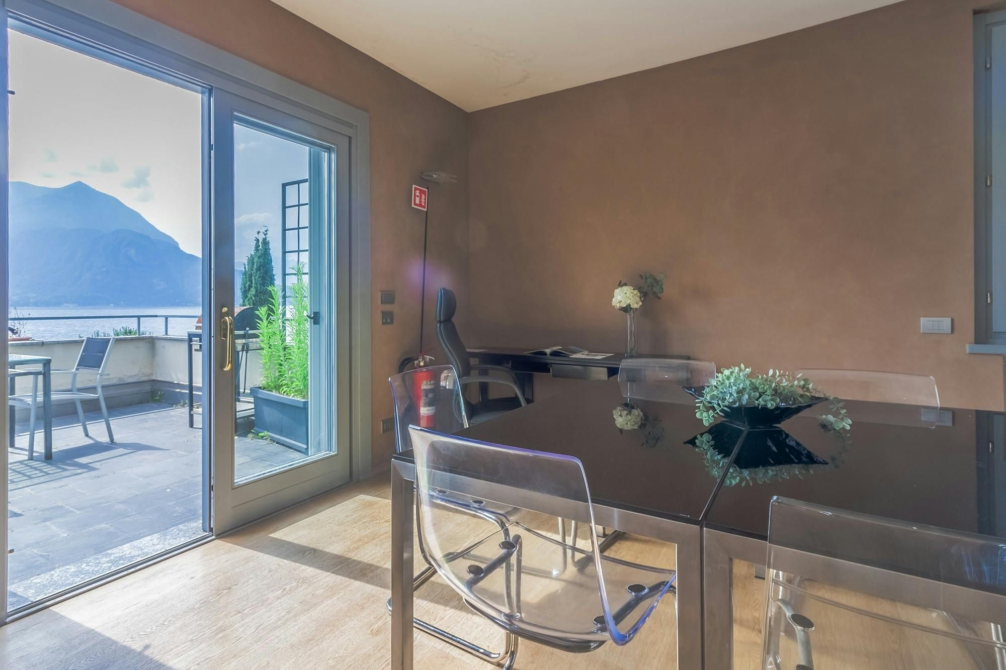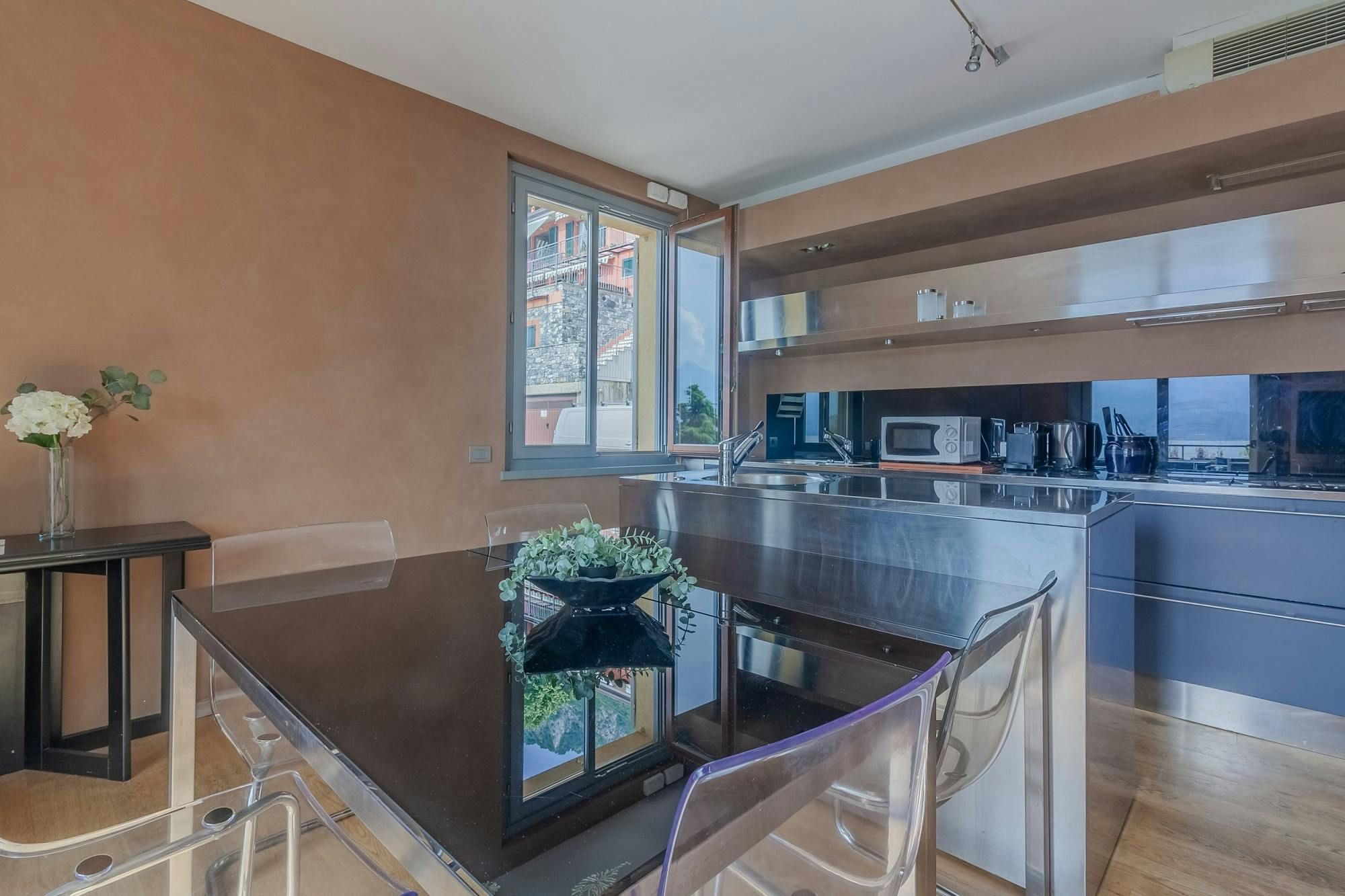 This modern apartment is in a residential area in the picturesque village of Fiumelatte on Lake Como. From this setting, you can explore the towns and villages lining Lake Como – the historic centre of Varenna is 2 kilometres away, and you can catch a ferry to Bellagio and Menaggio from 3 kilometres away. The star of the show here is the large terrace, where you can admire lake views, dine alfresco, and revel in the tranquillity. At full occupancy, two guests will sleep on a sofa bed in the open-plan living, dining, and kitchen space, so those seeking more privacy might prefer to stick to a guest count of four.