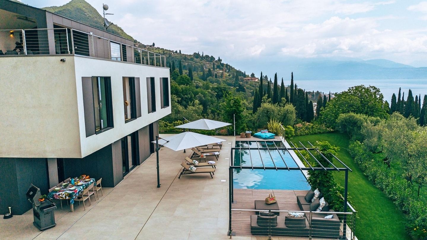 Nestled in the verdant hills overlooking Lake Garda, this modern three-bedroom home is the ideal getaway for those seeking a relaxing getaway next to one of Italy’s most spectacular natural features. Set across three storeys, there’s plenty of space to move around - whether you’re lounging on the sofa that looks directly out to the lake, entertaining around the dining table, or whipping up a classic Italian meal in the fully-equipped kitchen. The highlight, though, is that view – visible from all the bedrooms, and best-experienced on the top-floor terrace. Head into nearby Toscolano Maderno when you’re ready for some lakeside exploring.