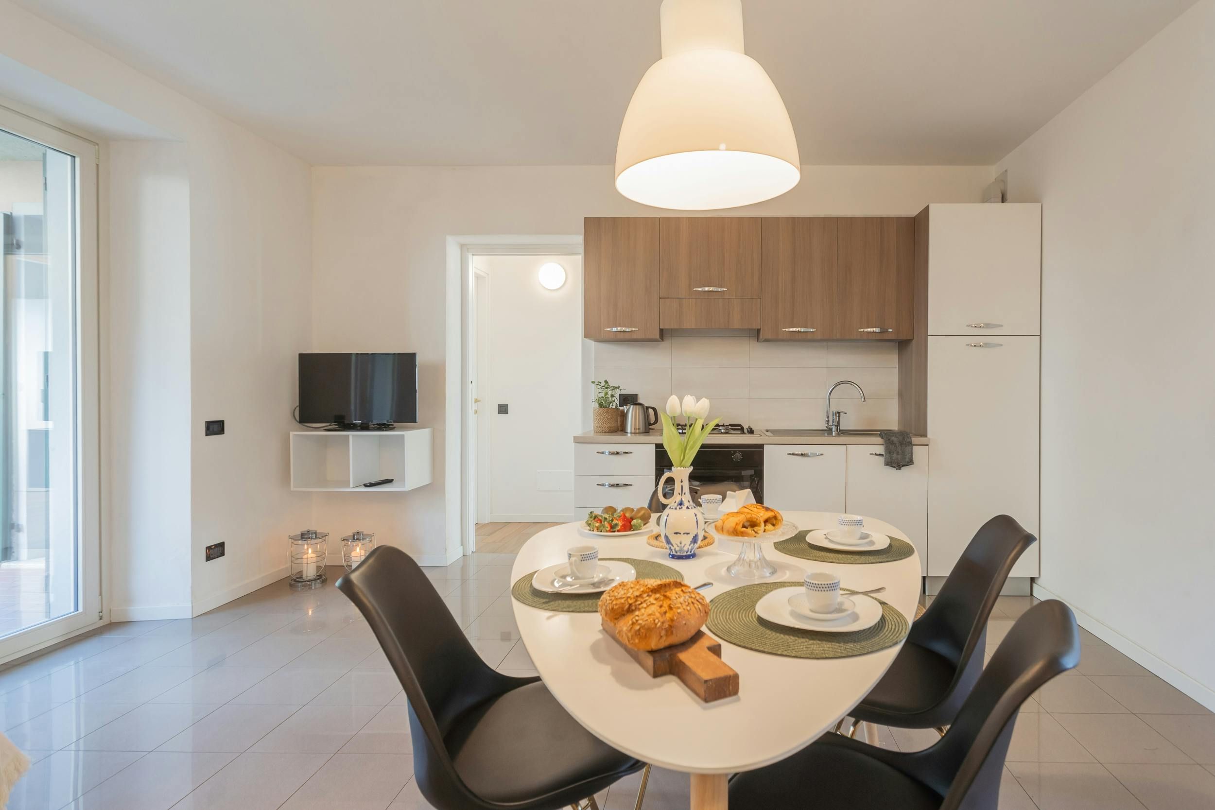 Set in the historic lakeside town of Gravedona, this charming apartment is just steps from Lake Como’s sparkling waters. The interiors are bright and welcoming, with an open-plan kitchen and living area that opens directly onto an enclosed garden, with views of the town on one side and the mountains on the other. Stroll along the lakeside promenade or take to the hiking and cycling trails that weave through the dramatic surrounding scenery.