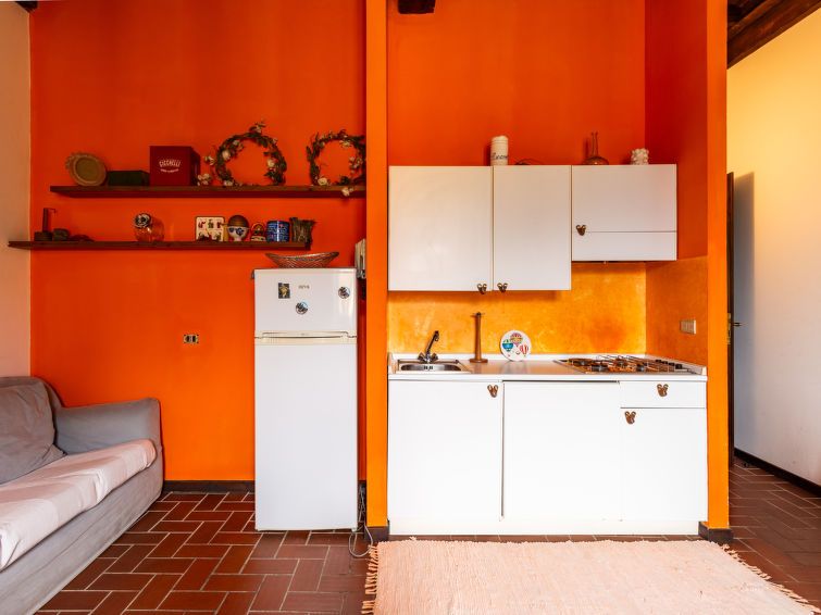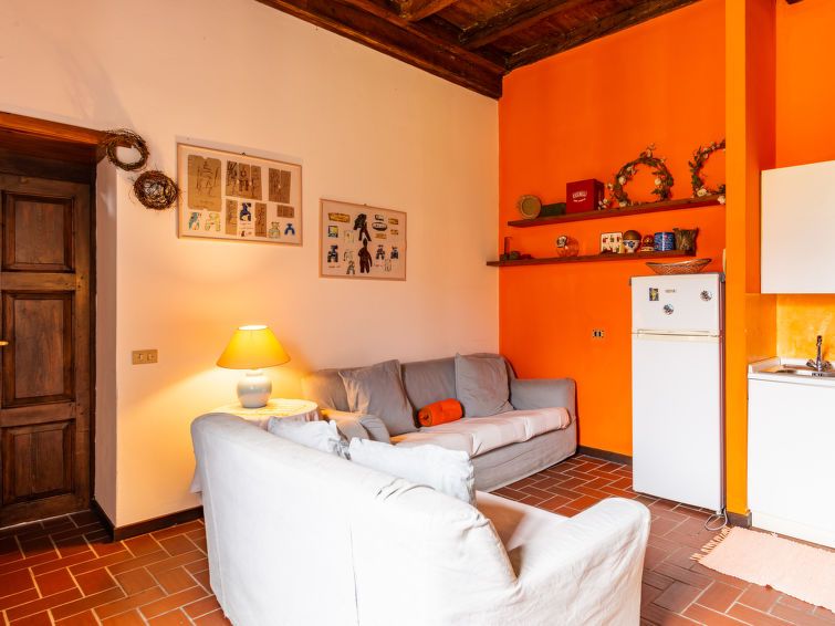 "Tommaso", 3-room apartment 85 m2 on 2nd floor. Rustic and stylish furnishings: open living/dining room with dining table. Large walk-through room with 1 double bed. 1 small double bedroom. Kitchenette (Gas stove, 2 gas rings, toaster, kettle, microwave, electric coffee machine). Shower/bidet/WC.