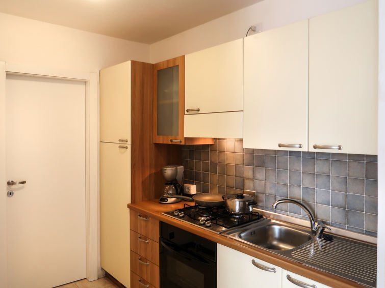 "Viola", 3-room apartment 45 m2, on the upper ground floor, south-east facing position. Modern furnishings: living/dining room with dining table, satellite TV and air conditioning. Exit to the balcony. 1 room with 1 french bed (160 cm), air conditioning. 1 room with 2 beds. Open kitchen (oven, dishwasher, 4 gas rings, toaster, kettle, microwave, electric coffee machine).