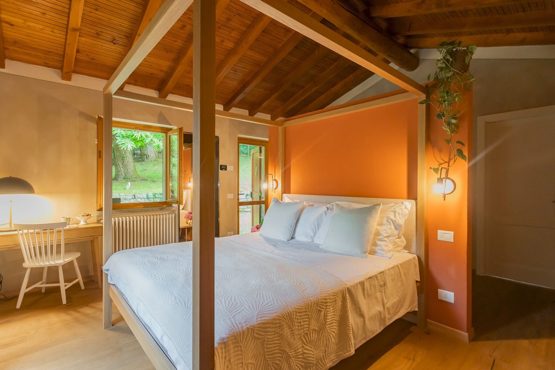 In terms of location, you’re secluded away between the mountains, but the shore of Lake Como is a short drive. Head to Bellagio, where cobbled streets lead to the lake shore and water taxis head out onto the water – it’s just a ten-minute drive away.