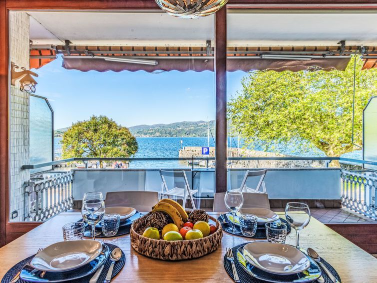 "Attilio lake front view", 3-room apartment 90 m2 on 2 levels. Practical furnishings: entrance hall. 1 room with 2 beds. Shower/WC. Upper floor: living/dining room with panoramic window with TV and air conditioning. Exit to the terrace. 1 double bedroom with bath/bidet/WC and air conditioning.