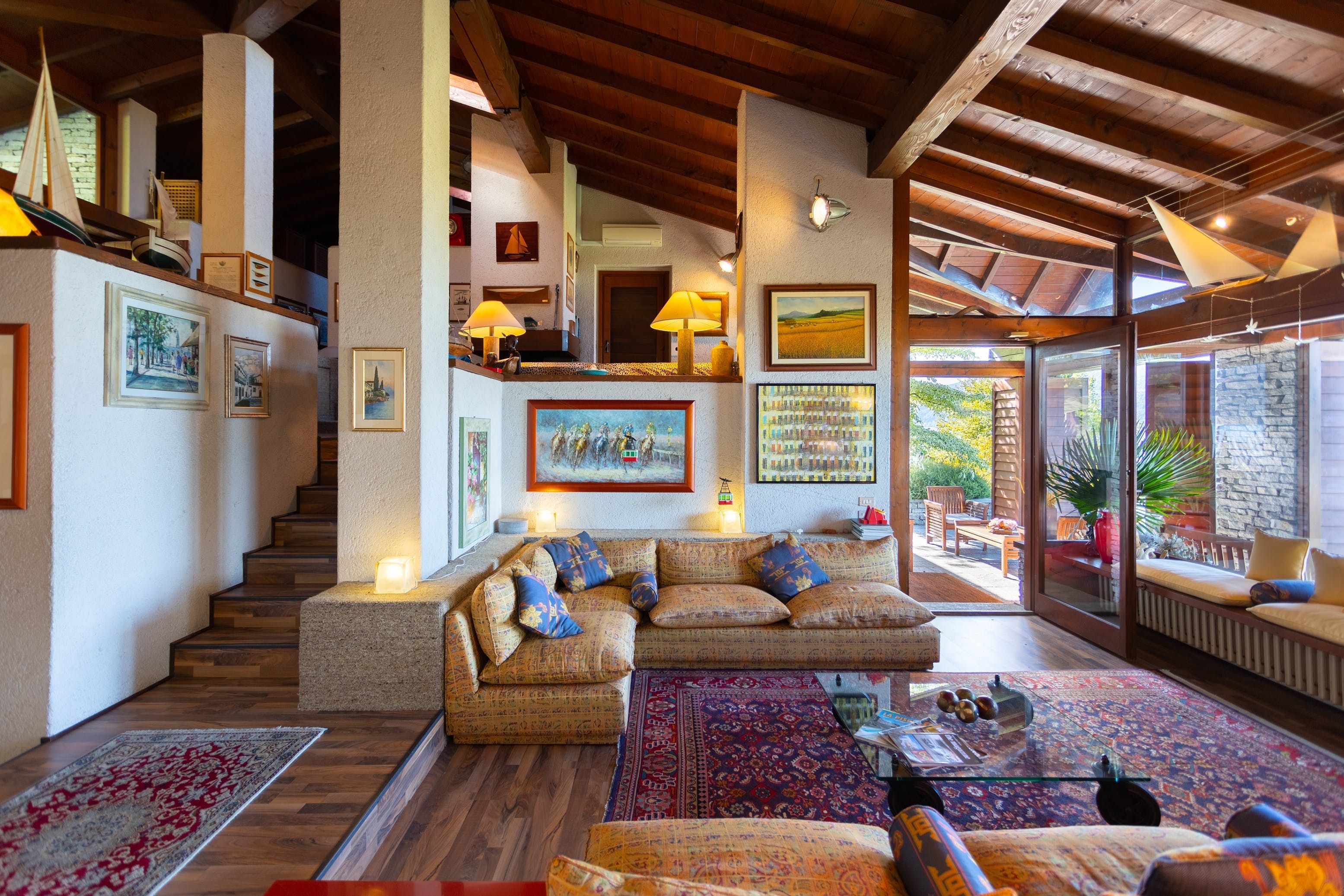 This idyllic villa is perched right on Lake Maggiore, with direct access to a private stretch of beach, so it's perfect for a serene lakeside getaway. If that wasn't enough, you can also unwind in the private sauna, take a dip in the pool, or while away the days on a lounger, taking in views of the mountains. A real highlight is the ground-floor suite, where you'll have direct access to the garden (and a jacuzzi with a view) – but upstairs, the living room is the more homely space, with its high ceilings and whimsical decor. As secluded as this home may seem, it's an easy drive to Laveno-Mombello, and the centre of Ispra is just a fifteen-minute walk away.
