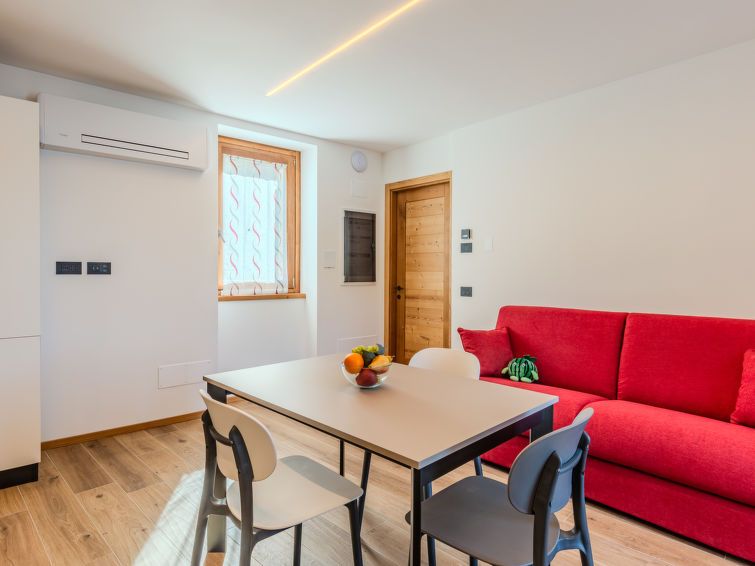 "Martin Pescatore", 2-room apartment 42 m2, on the ground floor. Tasteful furnishings: open living/dining room with dining table and TV. Exit to the balcony. 1 double bedroom. Open kitchen (oven, dishwasher, 4 induction hot plates, toaster, kettle, microwave, electric coffee machine, Capsules for coffee machine (Nespresso) extra).