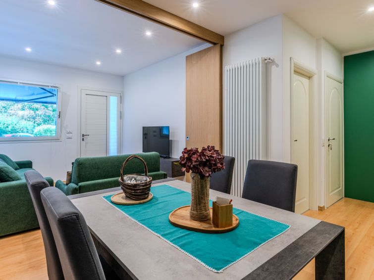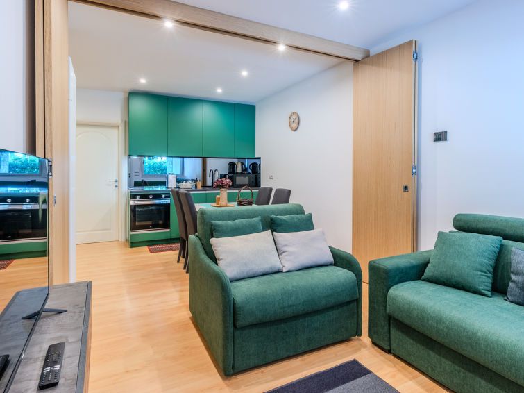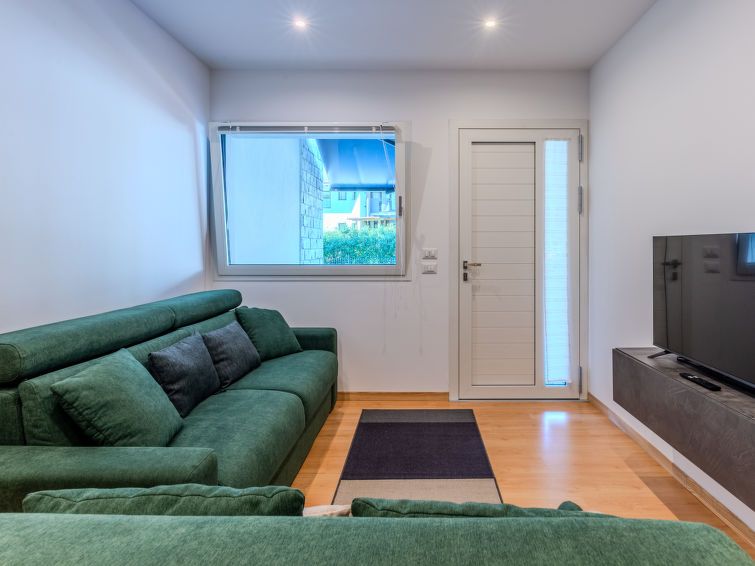 2-room apartment 50 m2, on the ground floor. Comfortable furnishings: living/sleeping room with 1 double sofabed and TV. Exit to the terrace. Open kitchen (oven, dishwasher, 4 induction hot plates, toaster) with dining table. Shower/bidet/WC. Gas heating. Heating available only from 15.