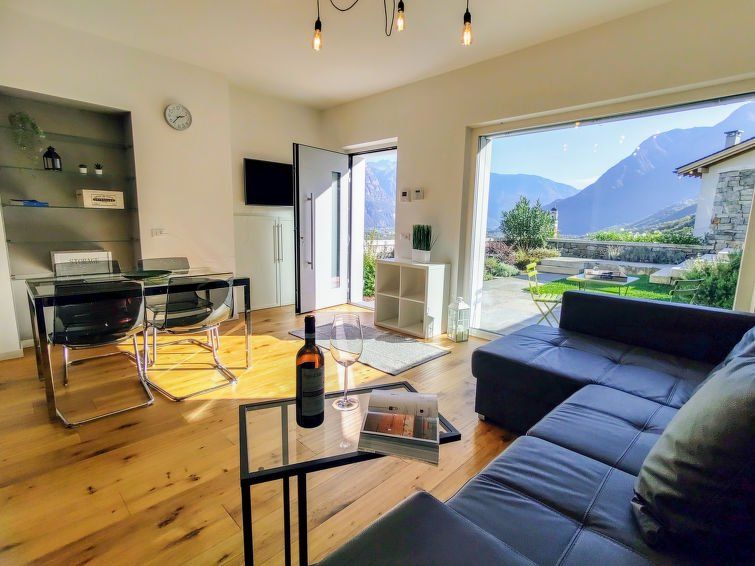 Apartment in a new house, optimal in our opinion for 2 or 3 people, sufficient equipment, tastefully decorated, during our stay (June) very quiet, very comfortable mattresses, plenty of space in the wardrobes Terrace with a mini garden very well-kept, beautiful views of the mountains. Garage on the property. Nice and helpful owner