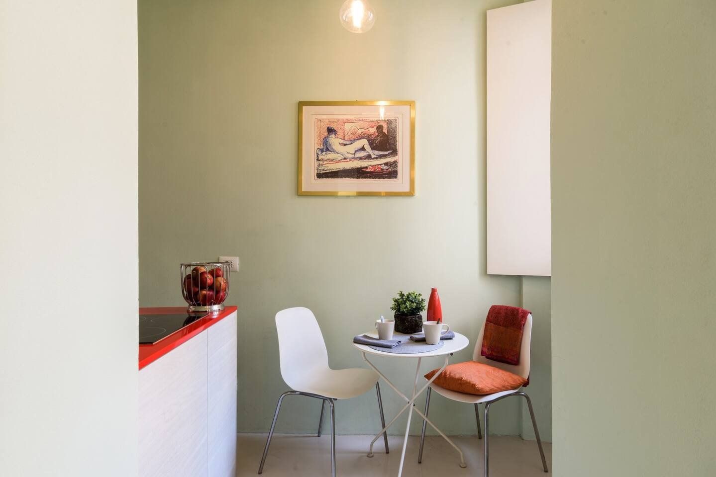 When it comes to dressing like an Italian, there’s only one thing to remember: don’t hold back. The same rule applies when it comes to interior design, as demonstrated by this striking home in the heart of Como. The colours here are sure to brighten your days – mustard chairs with pink cushions, cherry red detailing in both the kitchen and the bathroom, and mint green walls. But it’s not just the palette that adds personality. We loved the use of artwork, mid-century modern furnishings and the industrial-inspired lightbulbs and plaster-effect ceilings. The best bit? You’re a mere five-minute walk from the beautiful shores of Lake Como. Spend balmy afternoons strolling along the water’s edge, stopping now and again for an espresso or a spritz in the bars and cafes along the way. Visit the striking Cathedral of Santa Maria Assunta, a minute’s walk from your doorstep, and the Museo Didattico della Seta to trace the history of Como's silk industry.