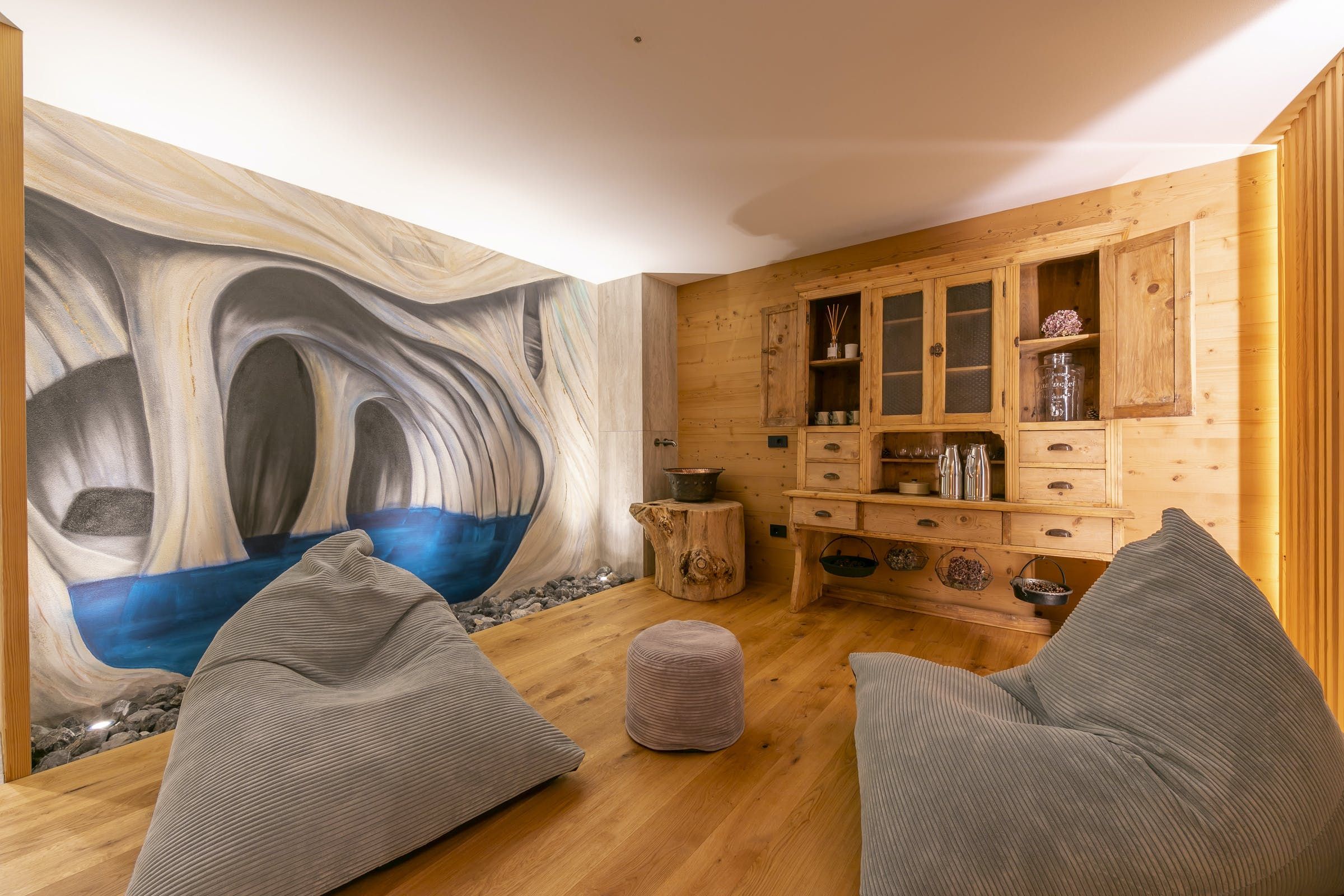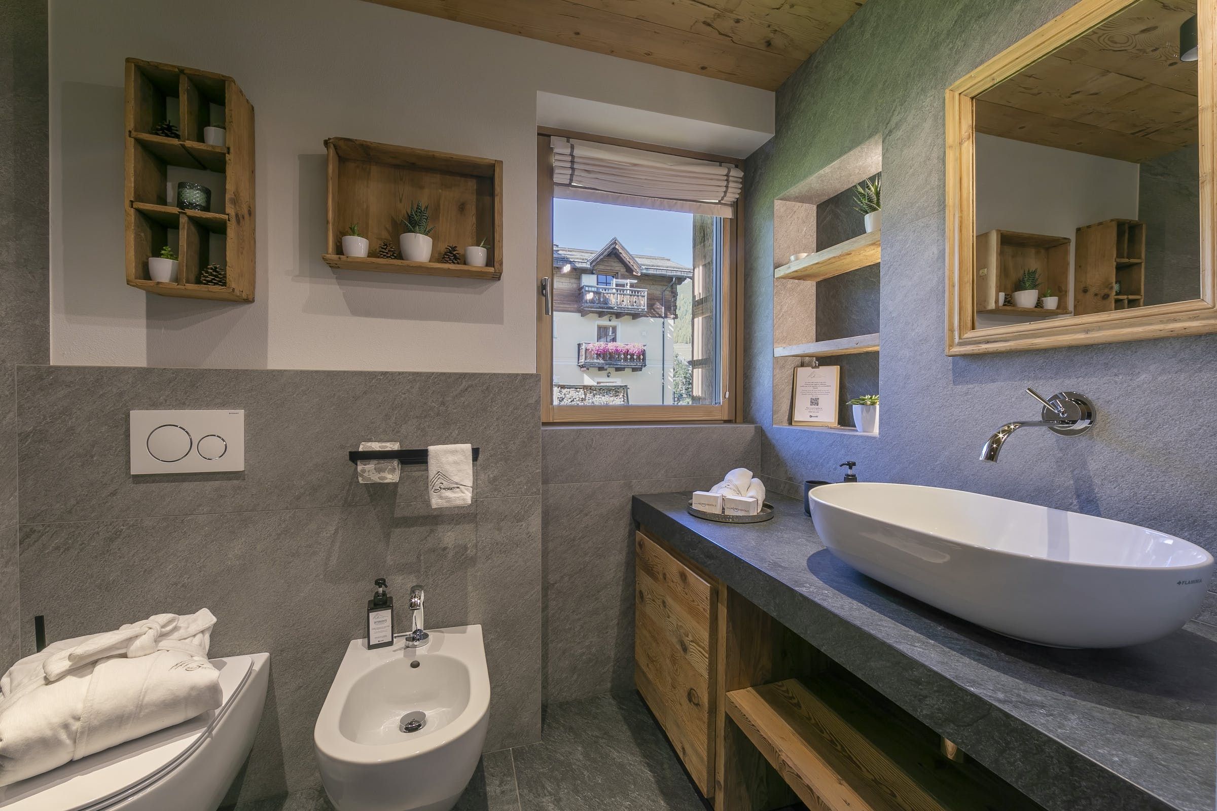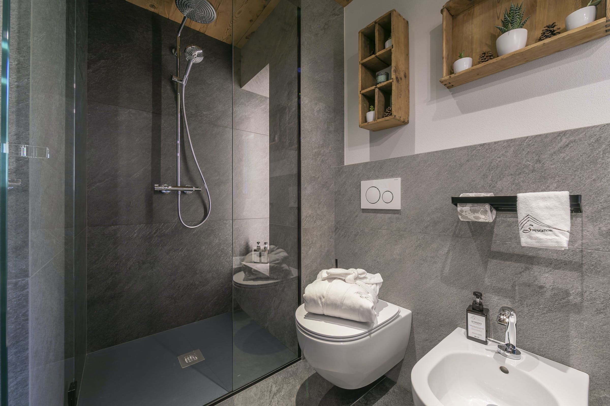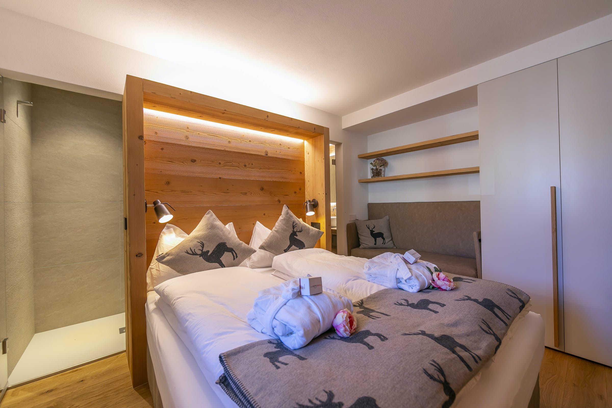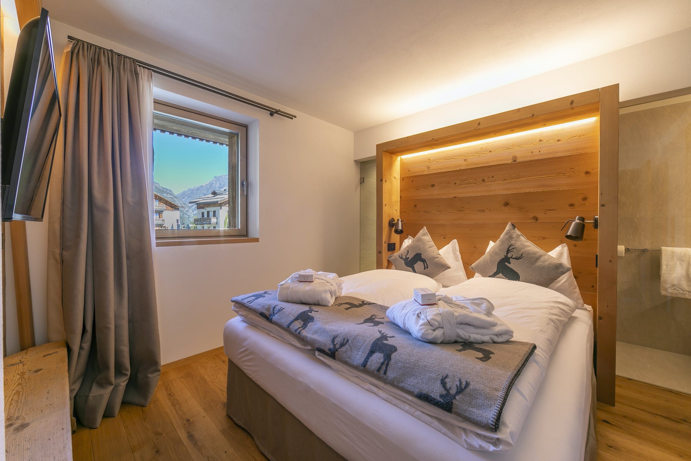 This home offers a cosy, yet classy vibe for you to stay in while enjoying the balcony with views for days over the mountainous greenery, or even snowy mountains, ready for gliding down on your set of skis during the winter. Sit on the bay window cushions with your morning bowl of delight and watch the world go by at a much slower pace than the city hustle and bustle. We love how this home emphasises wood throughout for a true lodge feel, but with a modern twist.