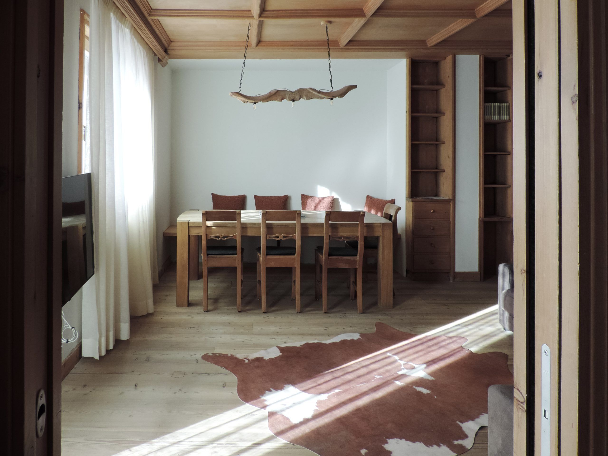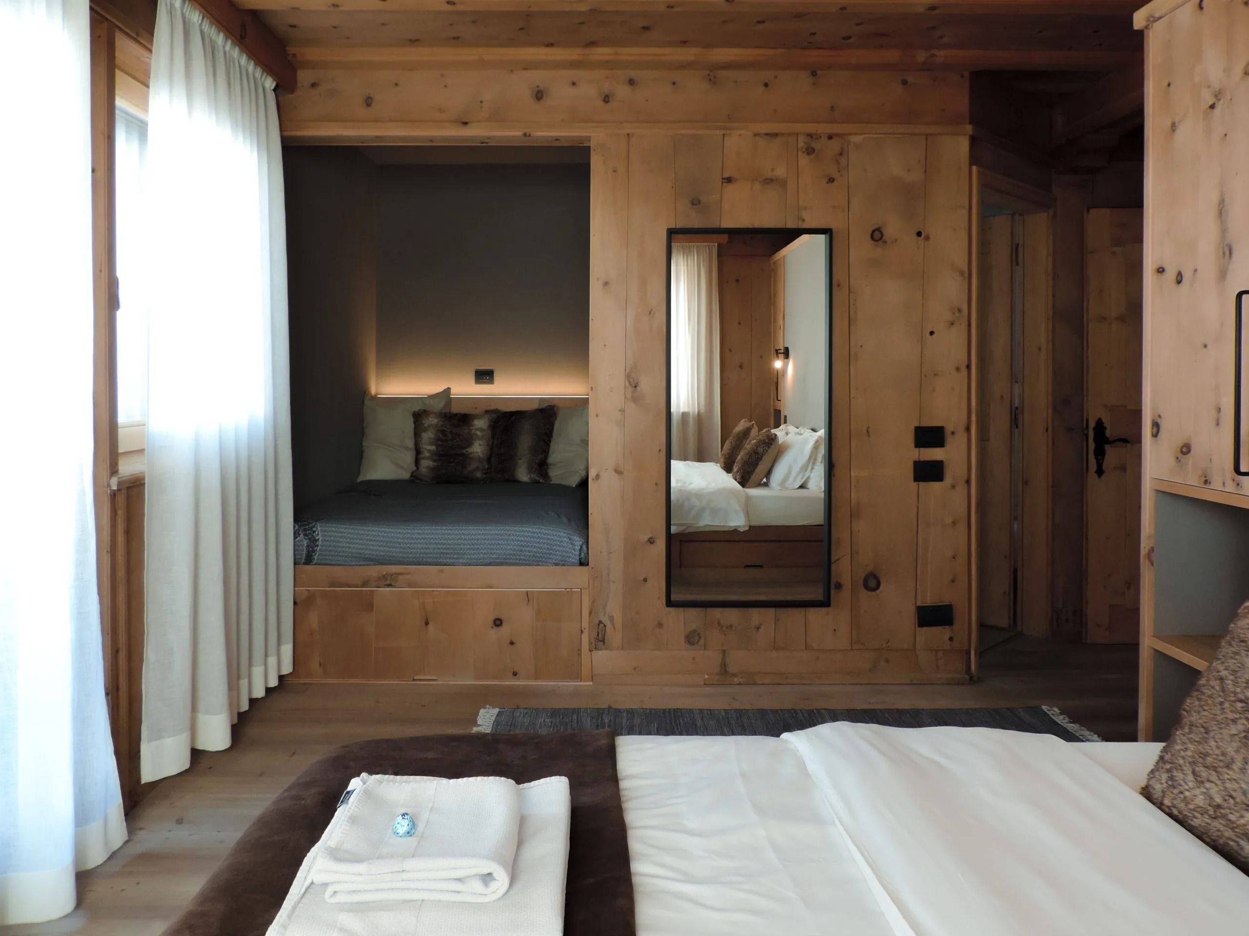 Set within a historic, family-owned chalet in the Alpine town of Livigno, this apartment puts you just steps from the slopes. Inside, the interiors are simple yet cosy, with wood-panelled walls and ceilings, plenty of windows and two balconies overlooking the mountains – ideal for morning coffee or an evening drink. In winter, you can clip into your skis and glide straight down to the gondola, with handy ski storage waiting for you when you return. Come summer, there are hiking trails through forested valleys, mountain-biking routes and lakeside walks to explore while the charming town centre is just a four-minute stroll away.