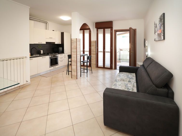 "Cà Silvio", 2-room apartment 55 m2, on the upper ground floor. Renovated in 2025, practical and cosy furnishings: living/dining room with 1 double sofabed and TV. Exit to the patio. 1 double bedroom. Exit to the garden. Kitchenette (4 hot plates, oven, dishwasher, kettle, microwave, electric coffee machine).