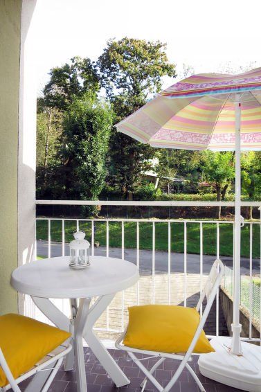 1-room apartment 18 m2 on 1st floor, east facing position. Practical and rustic furnishings: living/sleeping room with 1 double sofabed, dining table and satellite TV. Exit to the balcony. Open kitchen (2 hot plates, toaster, microwave, electric coffee machine). Bath/bidet/WC. No heating option.