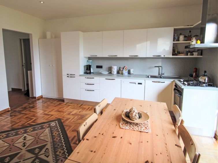 Very spacious and beautiful apartment on the top floor with every comfort. However, the stairs can be difficult with children, for the elderly, and for people with limited mobility. The car is only allowed in front of the door to unload / load luggage. Access road very narrow with a tight turn. Parking outside the fence with always enough space. Furthermore, very quiet location, only the train you hear pretty well day and night. Facilities within walking distance as well as the (pebble) beach.