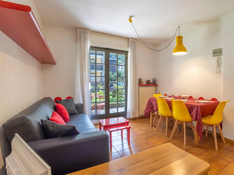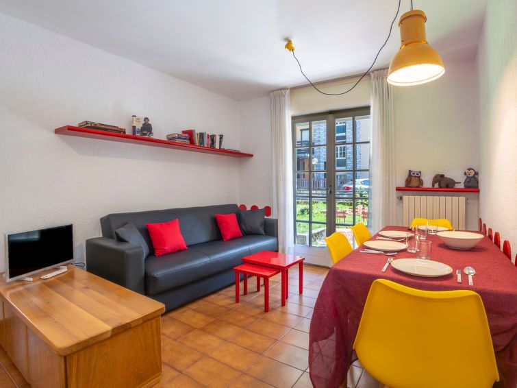 2-room apartment 35 m2, on the ground floor, east facing position. Practical and comfortable furnishings: living/dining room with 1 sofabed, dining table and TV. Exit to the garden. 1 double bedroom. Kitchenette (2 gas rings, toaster, kettle, microwave). Bath/bidet/WC. Heating. Garden 70 m2, lawn.