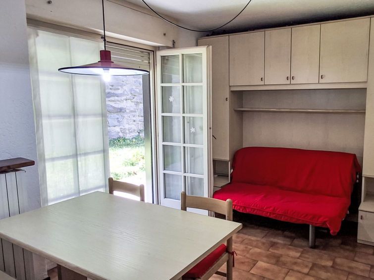 1-room studio 28 m2, on the ground floor, west facing position. Simple and practical furnishings: living/dining room with 1 double sofabed, dining table and TV. Exit to the garden. Small kitchenette (oven, 4 induction hot plates, toaster, kettle, electric coffee machine, Capsules for coffee machine (Nespresso) free).