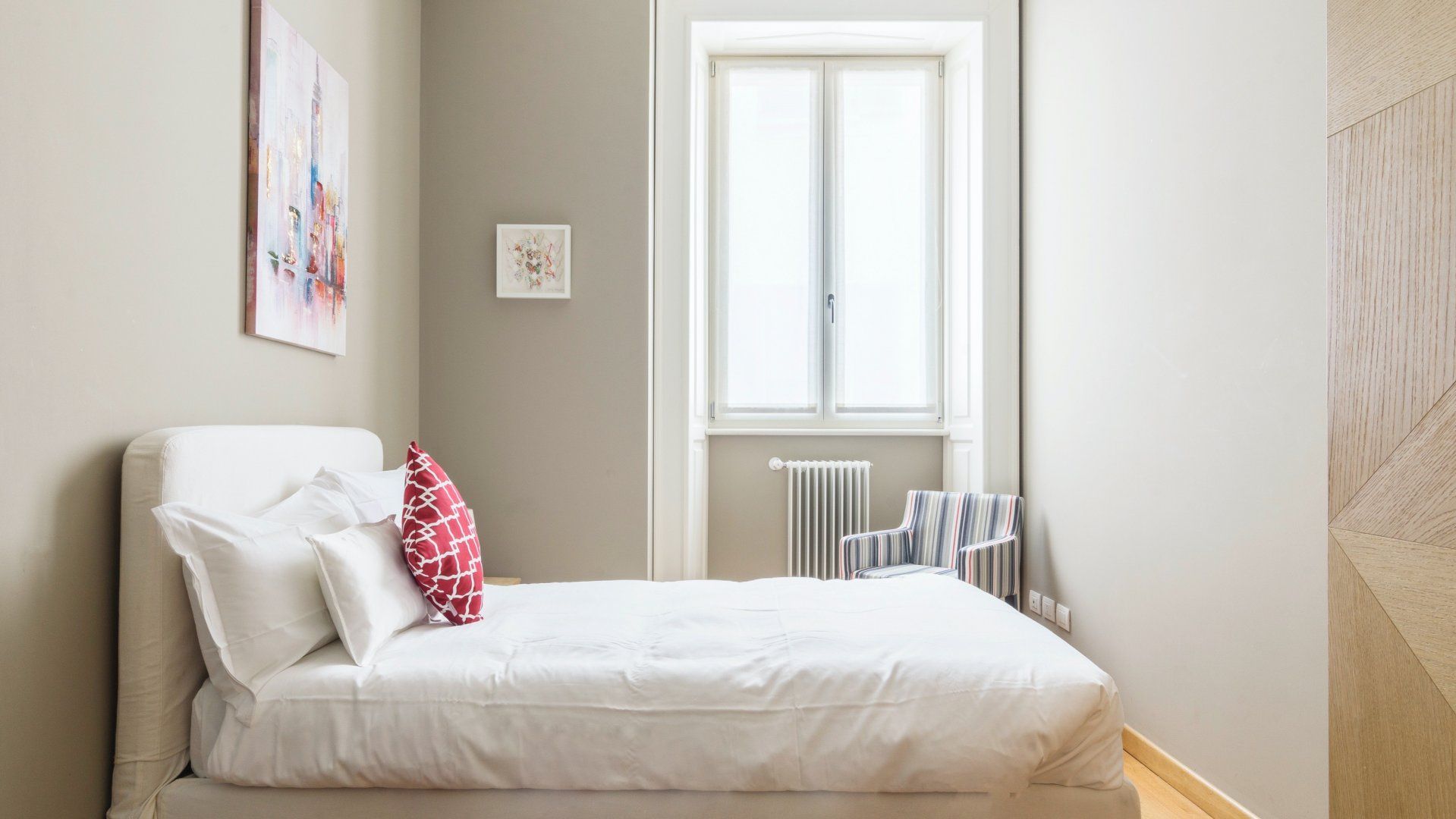 Alpinism is in a beautiful palazzo, right by the imposing Sforzesco castle. Its character largely comes from its solidity – there’s an attention to detail that ensures a certain level of comfort, and while you wouldn’t describe the interiors as particularly bold, they’re soothing and pleasant. The choice of such a small bed in the second bedroom is slightly strange – an extra twenty centimetres feels like an obvious decision – but luckily, both beds are very comfortable.