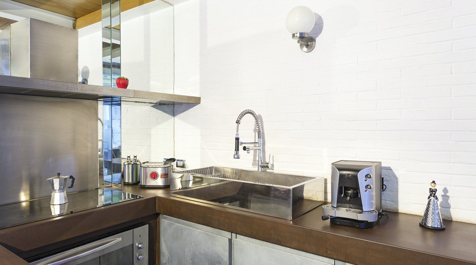 This impressive three-level, loft-style home is in the up-and-coming area of Isola. With its glass floors and indoor swimming pool, it's fair to say the design has something of the James Bond about it and it's clearly aimed at fun-loving groups of friends who like a touch of glamour. Here you'll find striking architecture, contemporary furnishings, plenty of space, and plenty of style. The living room opens out to a courtyard and there's a huge comfy sofa to share, while the designer kitchen and dining table are perfect for cosy meals at home. But the stand-out feature in this room is the glass ceiling above your head. With its steel beams on display, the ceiling looks up into one of the bedrooms (but not the bathroom – that would be weird). Down some steps, you'll find the home's secret weapon – a big TV room with a stainless steel bar, a pool with Jacuzzi, and a master bedroom that's en-suite just happens to feature a steam room. Upstairs it's the amazing glass floor that steals the show. The landing has a large lounge area with bright yellow sofas and a whole sliding wall so you can open one of the bedrooms right up to it. If you're here to explore Milan, this home is just a four-minute walk away from the subway so it's all easy to access, and there are heaps of great places to eat and drink in the neighbourhood.