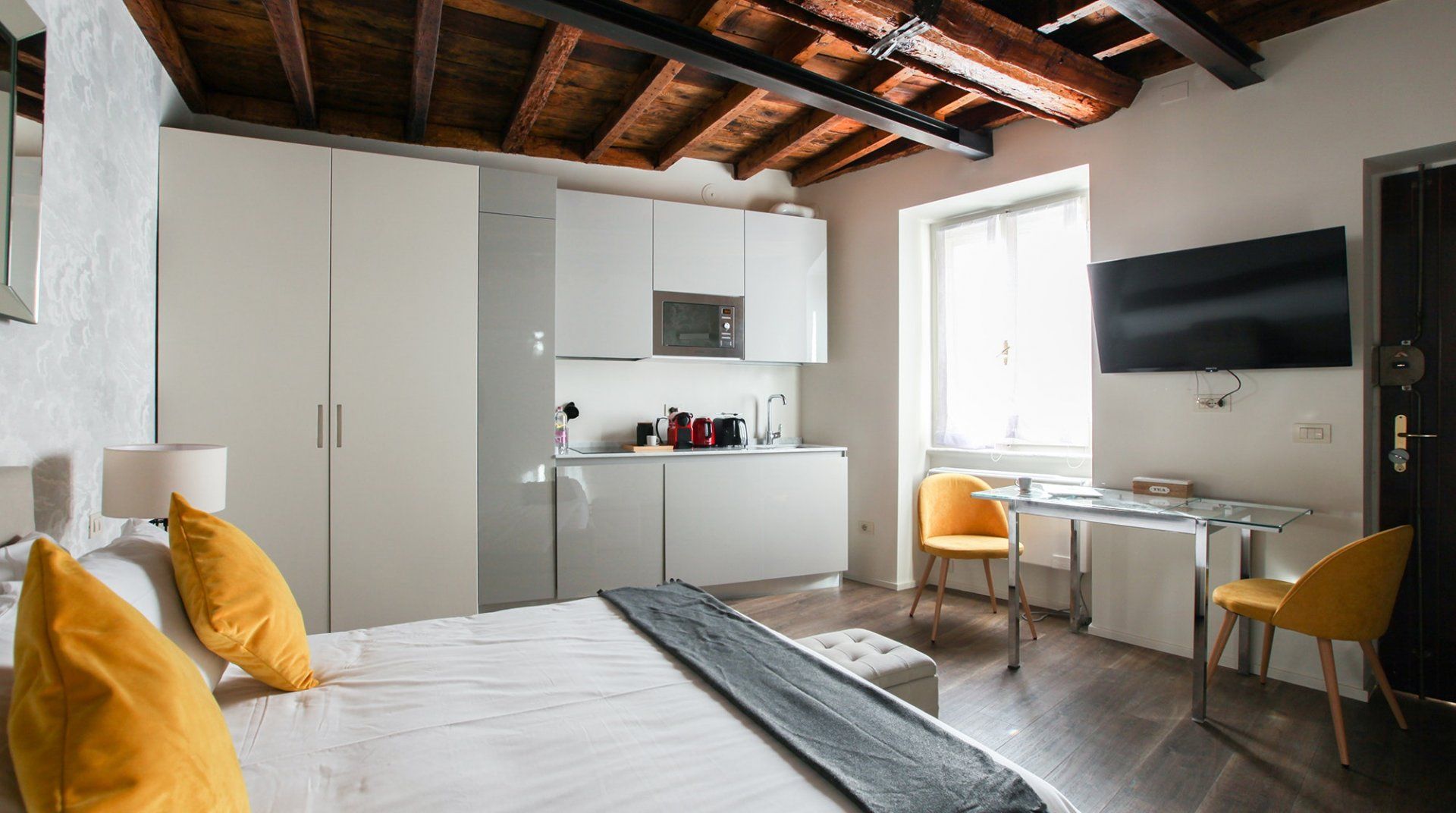 This studio boutique studio apartment may be small, but its central location makes it the perfect home for couples and individuals looking for the independence of an apartment. While the original wooden ceilings and comfortable furniture make it a charming space to relax after a busy day.