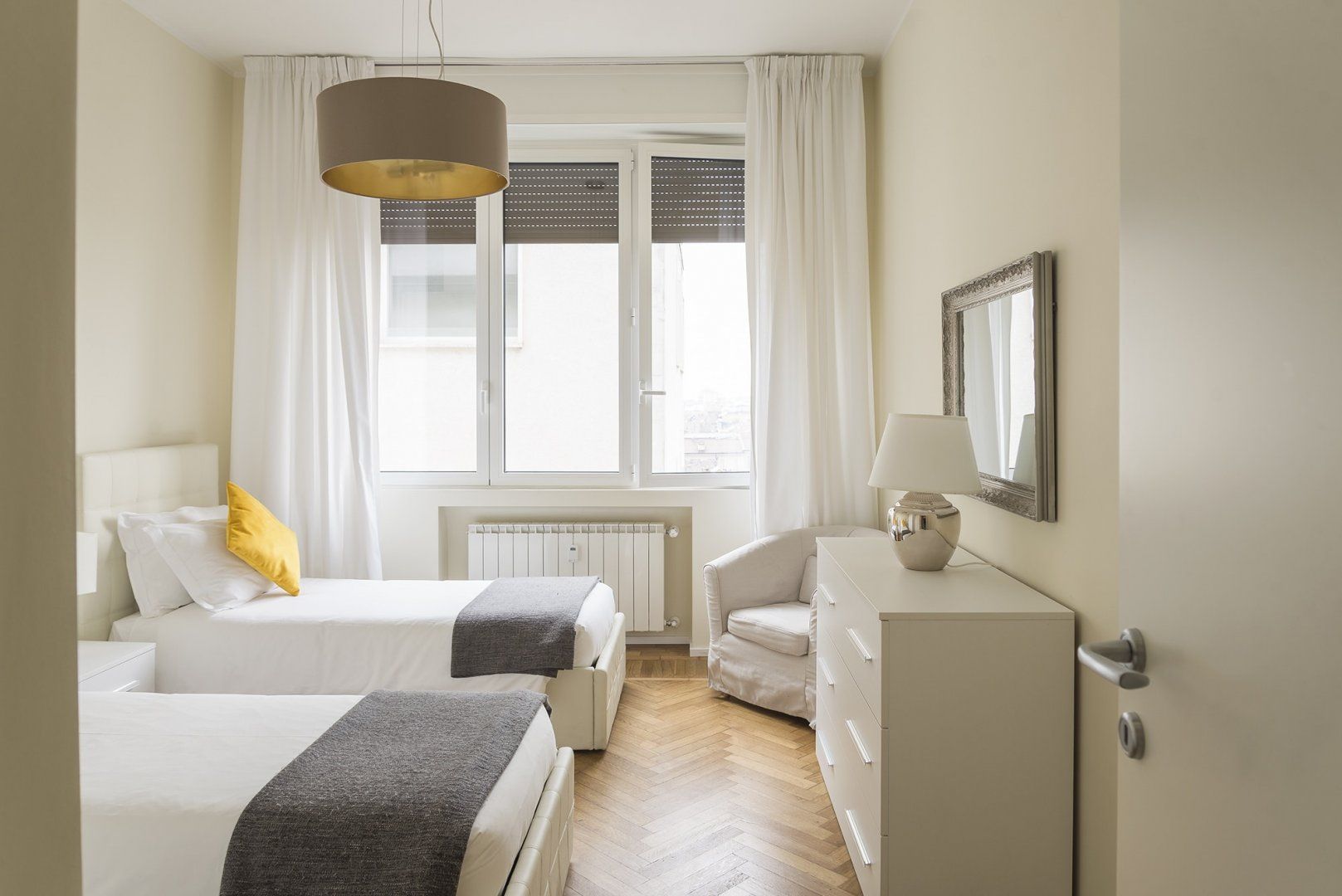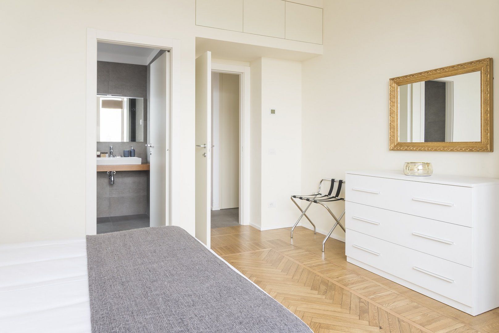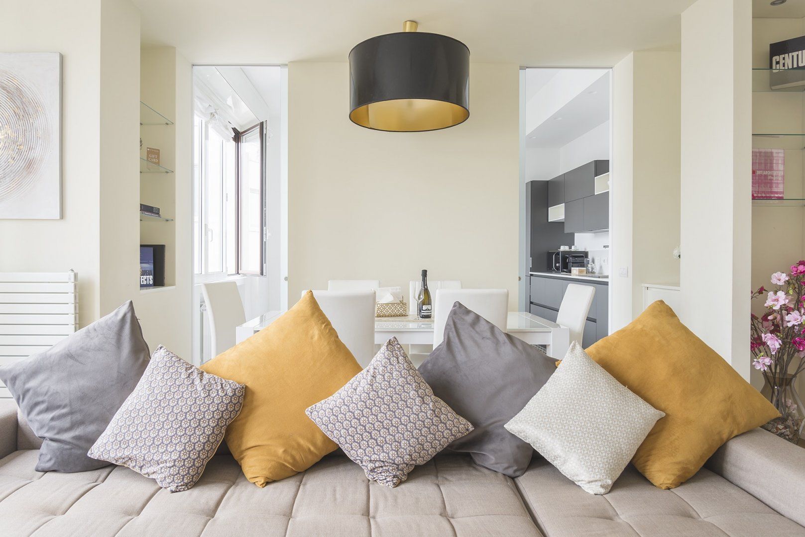 Not only is this sleek, modern apartment merely one minute on foot from the Piazza del Duomo, but its seventh-floor position commands some mighty views. The large windows give way to views of the cathedral, as well as the modernist masterpiece, La Torre Velasca - and the rest of Milano's magnificent skyline to boot. It’s a vista best seen with the Juliet balcony doors wide open (glass of something chilled optional), as dusk begins to settle over the city. Elsewhere in this bright and airy home, quality and Milanese style permeate the interiors, from the designer Zanotta sofa to the high-tech kitchen that’s been positioned just so to take in those views of the bustling Cinque Vie district below. And when its charming, narrow streets finally call, you’ll find some of the city’s best boutiques, antique shops, and galleries just moments away, and historic sights less than a ten-minute stroll away. Now, how’s that for a location?