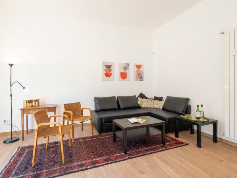 3-room apartment 101 m2 on 3rd floor. Spacious and bright, fully renovated in 2025, modern and stylish furnishings: large living/dining room with 1 sofabed, dining table, TV, radio, CD-player and hi-fi system. Exit to the balcony. 1 room with 1 bed, 1 pull-out bed and separate WC.
