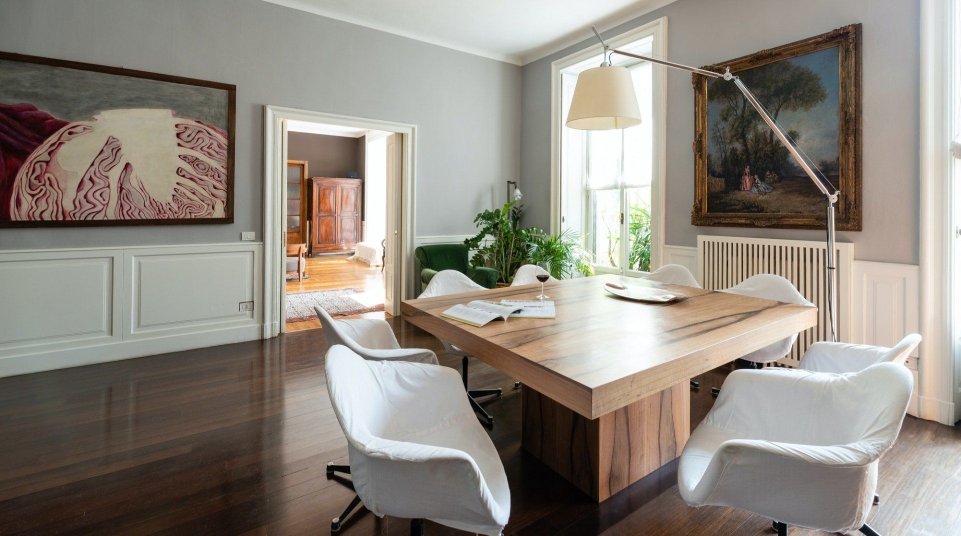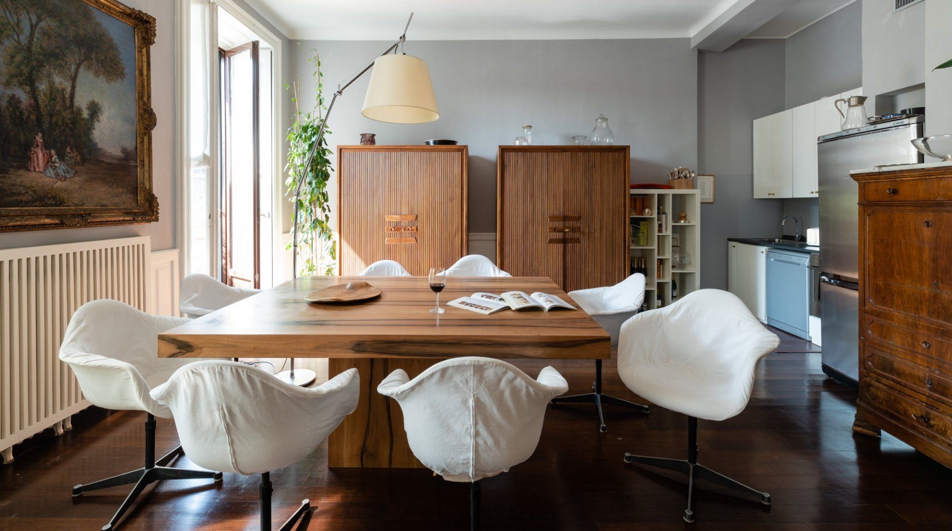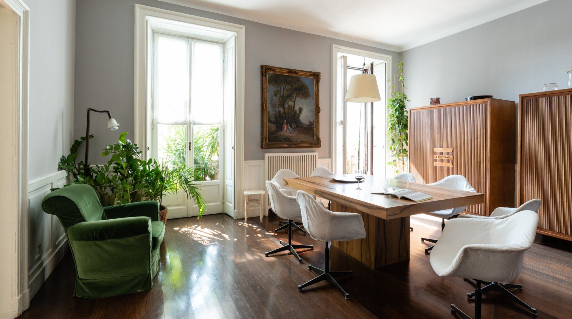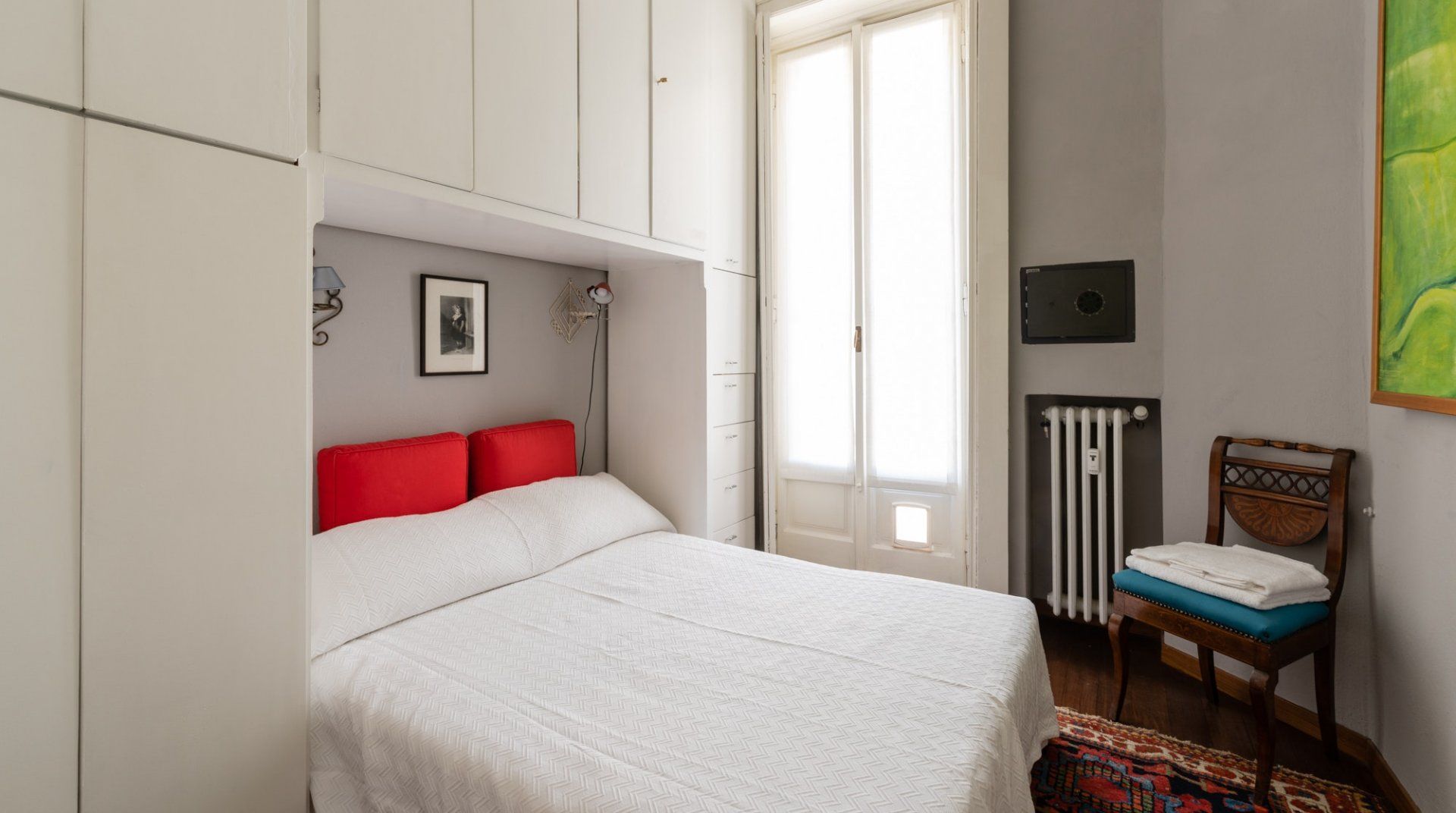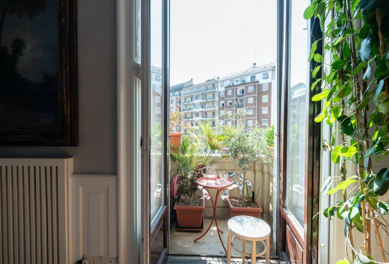 A spacious and stylish apartment filled with natural light and bags of character, this home is located in an imposing traditional Milanese building right by the city's central train station. It makes a great first impression, with gleaming floors, stained glass windows and a characterful wooden elevator preparing you for what's the come. The cultured owners of this exquisite and soulful home are artsy types, as the original paintings sprinkled throughout the stunning communal areas – created by the host's artist father – or the built-in bookcases will attest. Given its location, transport connections are expectedly excellent, though you're not right in the centre if that's what you're specifically after. Instead, hop on the Metro to reach the heart of the city in under fifteen minutes. Alternatively, embark on a leisurely stroll to the likes of the Duomo di Milano in around forty minutes. Closer by, the likes of Via Tadino and Via San Gregorio – both around a ten-minute walk – have plenty of options when it comes to drinking and dining.