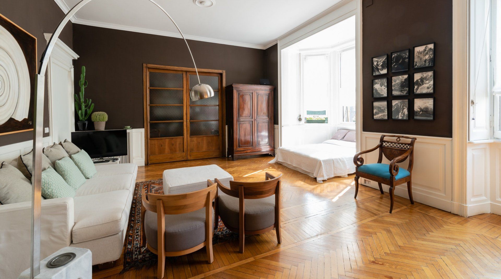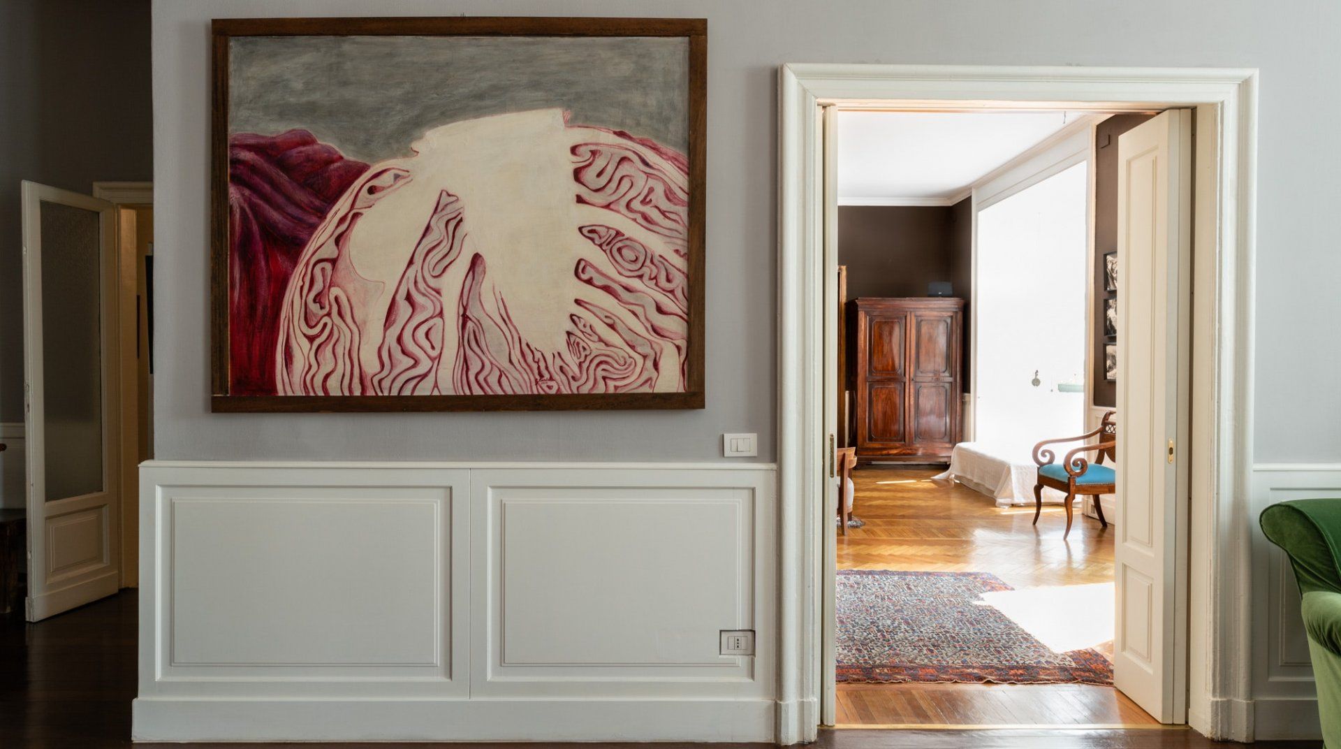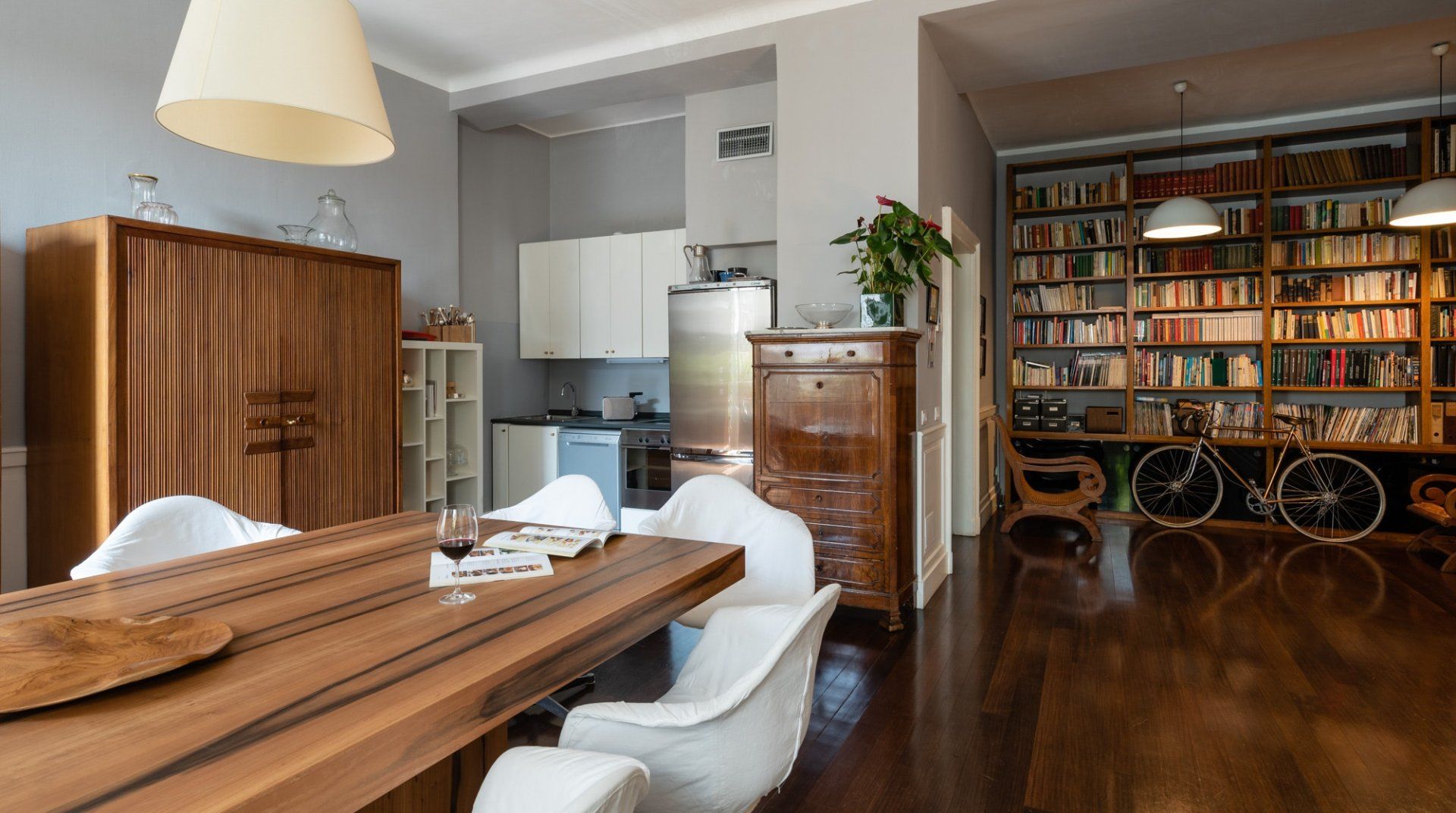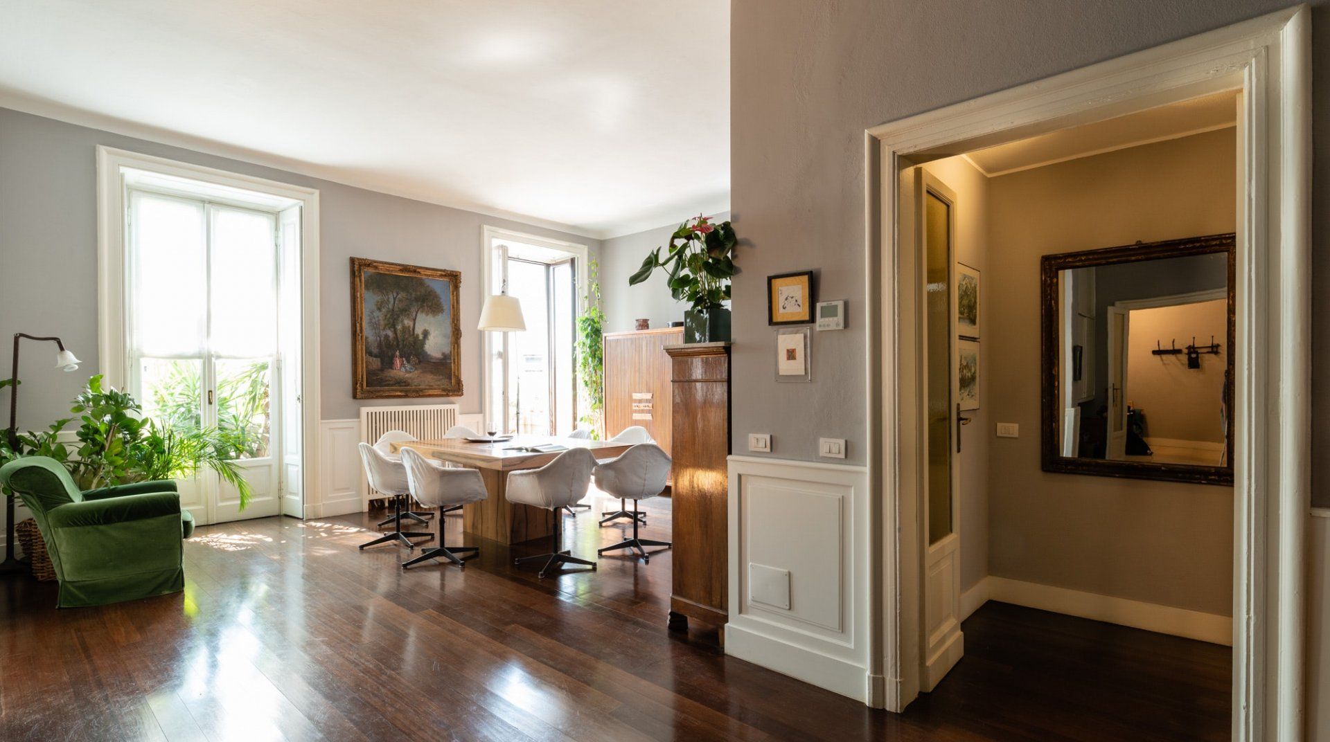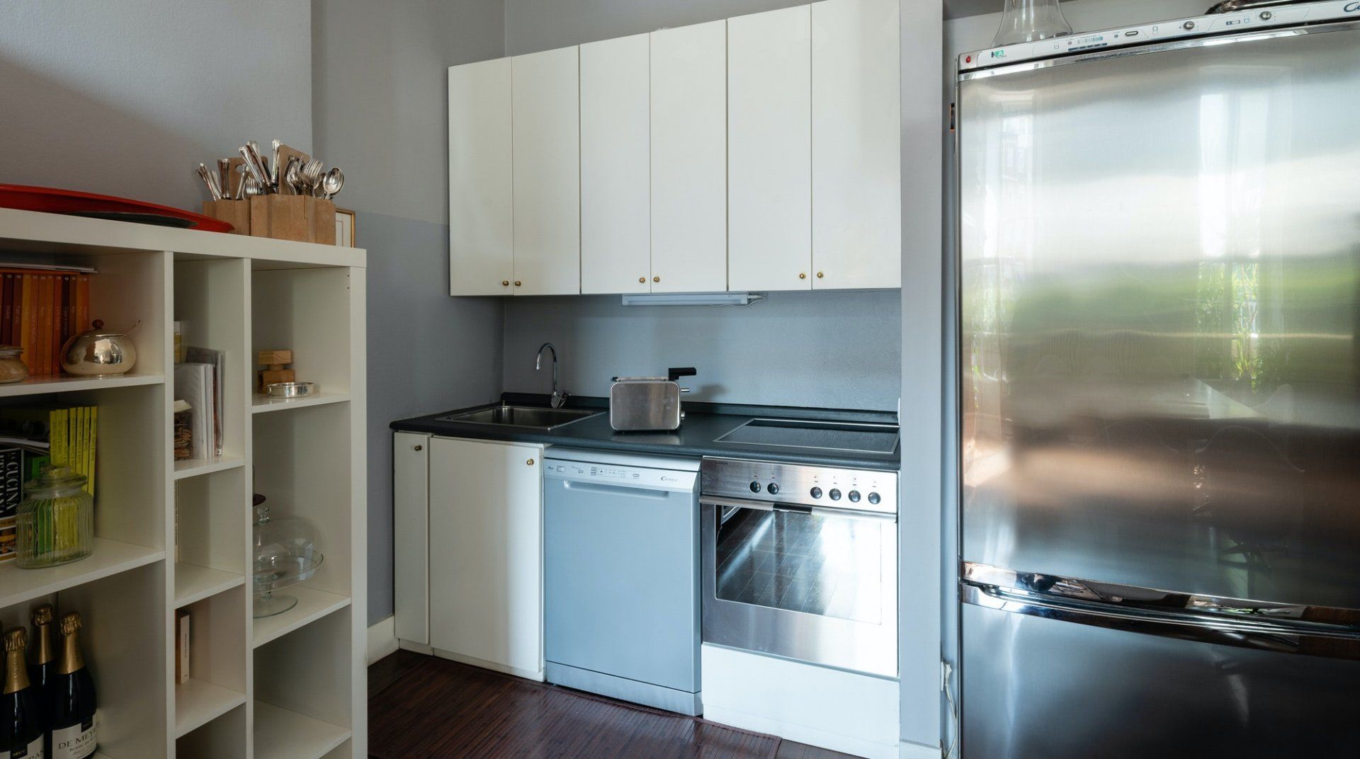 A spacious and stylish apartment filled with natural light and bags of character, this home is located in an imposing traditional Milanese building right by the city's central train station. It makes a great first impression, with gleaming floors, stained glass windows and a characterful wooden elevator preparing you for what's the come. The cultured owners of this exquisite and soulful home are artsy types, as the original paintings sprinkled throughout the stunning communal areas – created by the host's artist father – or the built-in bookcases will attest. Given its location, transport connections are expectedly excellent, though you're not right in the centre if that's what you're specifically after. Instead, hop on the Metro to reach the heart of the city in under fifteen minutes. Alternatively, embark on a leisurely stroll to the likes of the Duomo di Milano in around forty minutes. Closer by, the likes of Via Tadino and Via San Gregorio – both around a ten-minute walk – have plenty of options when it comes to drinking and dining.