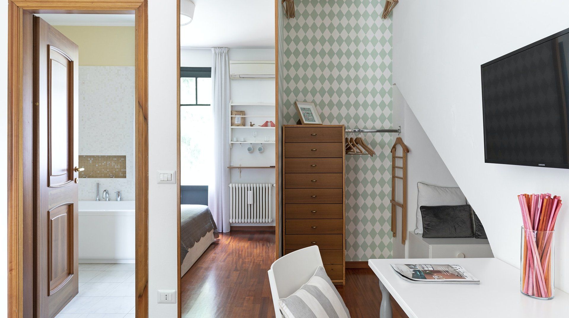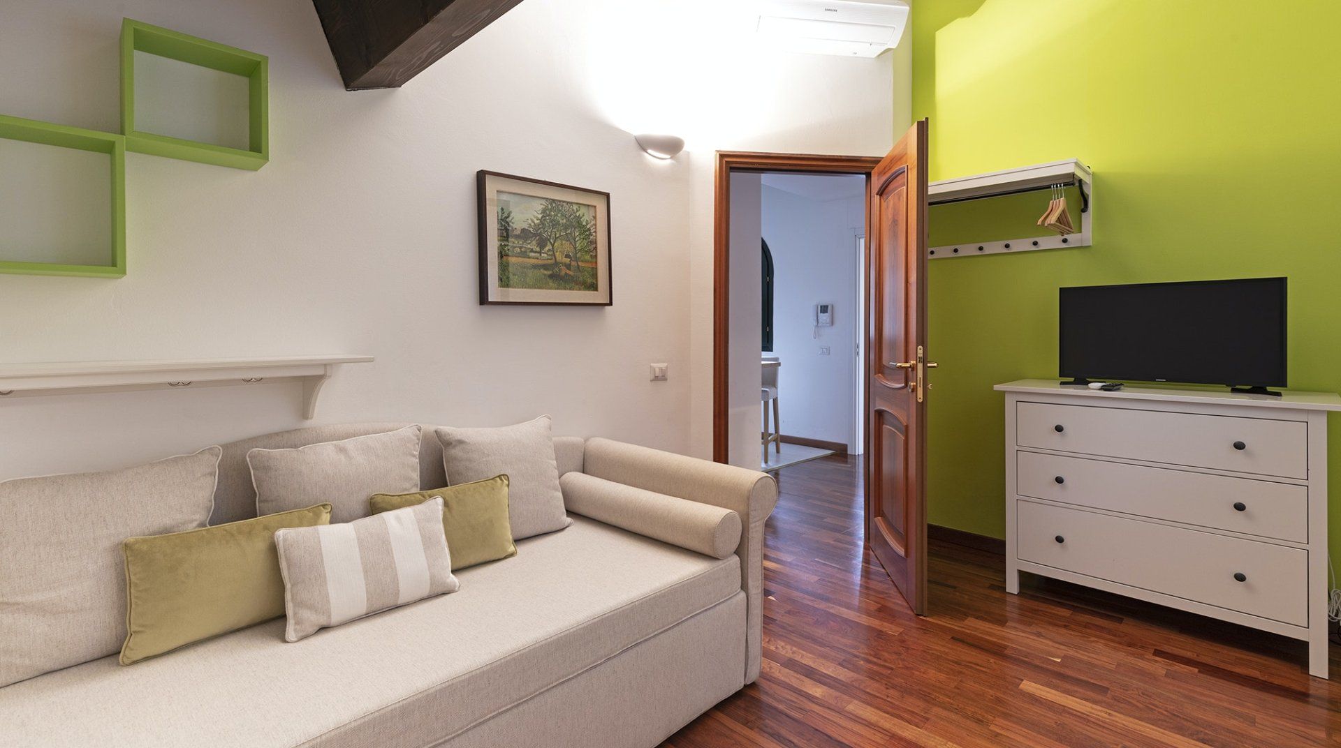 This home is enormous. It’s easily the largest home in our Milan collection – it can house a staggering eighteen people if you make full use of the various beds and sofa beds set across the five separate suites. Set over three floors in a Liberty-style villa, each of the suites comes with a certain degree of autonomy (kitchenettes, en-suite bathrooms and the like). It’s not in the city's medieval centre, but there’s no way you'd find this much space if you were much more central. The Tre Torri neighbourhood is relatively residential, but you couldn't be more conveniently positioned to access the city centre – Buonarroti station (on Metro line 1) is just at the end of the road – a two-minute walk away. From here, you can access the Centro Storico – with all its piazzas, palaces, monasteries, basilicas and spectacular cathedral – in a little over ten minutes. This is also where you'll find Milan's fashionable boutiques – it's not known as Italy's style capital for nothing.