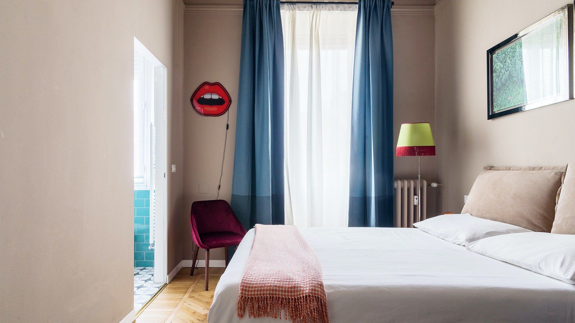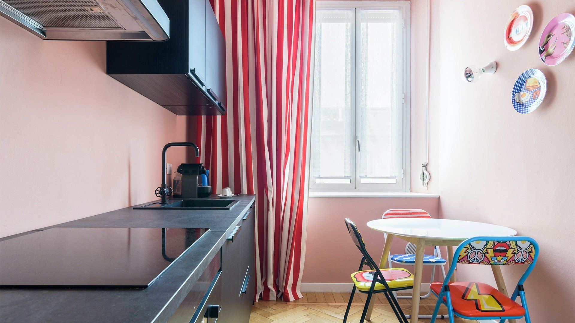 Halfway between Porta Venezia and the Stazione Centrale is Tropicalia. It’s a great little flat, which makes the most of its small footprint with bold, playful design. Colours pop all over the place, and the tall windows ensure that there’s plenty of natural light. The only thing that’s worth flagging at the moment is the number of stairs – Giulio’s trying to get lift access, but at the moment, you’ve got to be ready to handle 130 of them.