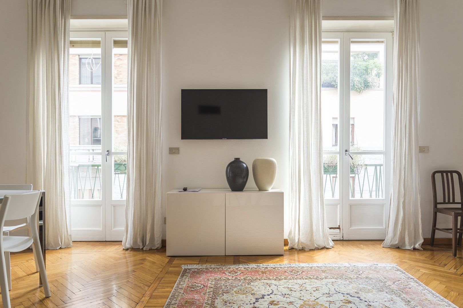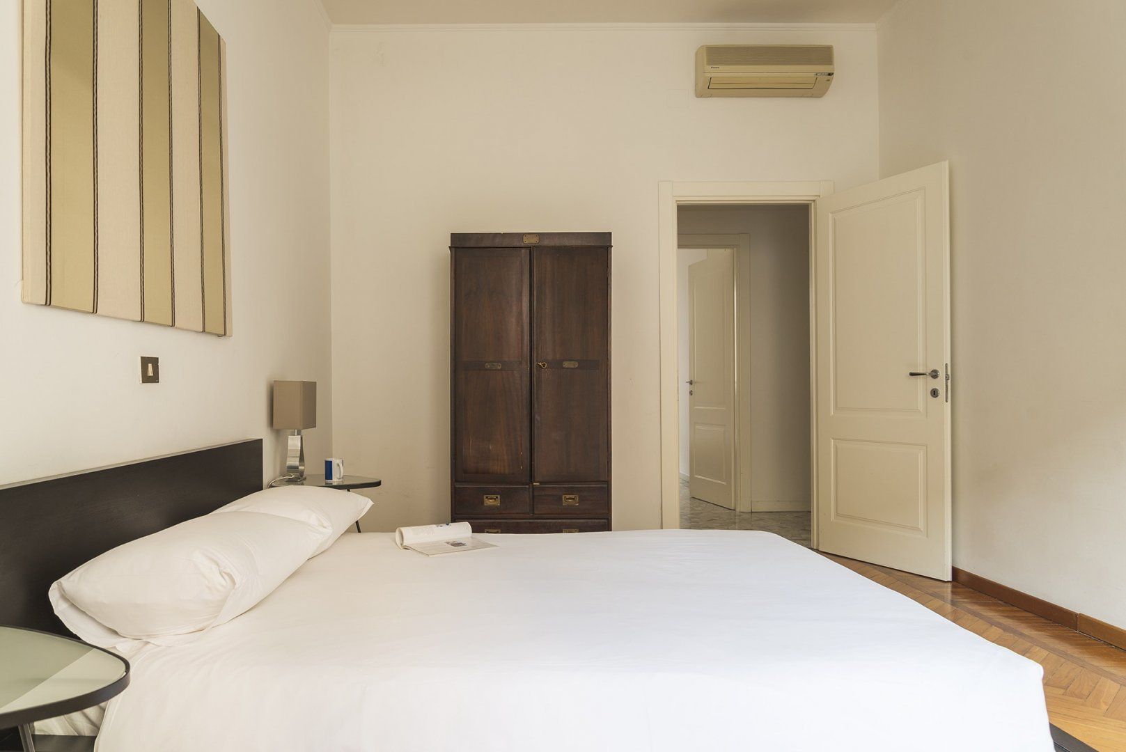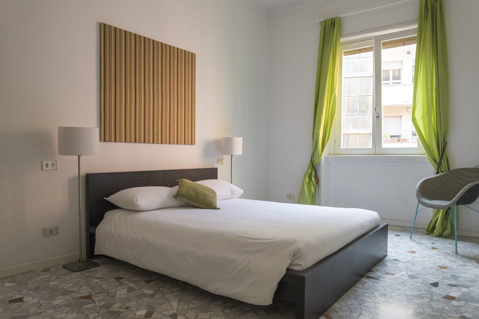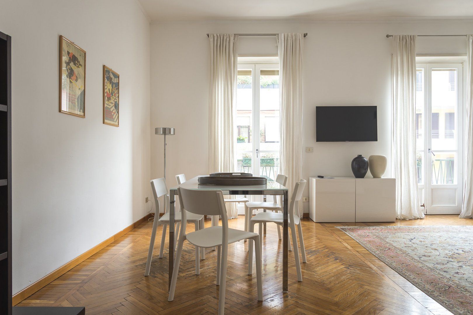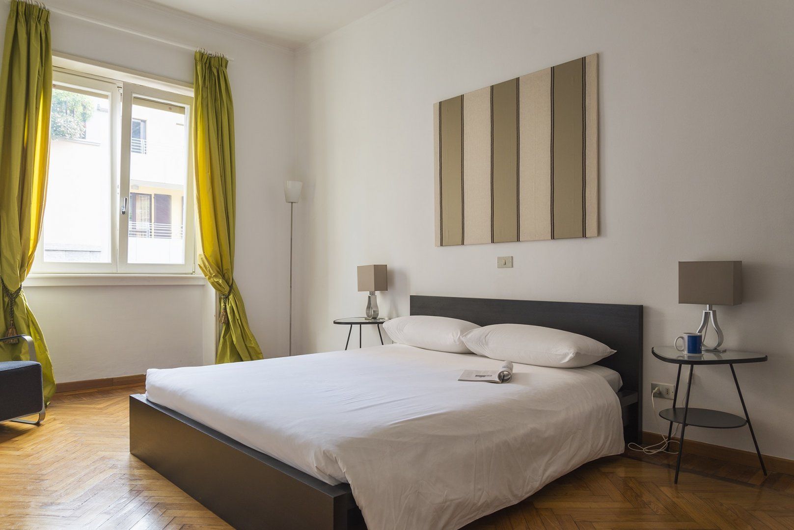 Between the canals of Navigli and Bocconi University, this apartment is in a privileged position. It's pretty spacious, with much of the floors covered in a beautiful herringbone parquet and a couple of nods to Milan's status as a fashion capital in the form of couture-themed artworks on the living room wall. The dining area is especially chic, thanks to the tall windows, and would make the ideal place to serve up a fresh Italian feast. It's wonderfully quiet here, but the sights and sounds of Milan are not far away – a twenty-minute walk will bring you to the famous Duomo and Zona Tortona Design District.