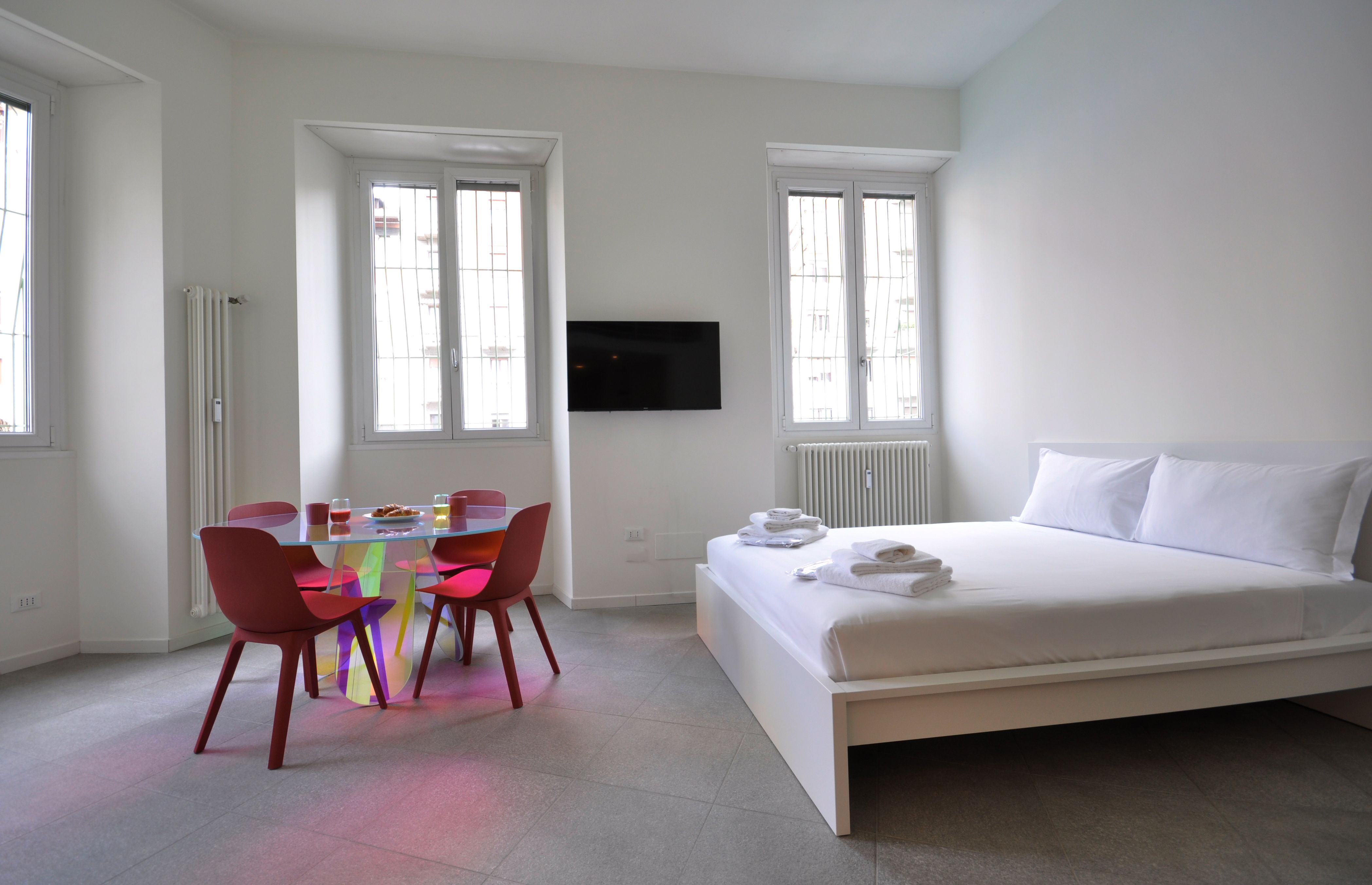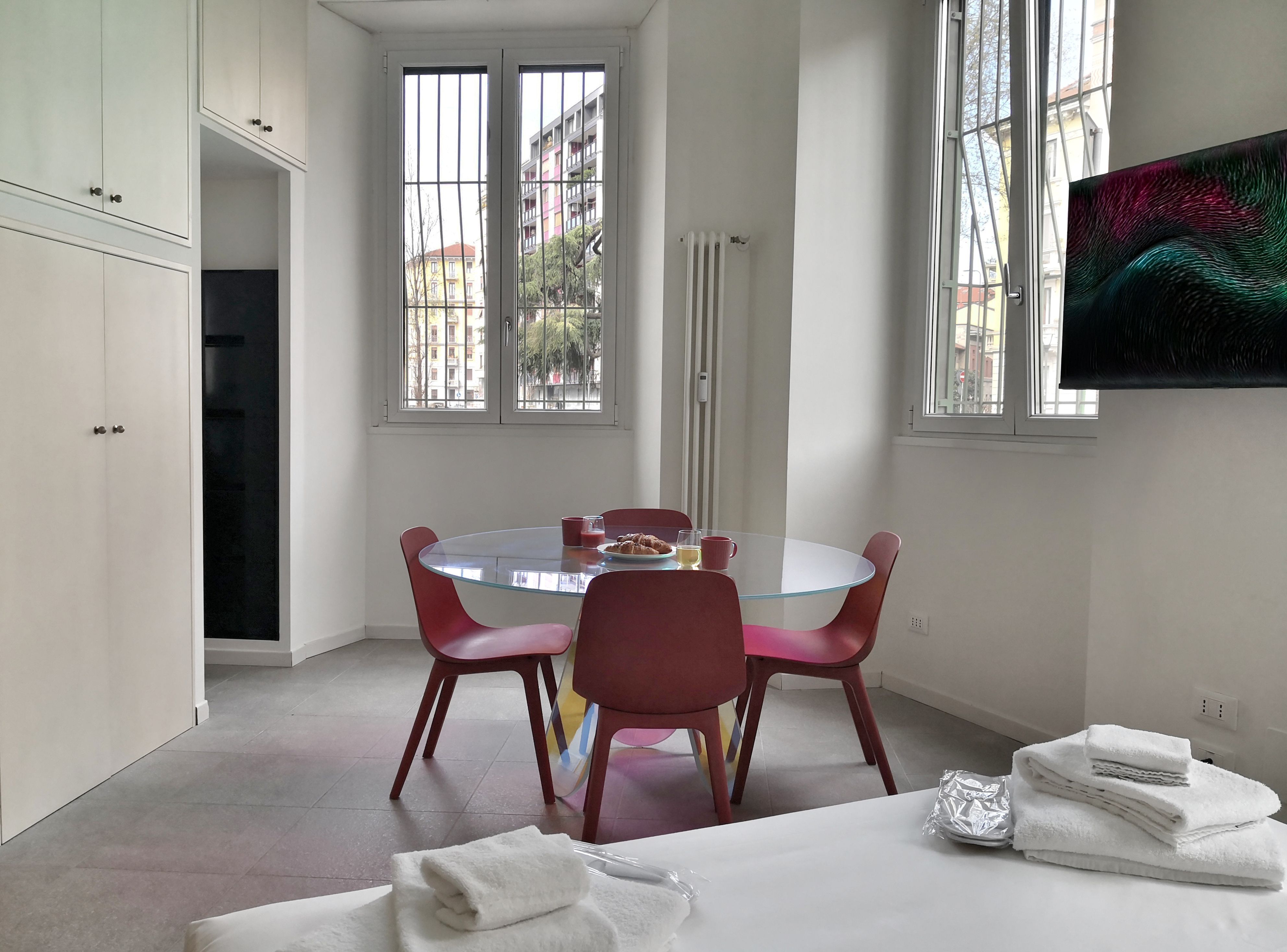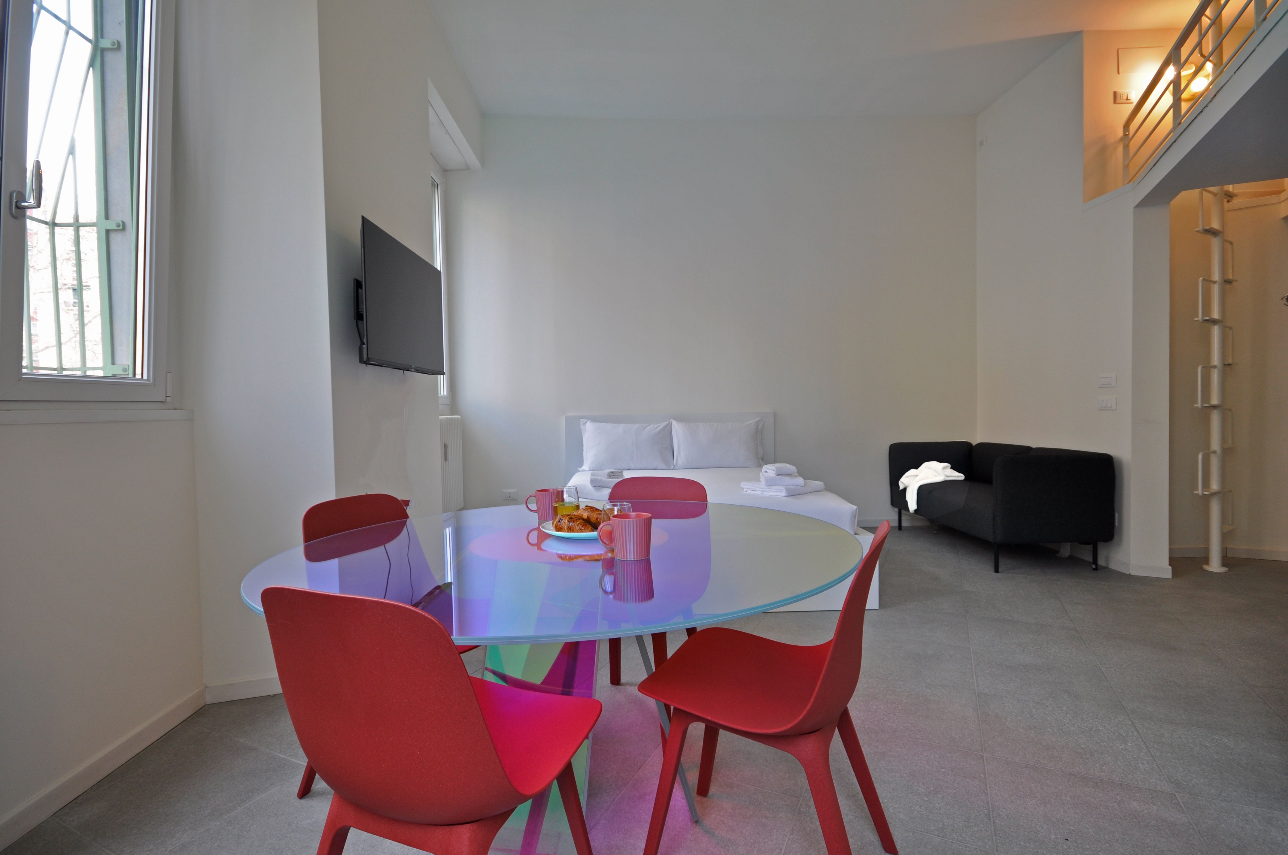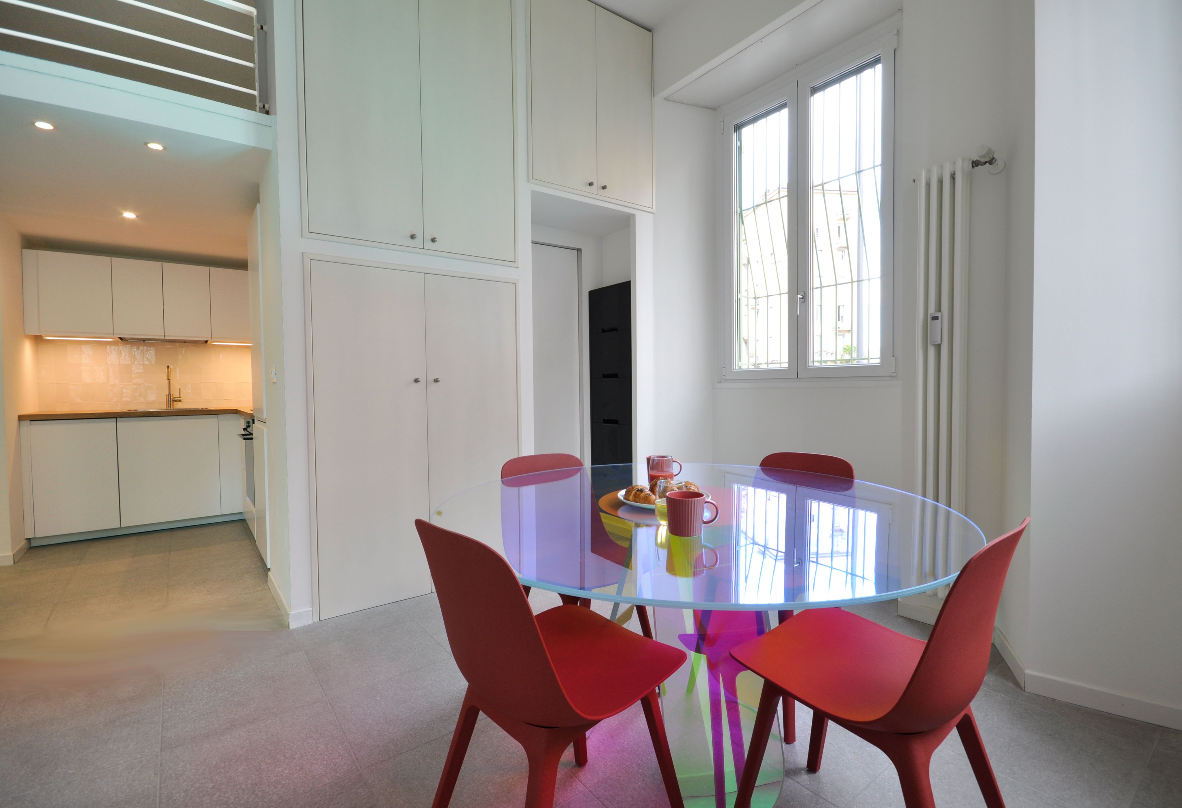 Tucked away in one of Milan's quieter neighbourhoods, this bright apartment is ideal for couples and solo travellers looking to sample a more authentic side of the Italian fashion capital. The home has room for four, but two guests would be sleeping on a floor mattress up on the otherwise sparse mezzanine level, which can only be accessed by a metal ladder. This mezzanine does mean the rest of the space is full of light thanks to the large windows, which brighten up the functional dining area, kitchen, and sleeping area. If you're keen to visit the city centre, major landmarks can be reached in around twenty minutes by metro, departing from the nearby Susa station.