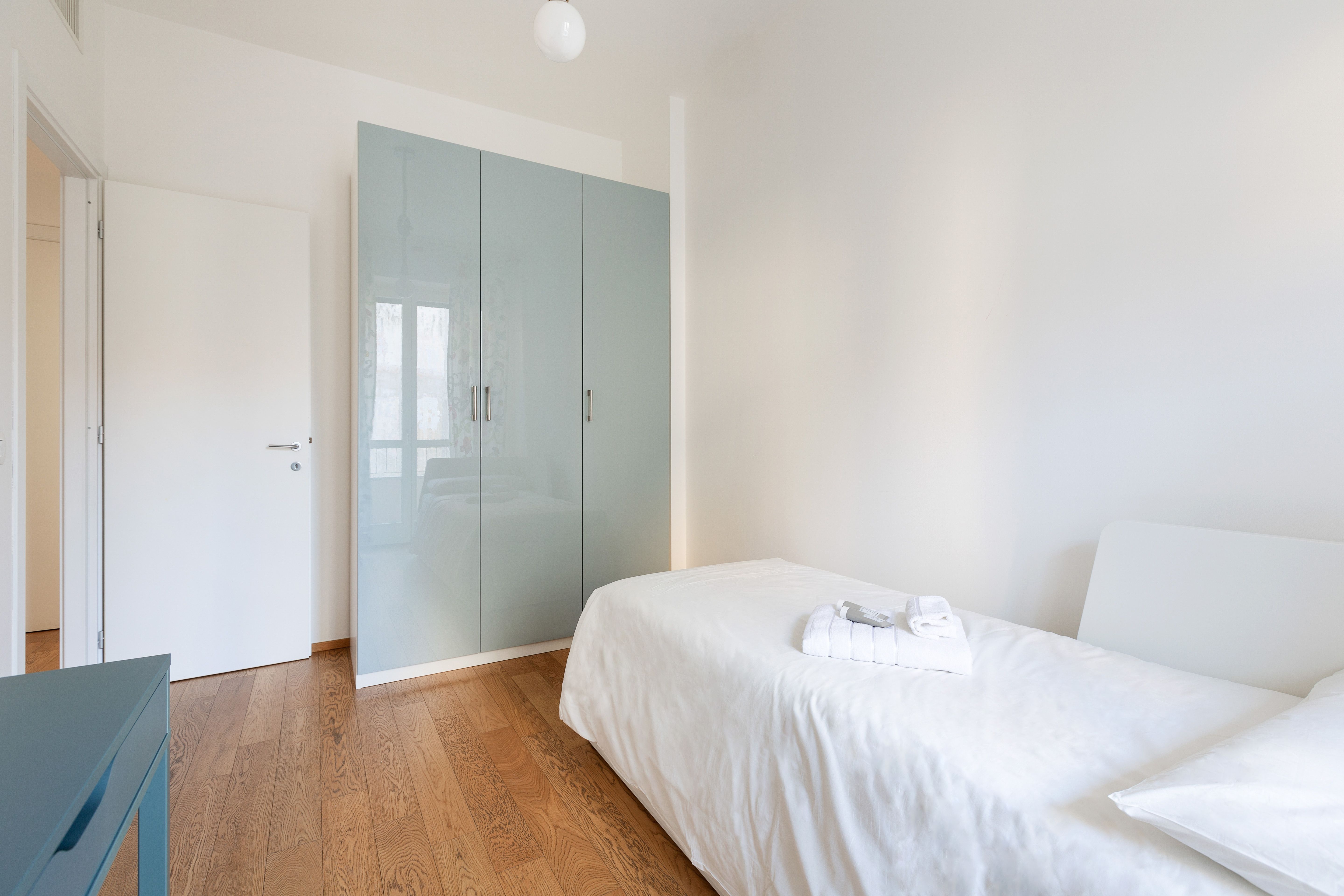 Sample a more authentic side of Milan at this apartment set in Navigli. Loved by locals for its buzzy canal-side bar and restaurant scene, there’s plenty of action close by. And when it’s time to head into the centre, the nearest Metro station is just a ten-minute walk away. Offering heaps of living space and a roomy dining kitchen, this home is a great option for longer stays or working trips. The second bedroom with a desk space doubles up great as a study. Although, do note it also features a pull-out double bed – a cosy setup if two are sharing. A small balcony for morning coffee or evening aperitivos is the cherry on top.