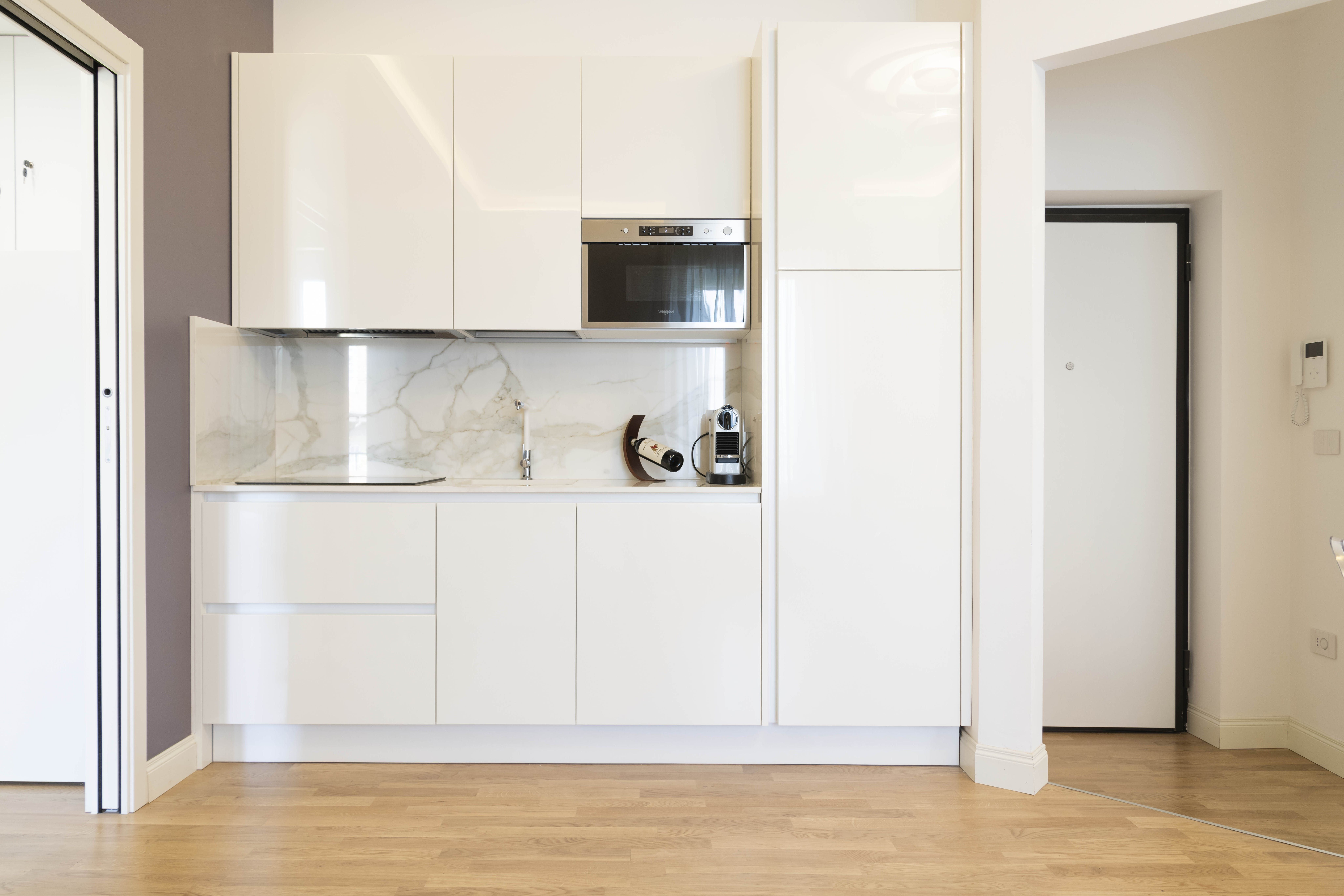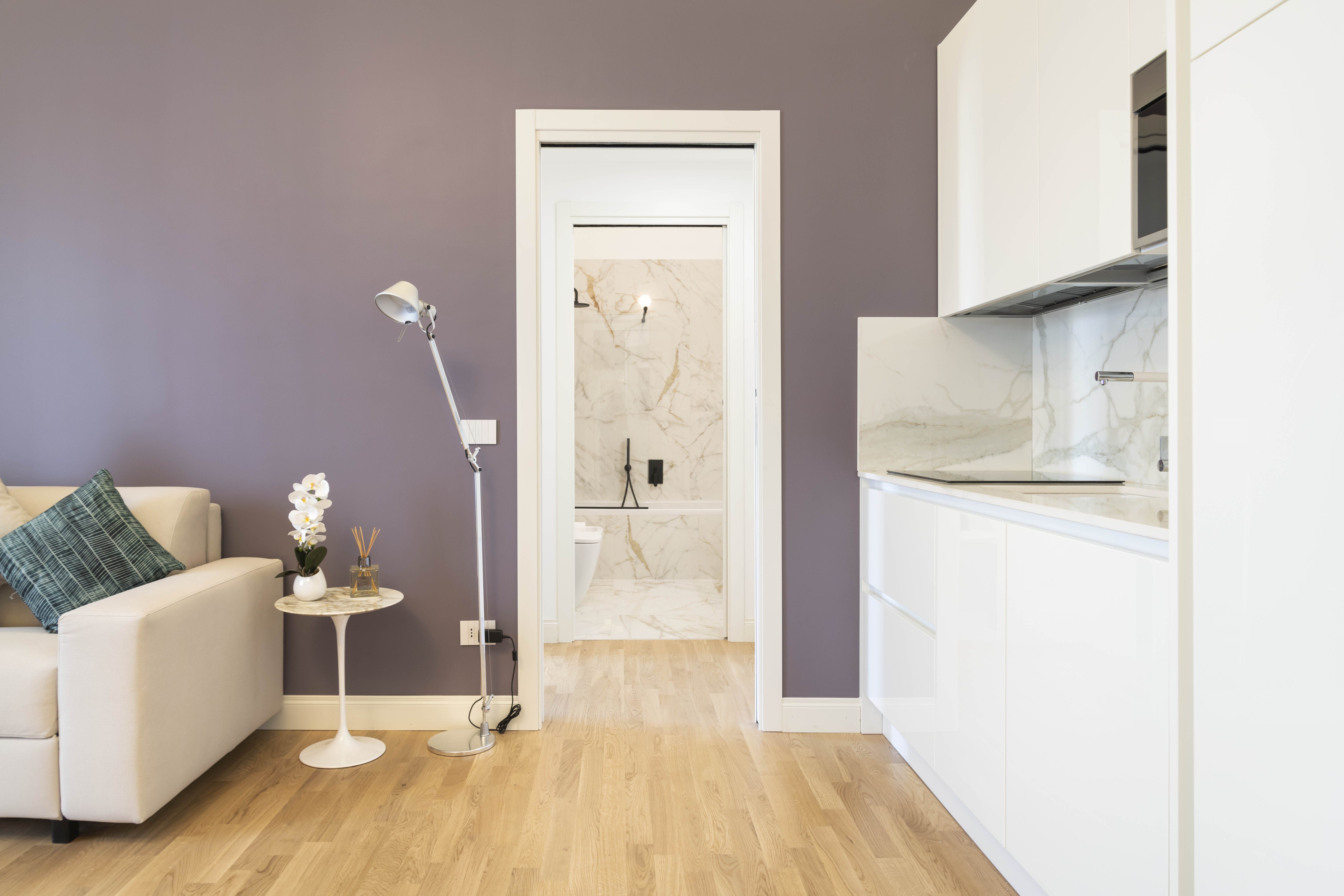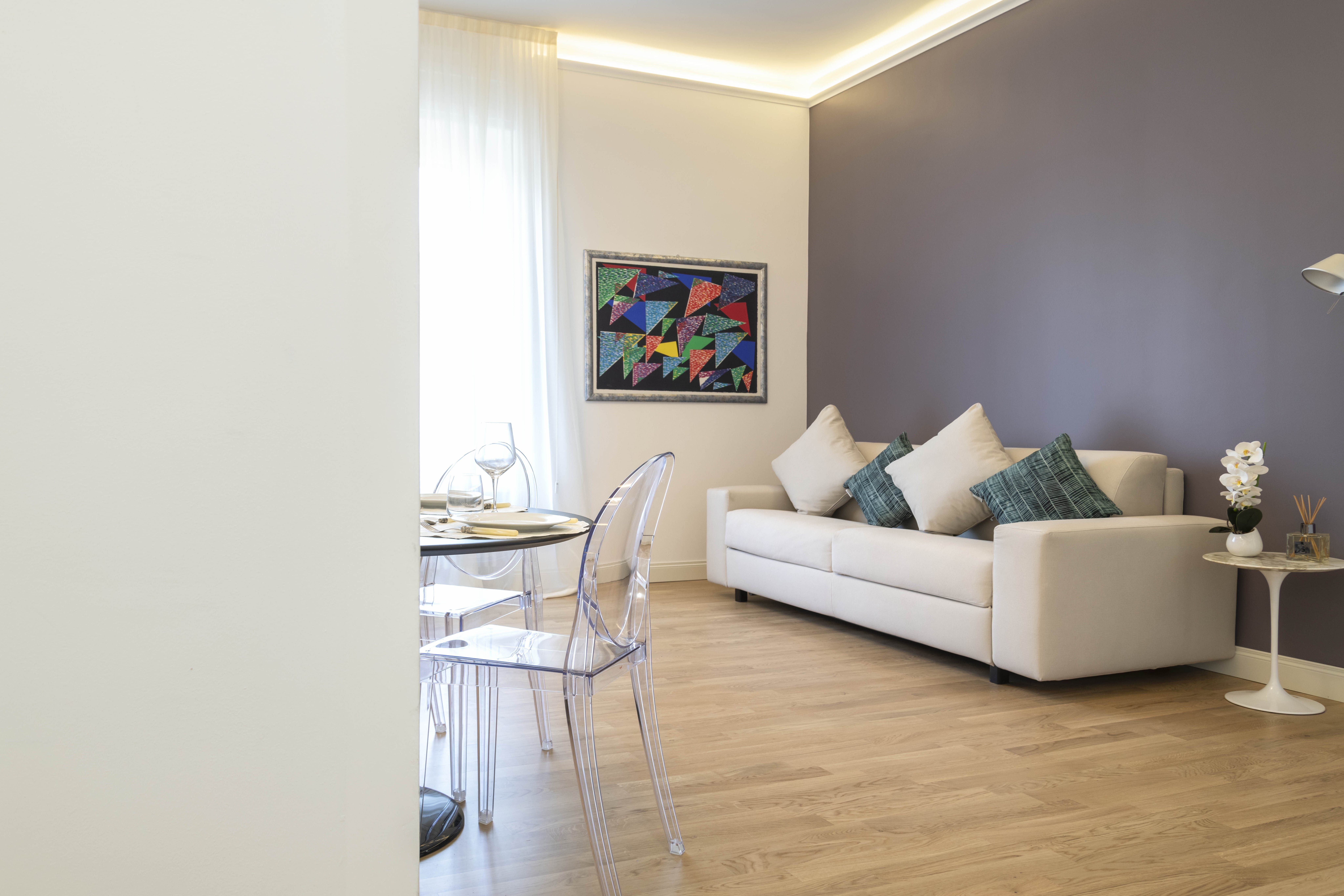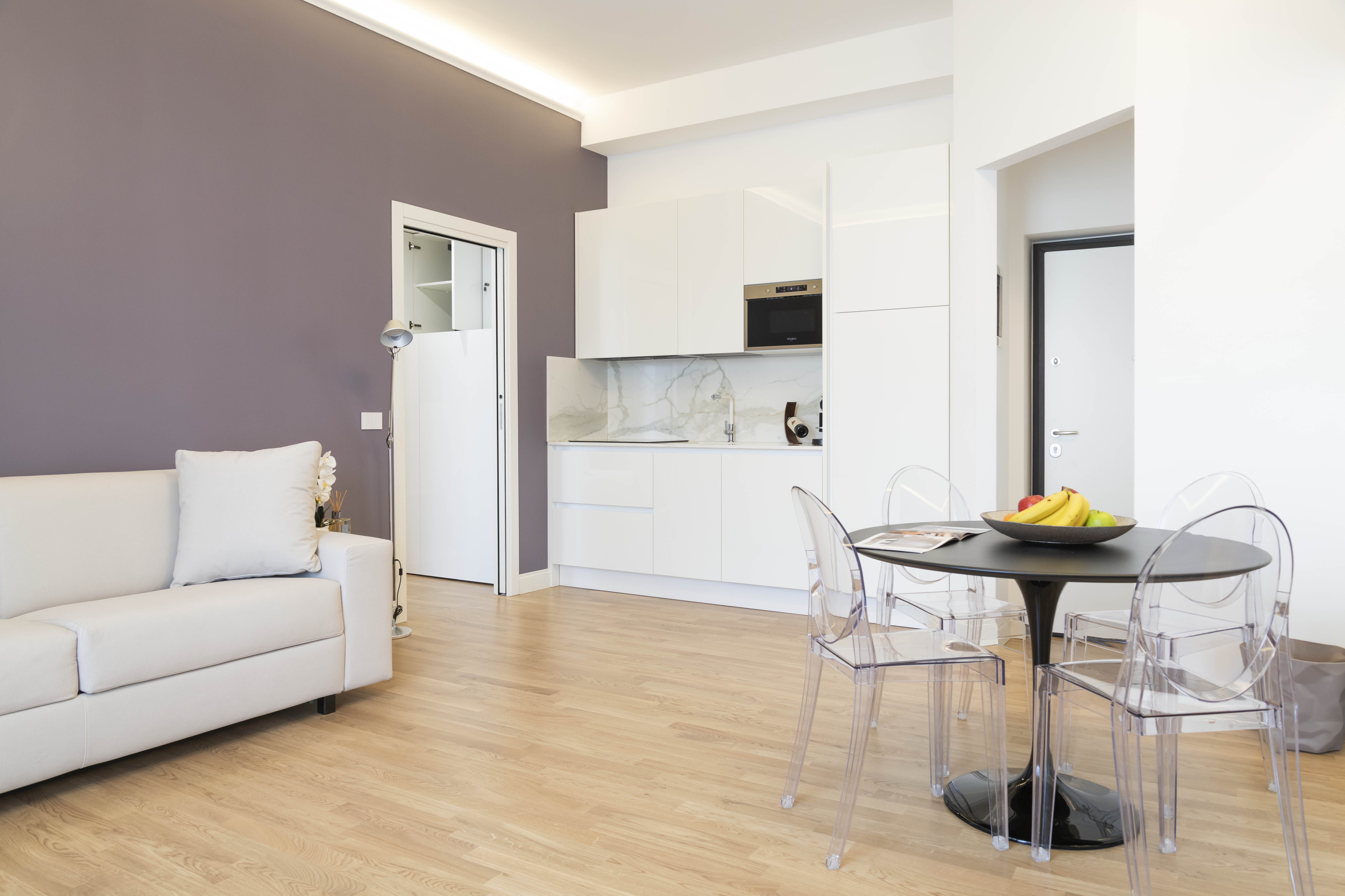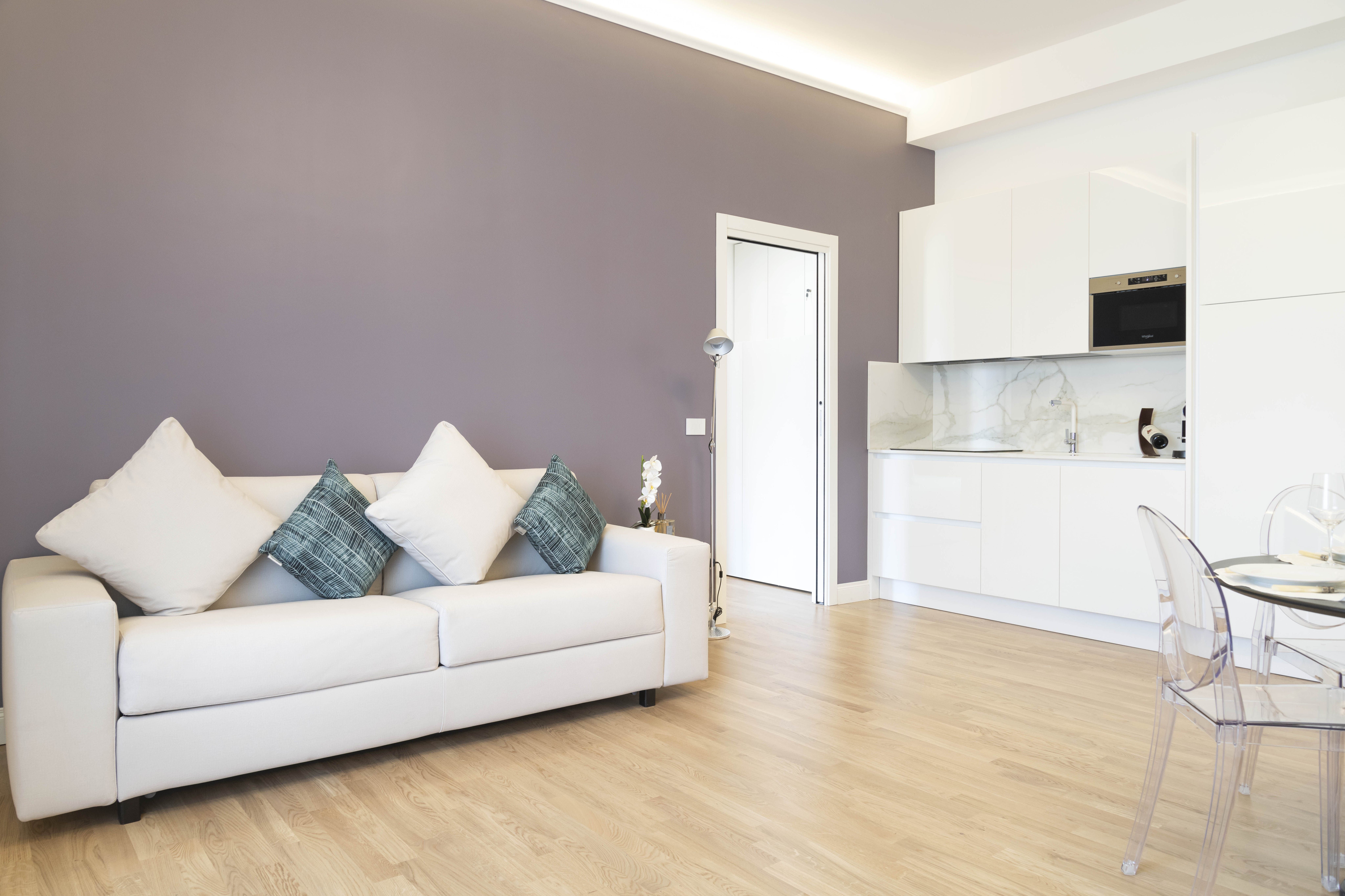 Step through the front door to be immediately welcomed by the stylish and light-filled space. There is plenty of room to kick off your shoes and relax, with a comfy sofa inviting you to enjoy those cosy evenings of Italian wine and sparkling conversation. Rustle up a quick and delicious pasta dish in the kitchen and enjoy it at the little dining table.