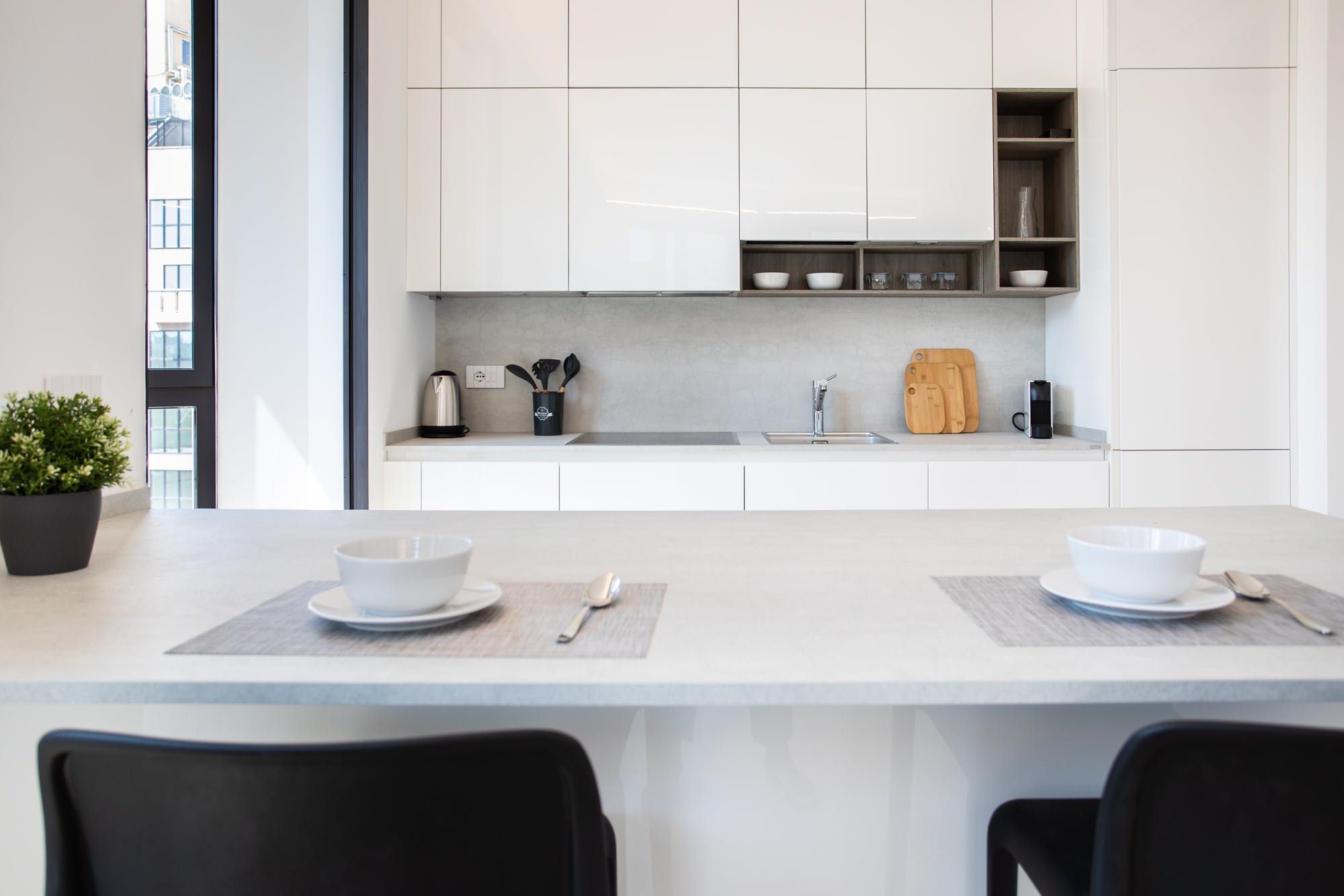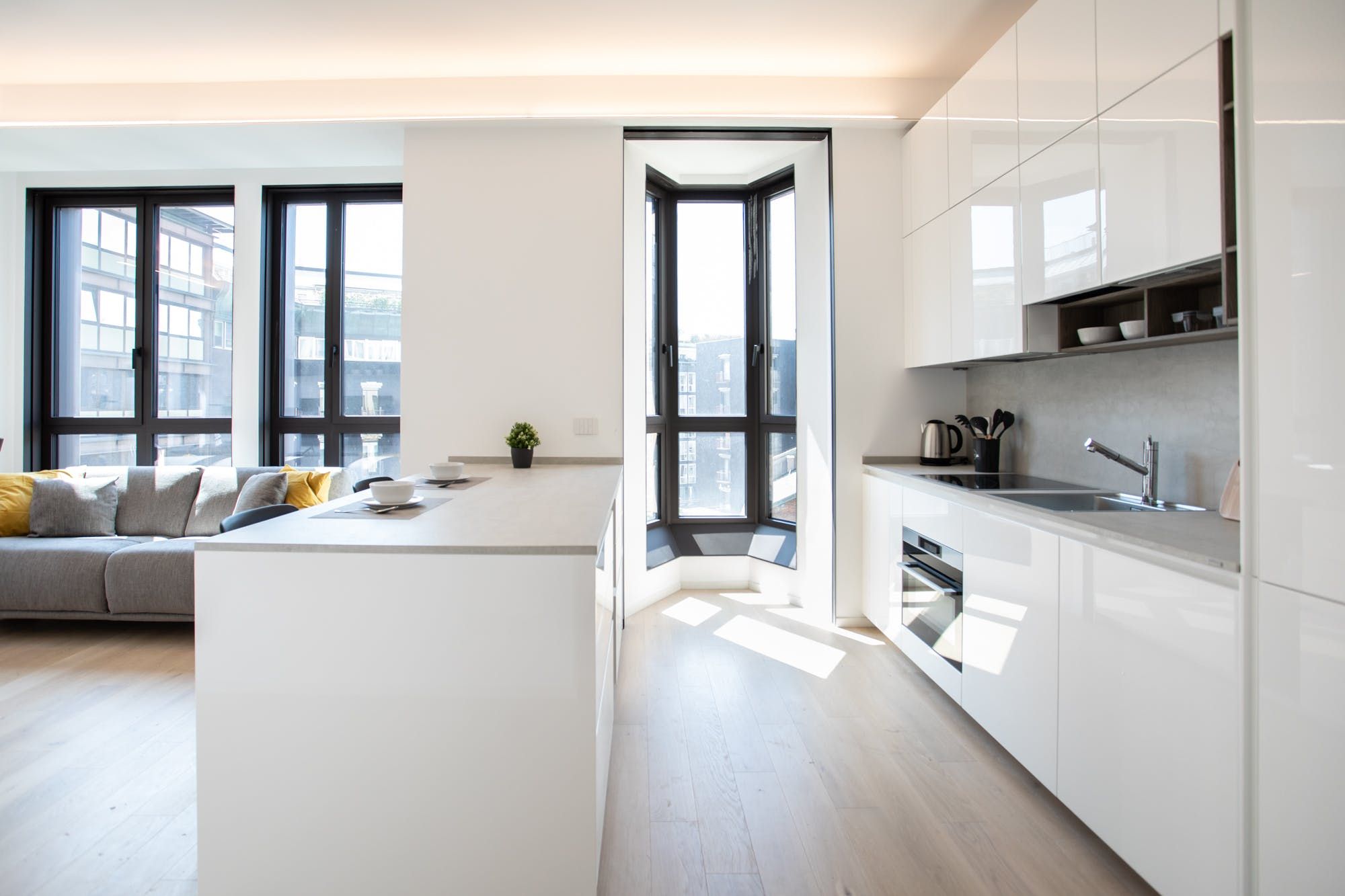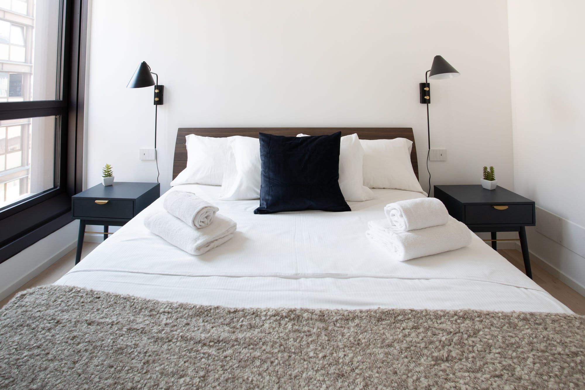 The two bedrooms, meanwhile, have a similarly modern aesthetic, with an en-suite main bedroom letting you wake up to more tall window views and a second bedroom equipped with a desk space should you need to catch up on work.