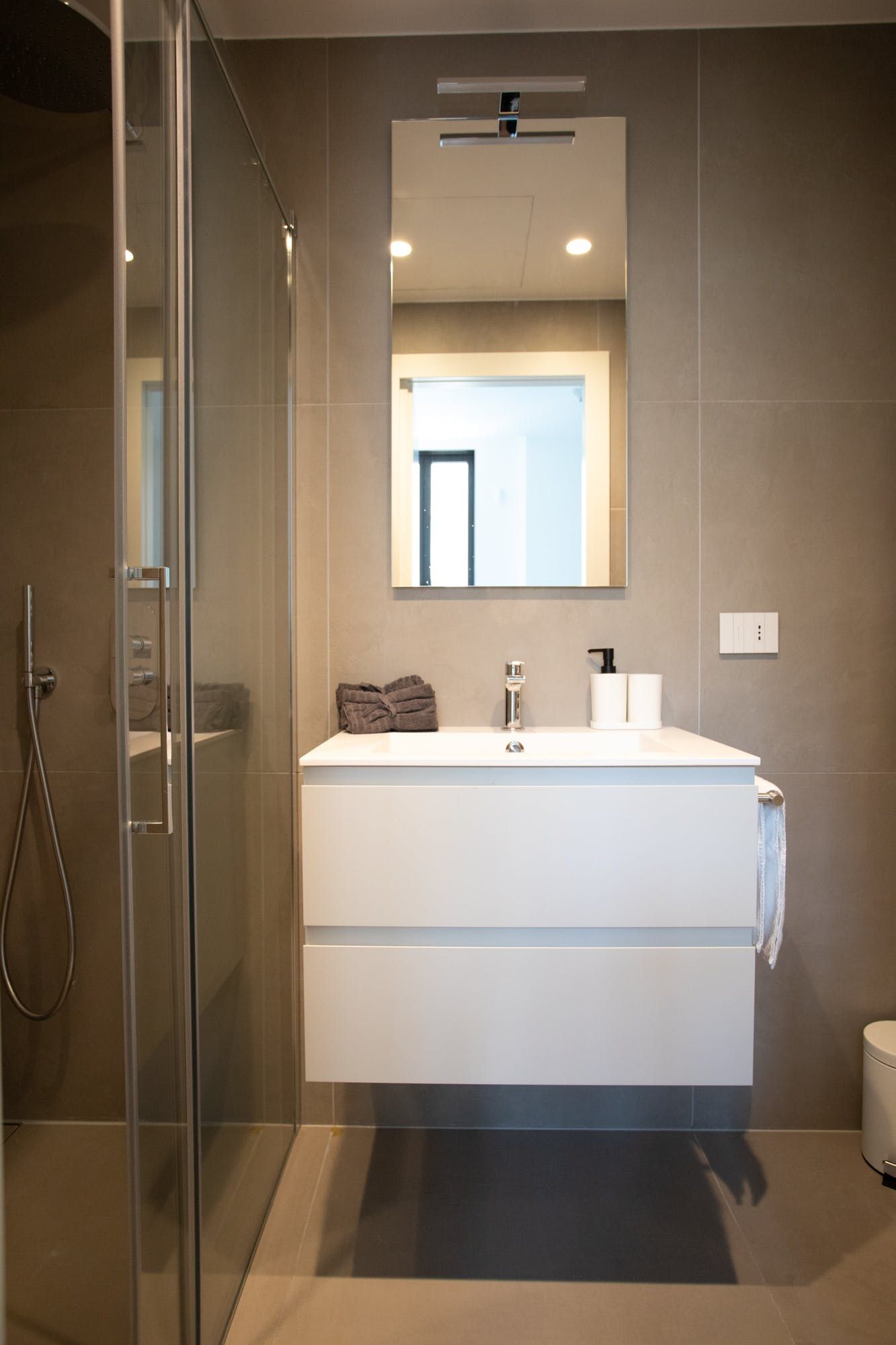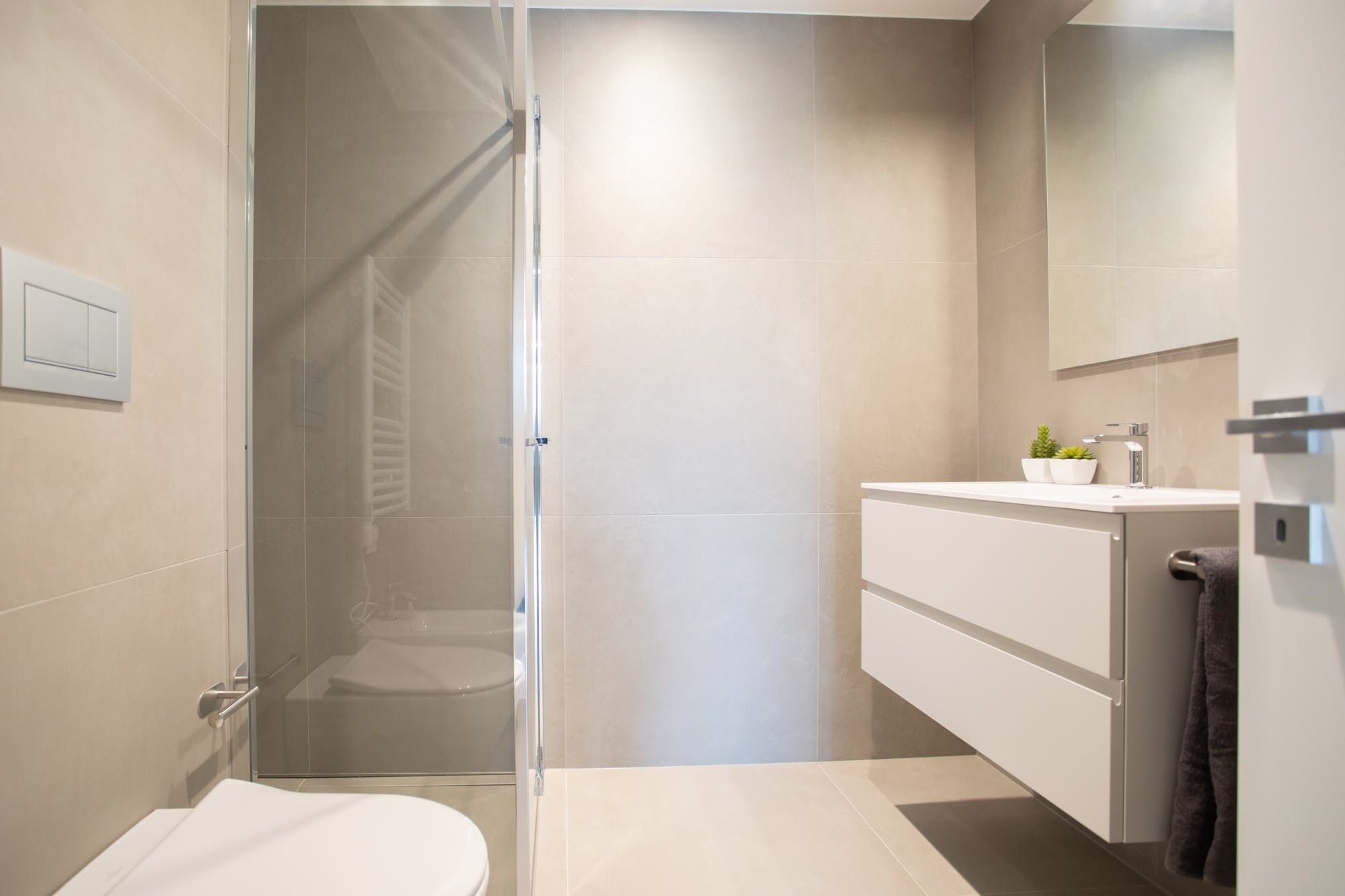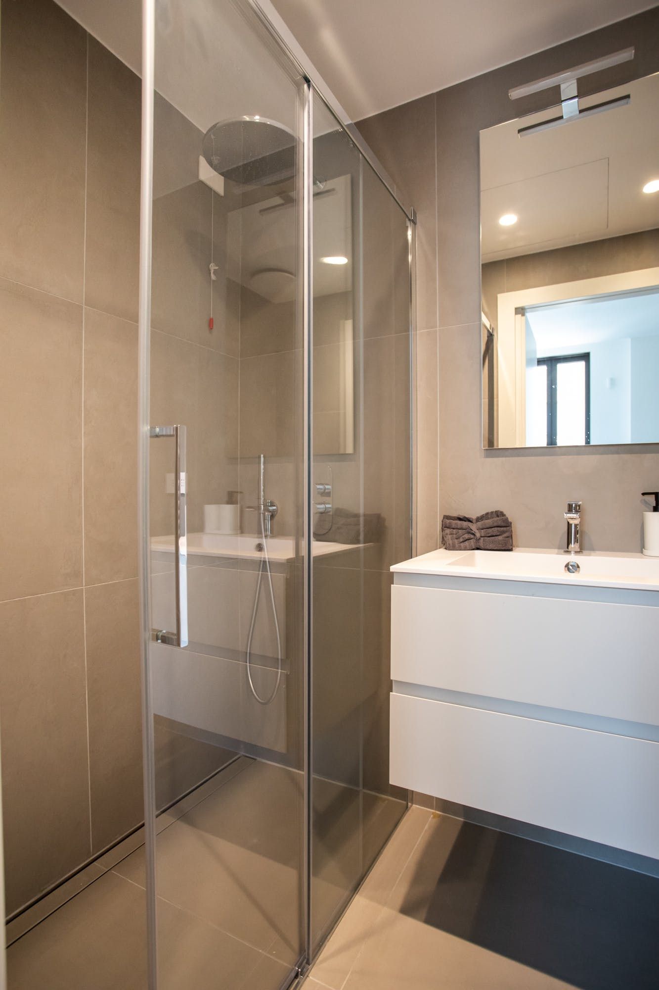 The two bedrooms, meanwhile, have a similarly modern aesthetic, with an en-suite main bedroom letting you wake up to more tall window views and a second bedroom equipped with a desk space should you need to catch up on work.