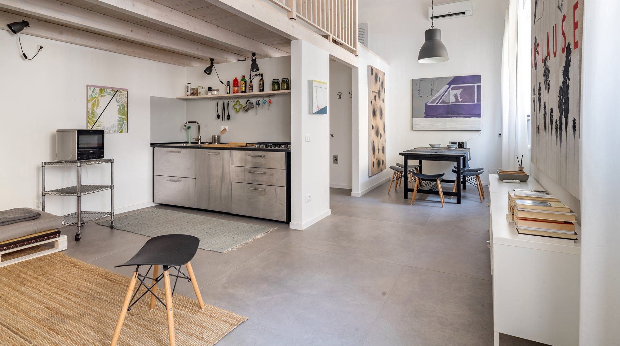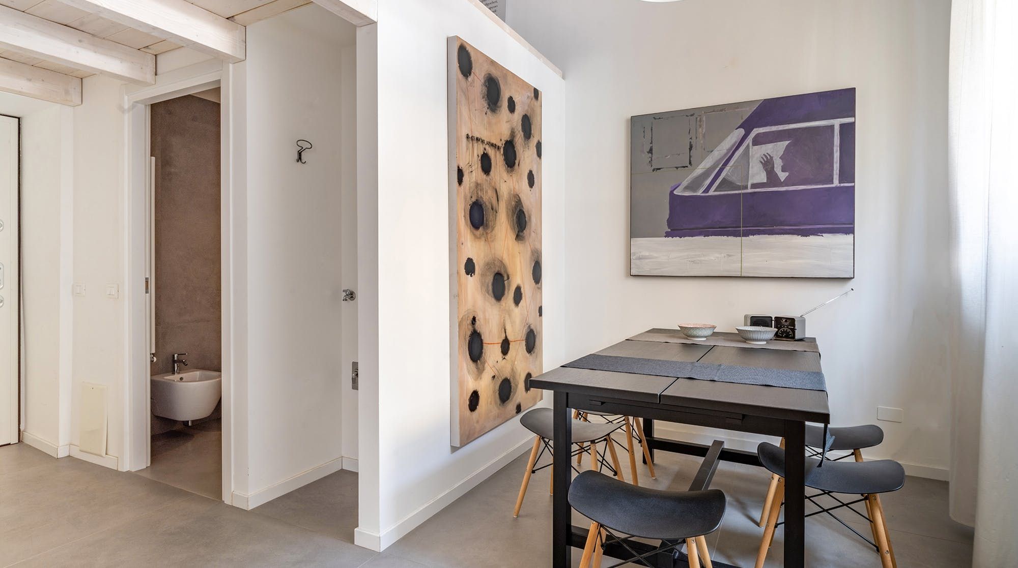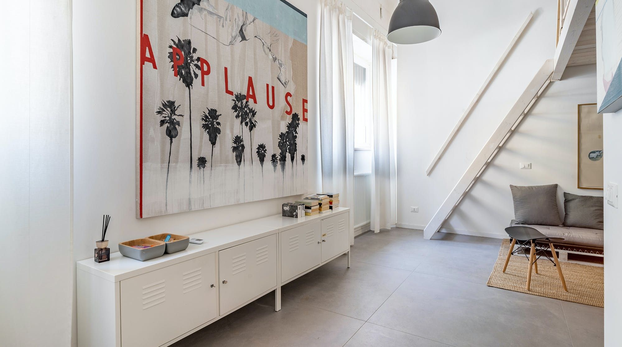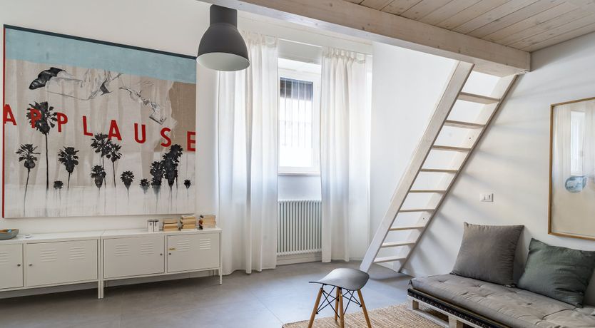 Bigger isn't always better, and at this stylish home in a particularly nice part of the Scalo di Porta Romana neighbourhood, you'll be enchanted by its clever use of space and chic minimalism. Set on the ground floor, and with a typically high ceiling creating a mezzanine floor for the bedroom, it's dazzlingly white, and filled with fascinating art and quirky furnishings.