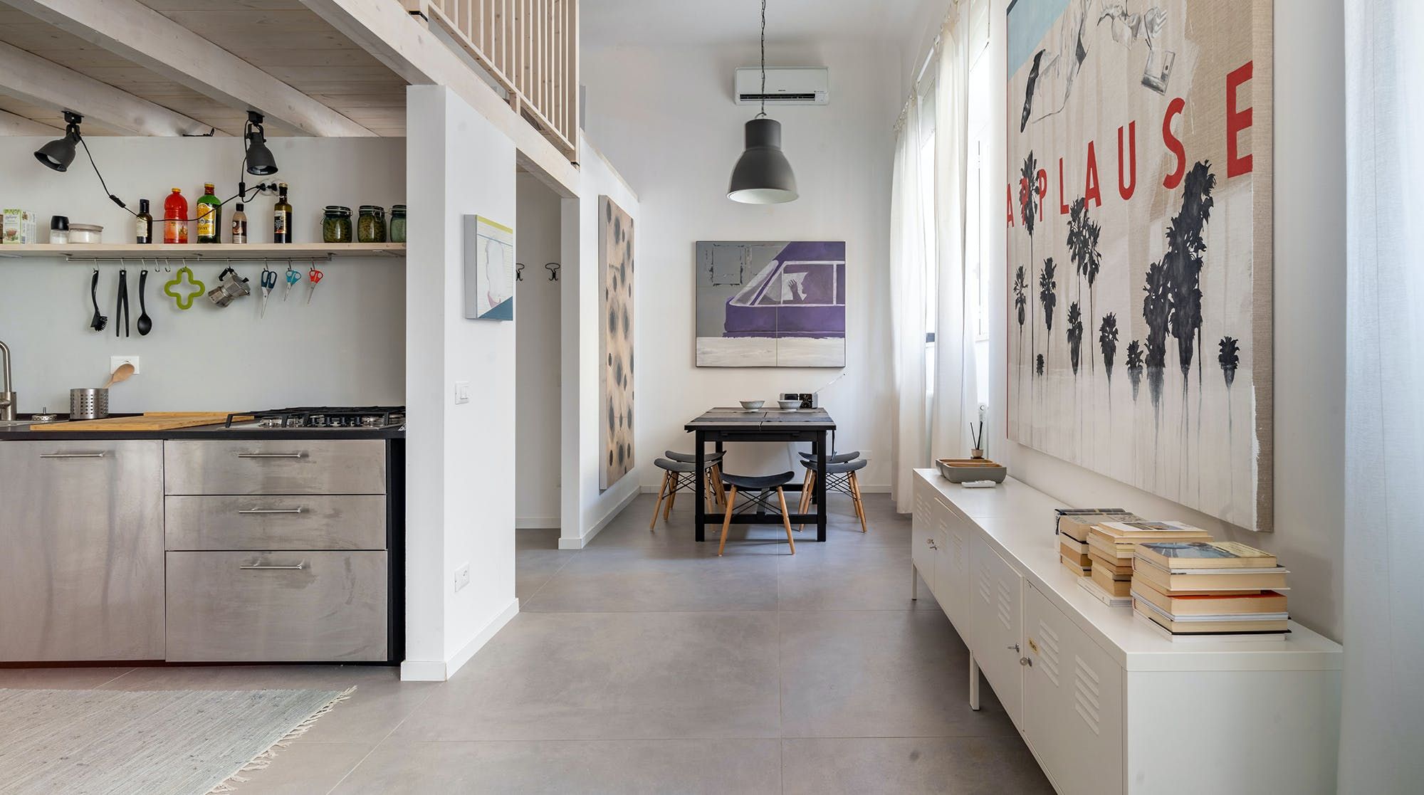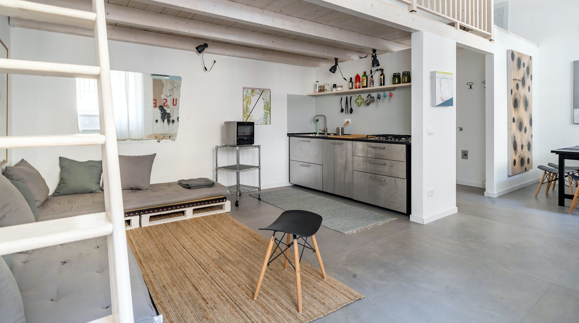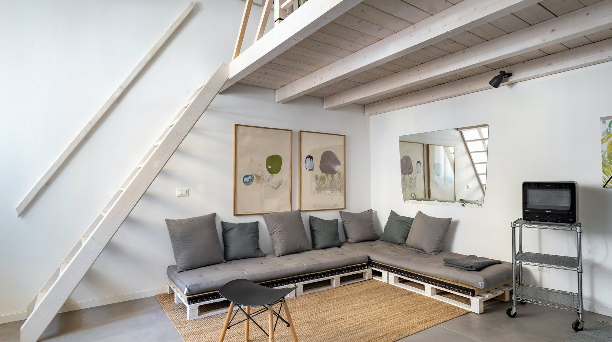 Bigger isn't always better, and at this stylish home in a particularly nice part of the Scalo di Porta Romana neighbourhood, you'll be enchanted by its clever use of space and chic minimalism. Set on the ground floor, and with a typically high ceiling creating a mezzanine floor for the bedroom, it's dazzlingly white, and filled with fascinating art and quirky furnishings.