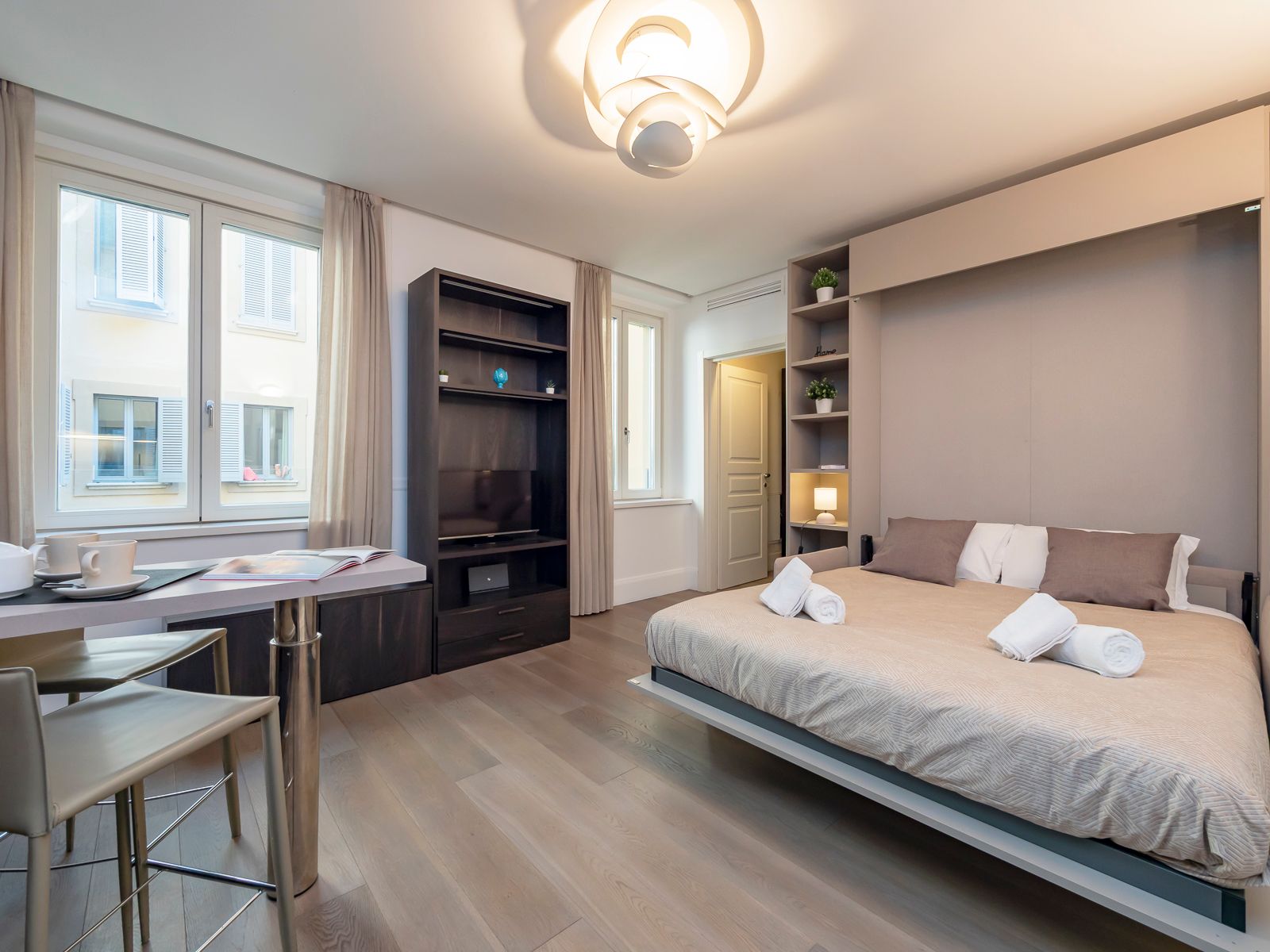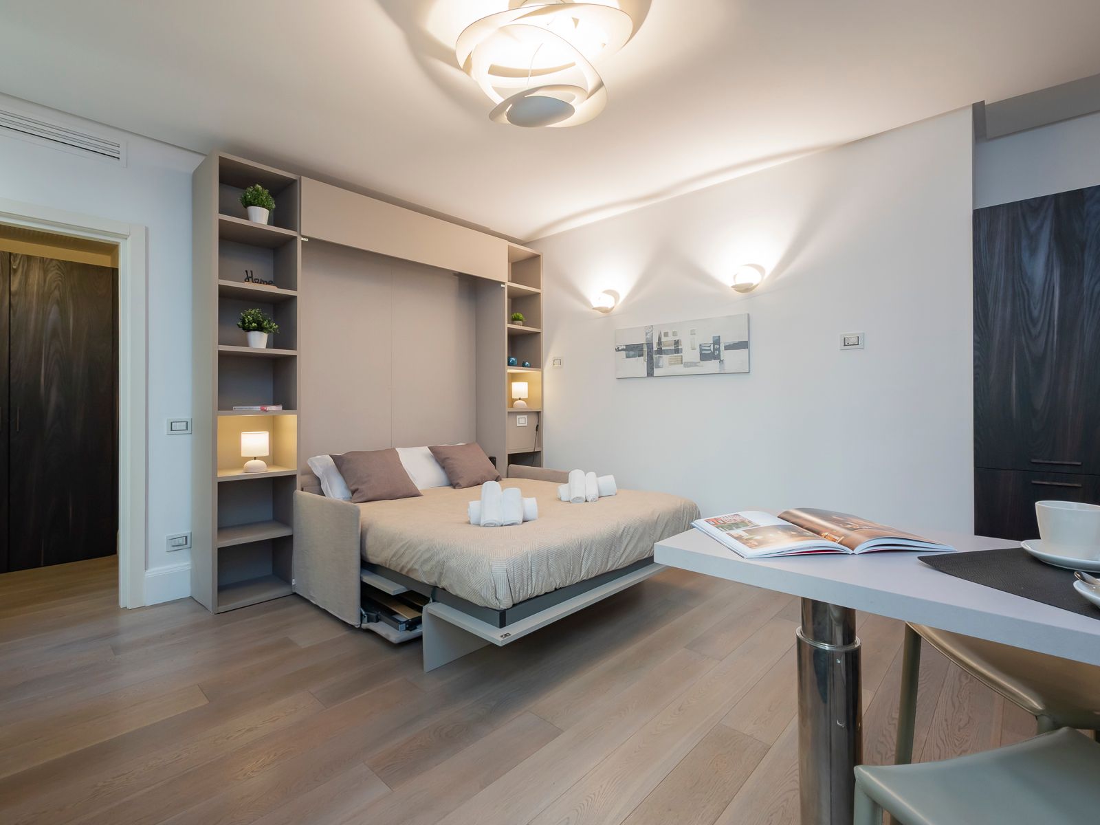 Situated right in the heart of Milan, with the iconic Duomo just minutes away, this studio apartment is all about location. Catch the lift to the second floor and cross the threshold to find a cosy space, filled with everything you’d need for a comfortable stay – a fully-equipped kitchen, a spacious bathroom featuring a walk-in shower with a rainfall attachment, and a plush sofa that pulls out into a double bed. Venture out to discover the best the city has to offer, right at your fingertips – with Milan’s famous pilazzos, piazzas and myriad cultural attractions within easy walking distance.