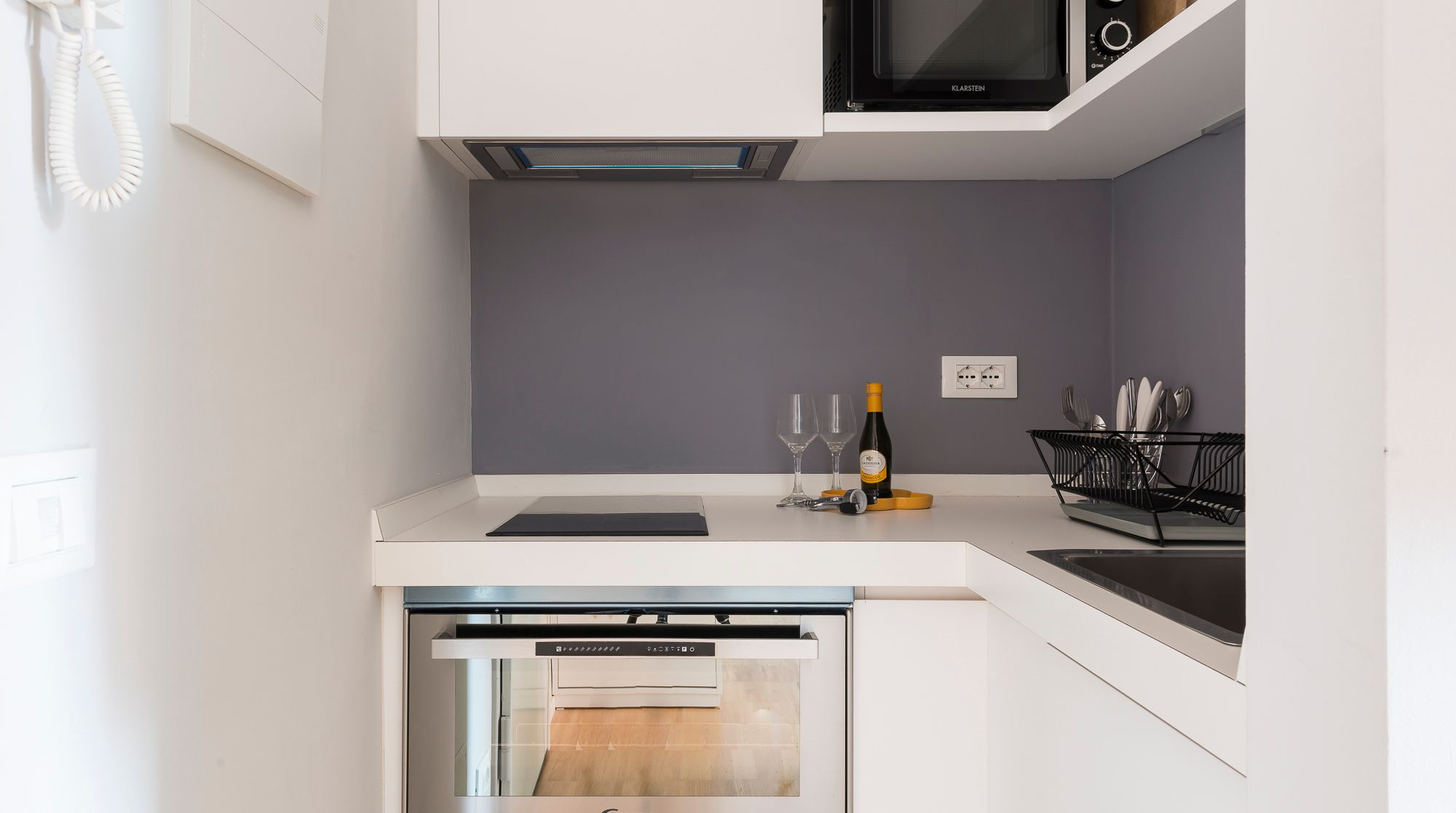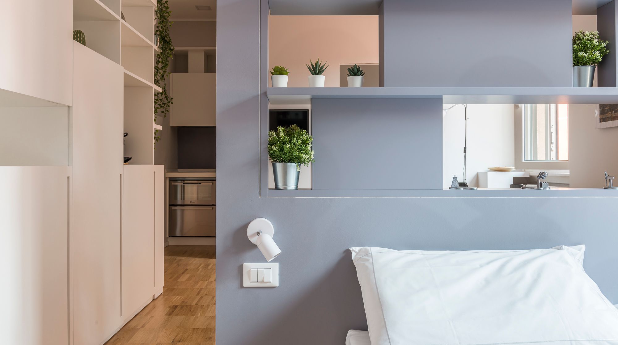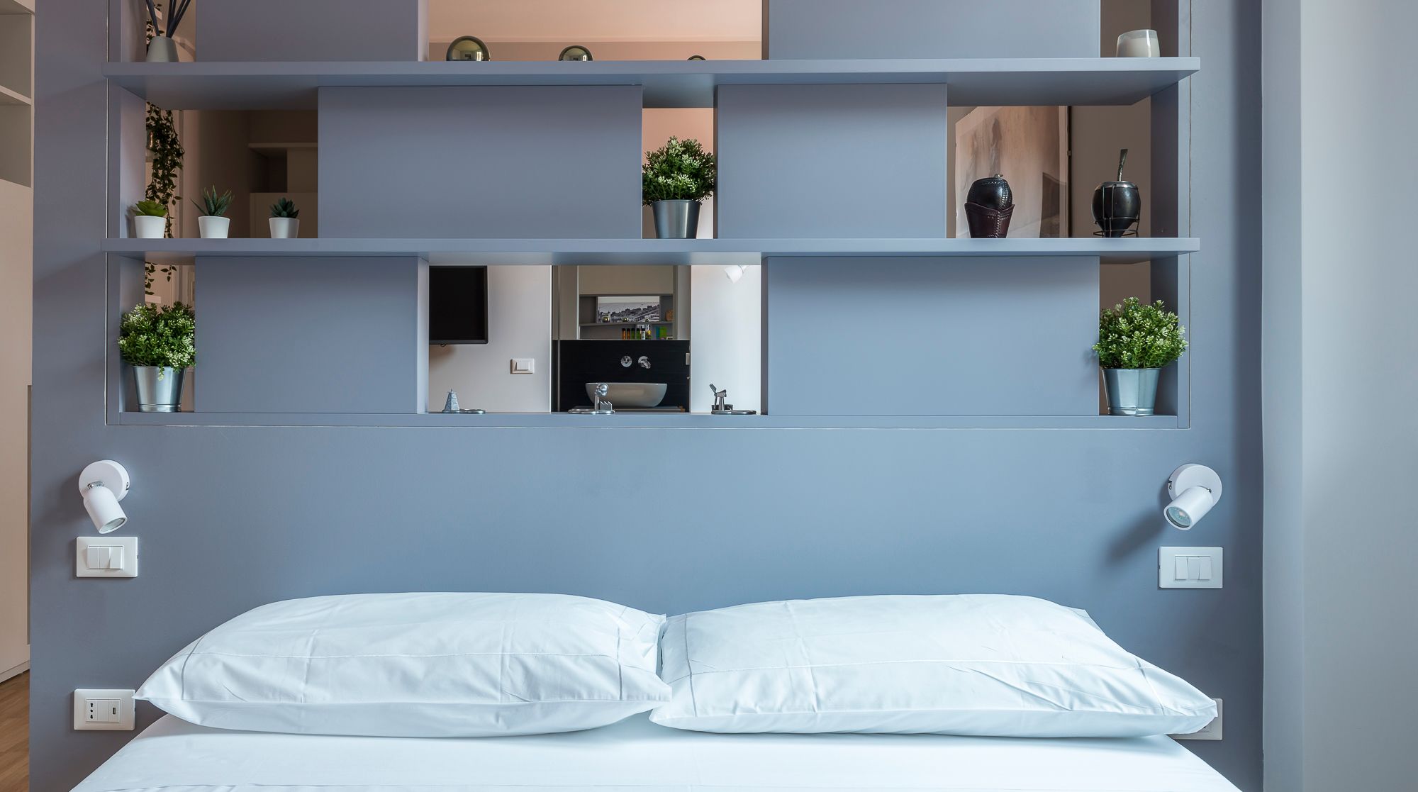 While there’s no getting around the fact that Honeydew is tiny (less than thirty metres squared), the way that the space has been exploited is impressive. The kitchen might not provide much space for socialising, but it has an oven, a grill, two hobs, a microwave, and a full-height fridge, while there shelves between the bed and the living space keep light flowing through the place.