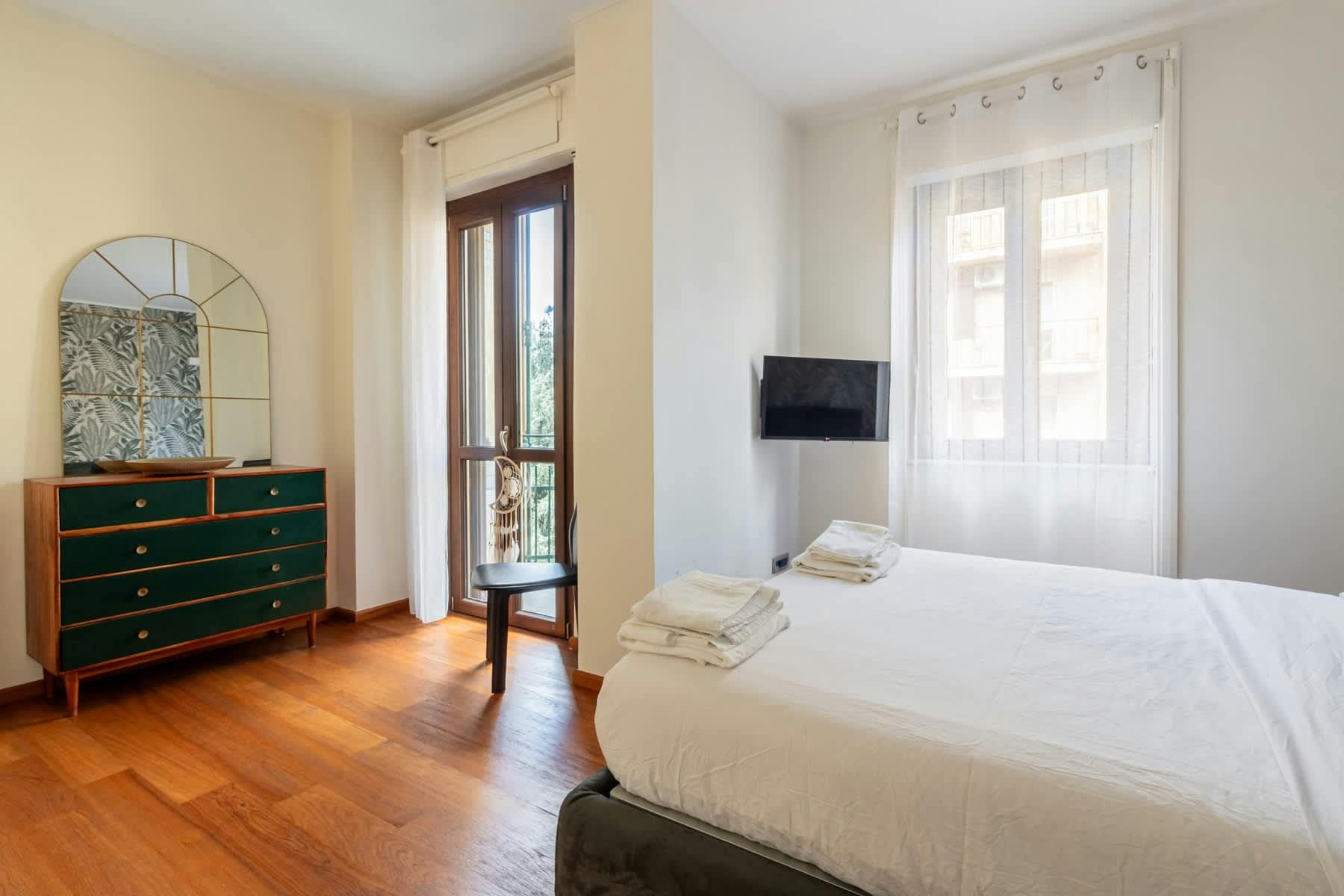 Experience Milan in this apartment, which is within walking distance of Arco della Pace and Piazzale Giulio Cesare. There are also plenty of local cafes and shops, while public transport links are a short stroll away when you want to explore the rest of the city. After a busy day, there are communal gardens here, as well as a private balcony to relax on, while inside is modern and bright. The living room also sleeps guests three and four on a sofa bed. This place is ideal for a business professional looking to be near Milan’s business district, but equally, it will suit families and friends looking to live like a local.