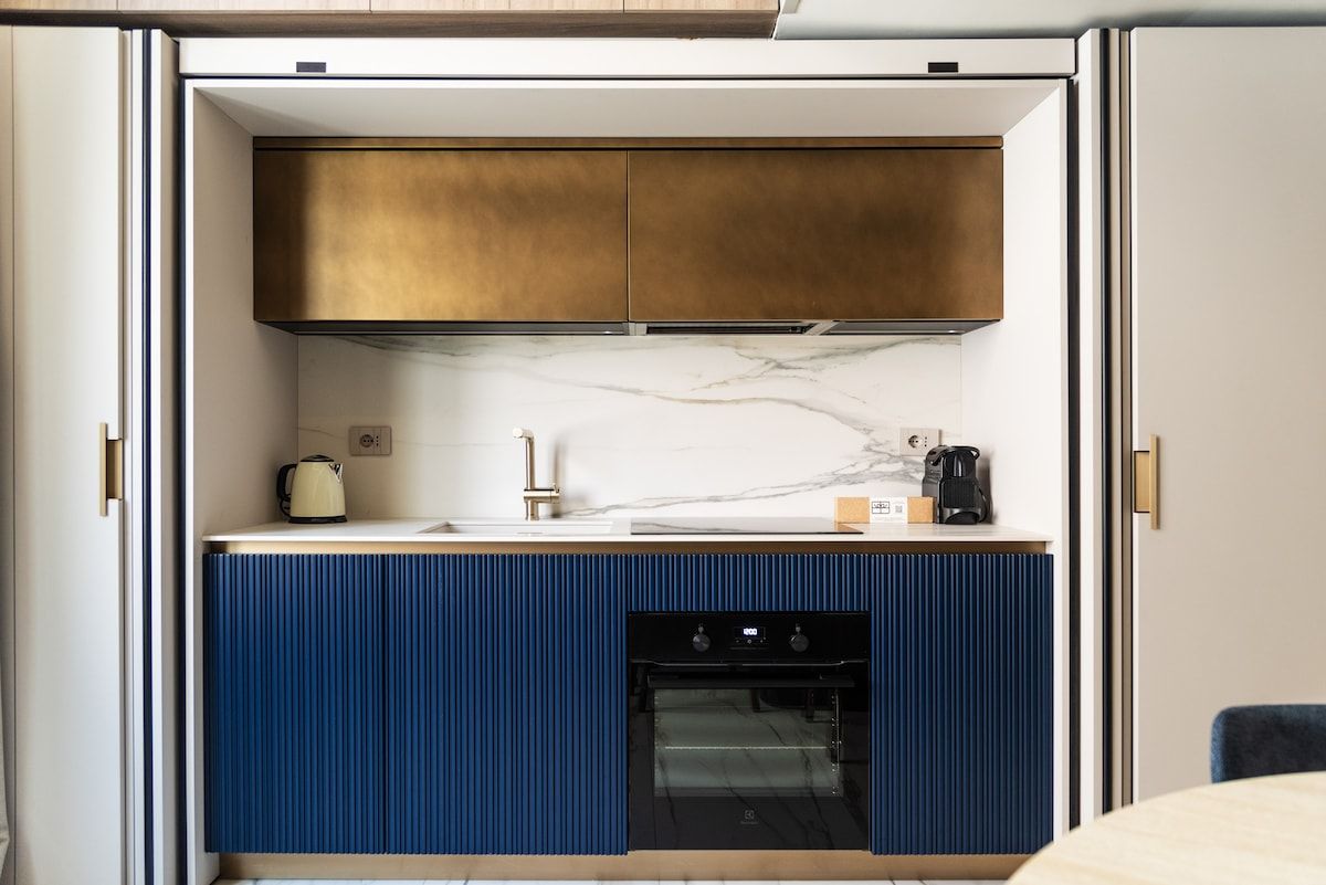 Smack bang in the heart of Milan, a ten-minute walk from the Duomo, Galleria Vittorio Emanuele II and the Royal Palace, this apartment is ideal for solo travellers or couples eager to tick off the city’s most famous hotspots. While up to four guests are accommodated here, two will be on the sofa bed on the mezzanine level above the living space – something to keep in mind if privacy is a priority. For longer stays, it’s worth noting that the kitchen is ideal for light bites, but with plenty of eateries right on your doorstep, you’ll never be short of options when it comes to dining.