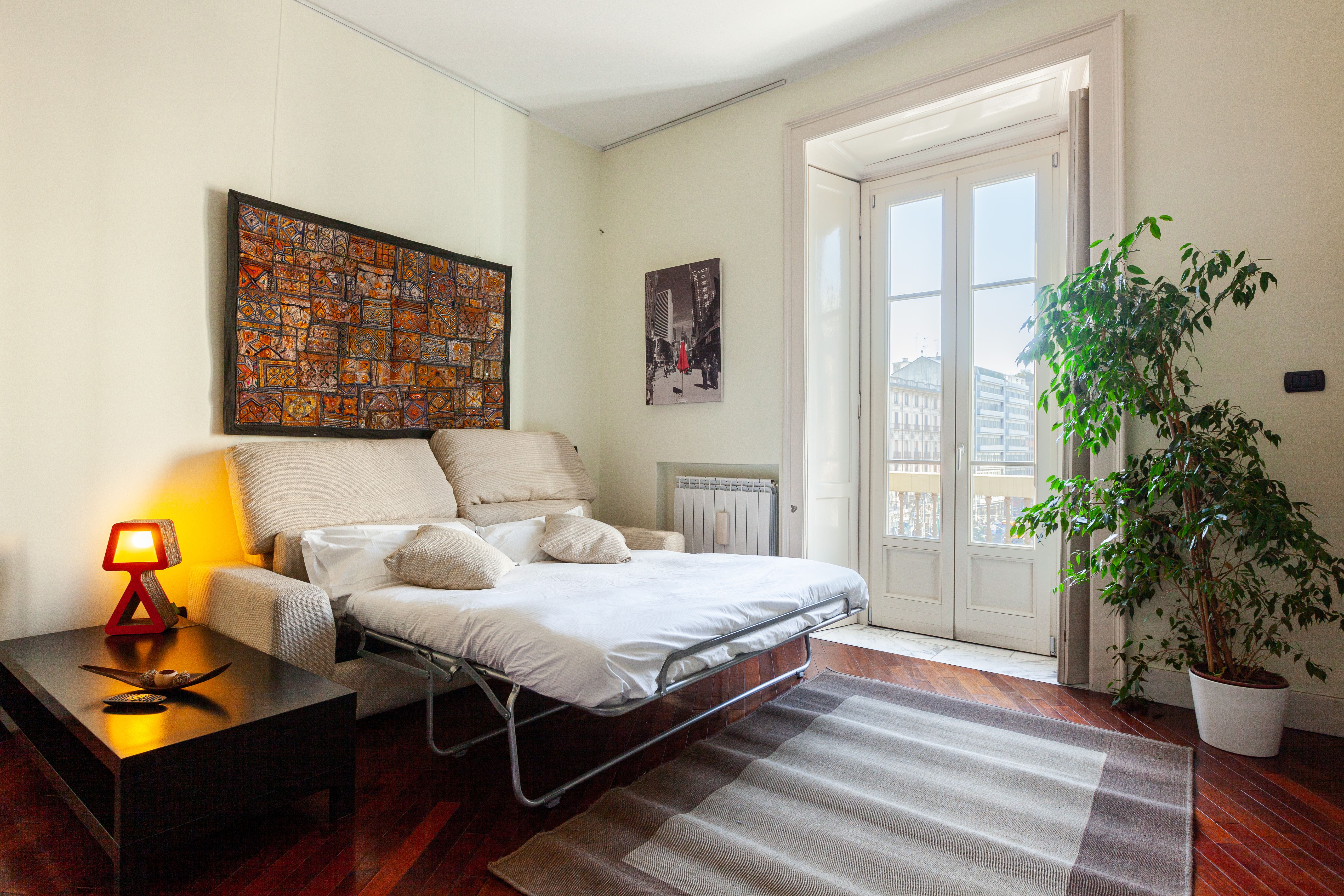 This apartment is conveniently located for a short stay in Milan. It looks out over Piazza 5 Giornate, and is just a fifteen-minute walk from the Duomo. Nearby transport links make it easy to explore the rest of Milan, whether you’re interested in shopping the boutiques or taking in the history of the museums and galleries. With six guests staying here, two will sleep on a sofa bed in the living space. There’s a kitchen to cook in, but with so many great restaurants nearby, you can easily dine out for every meal.