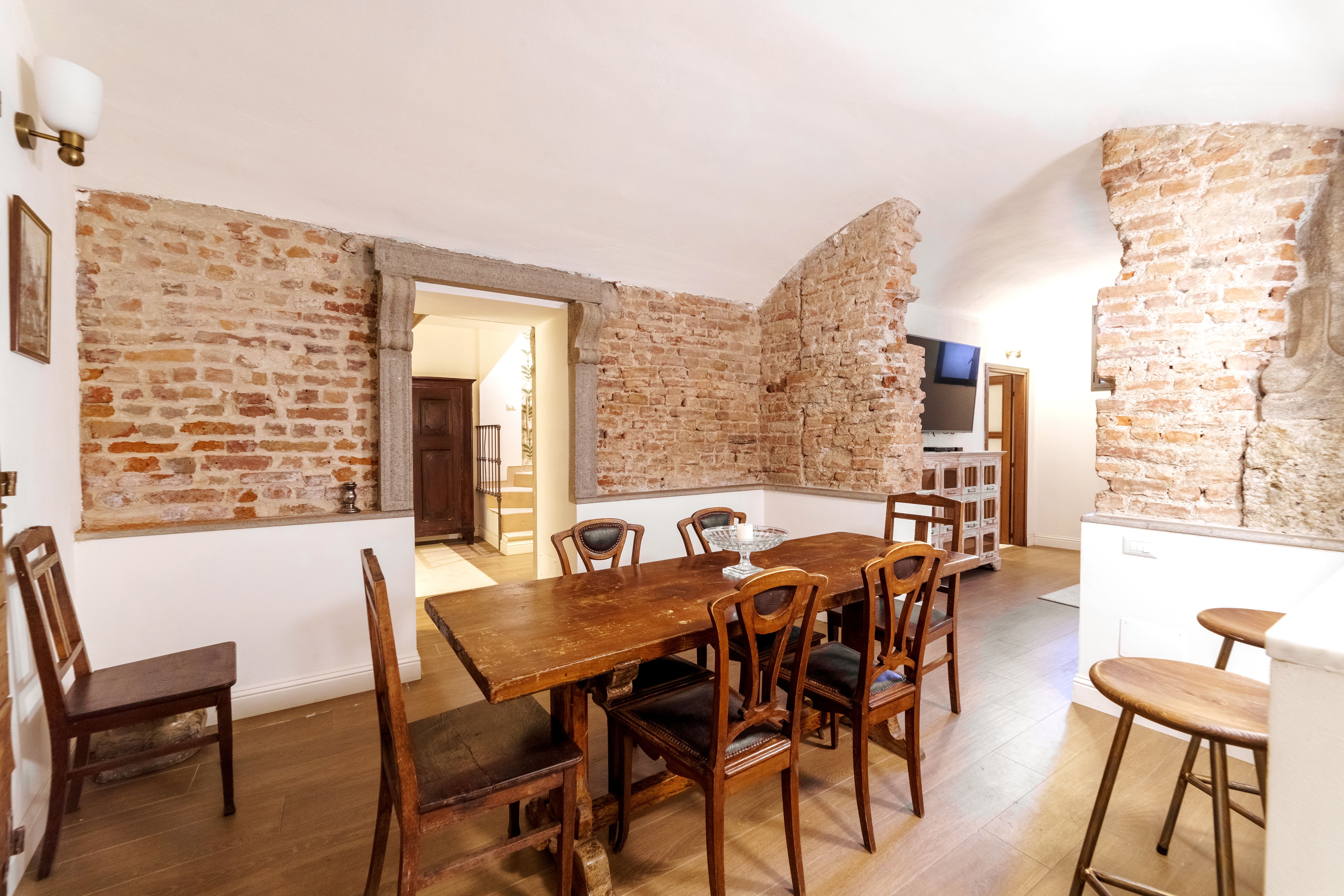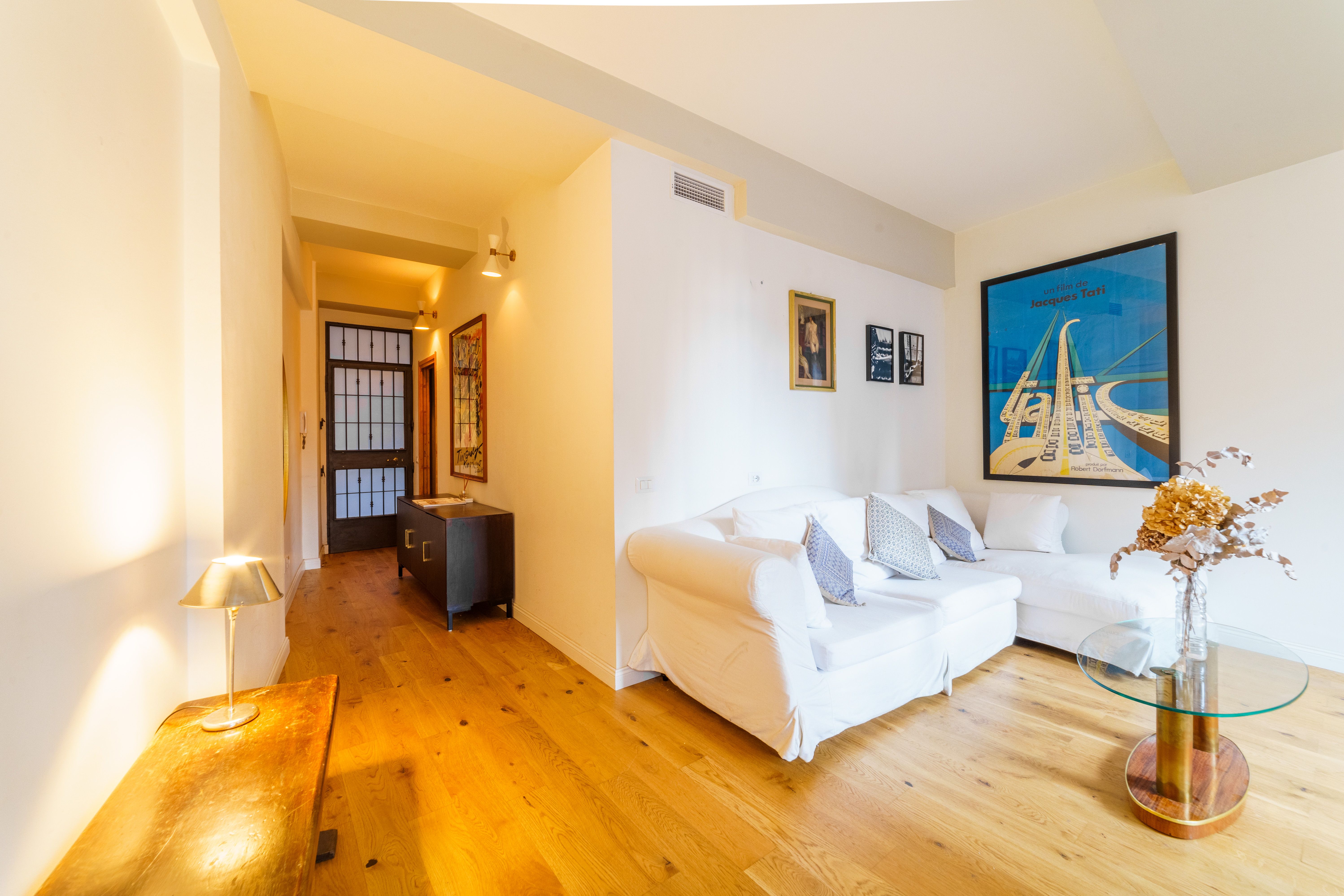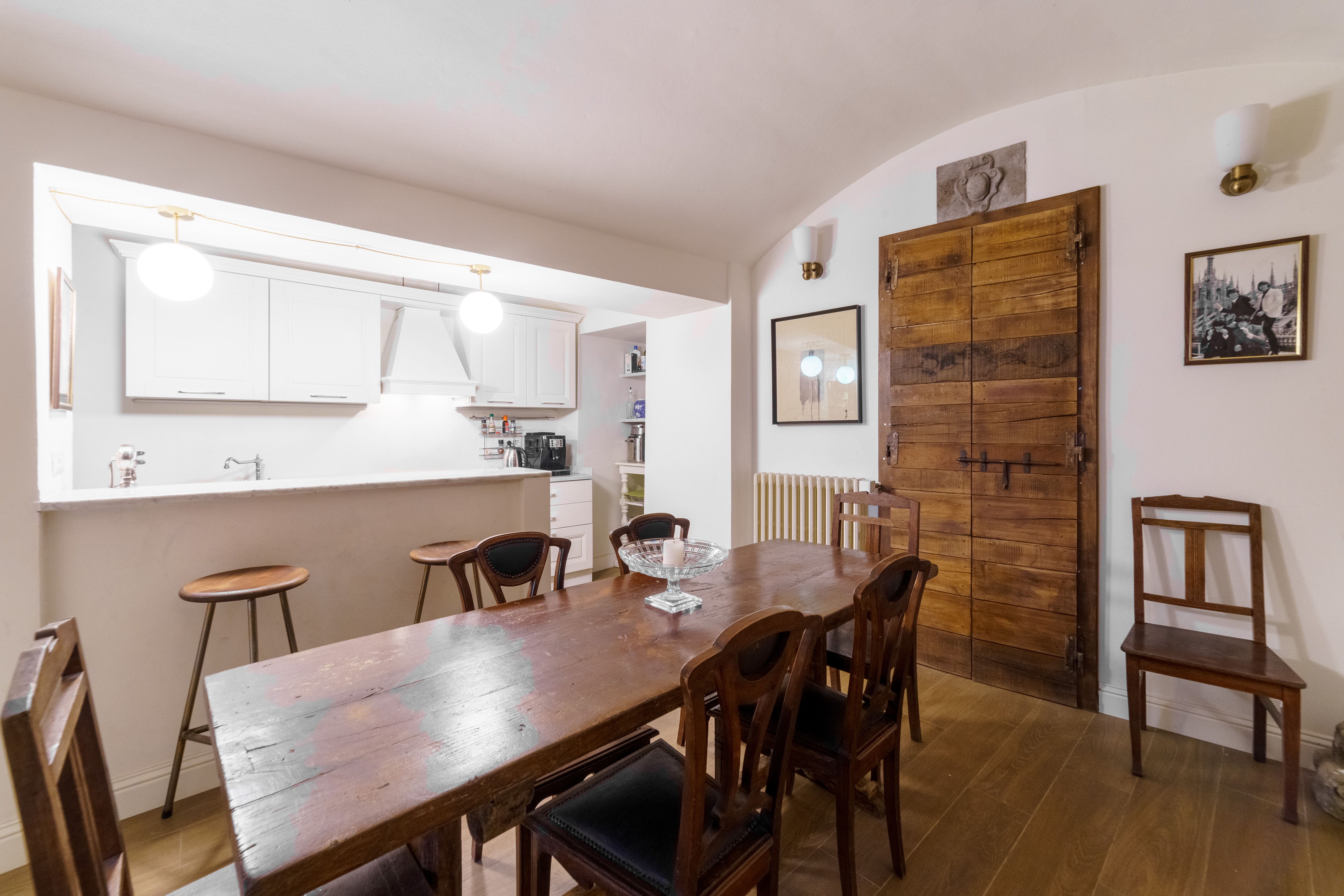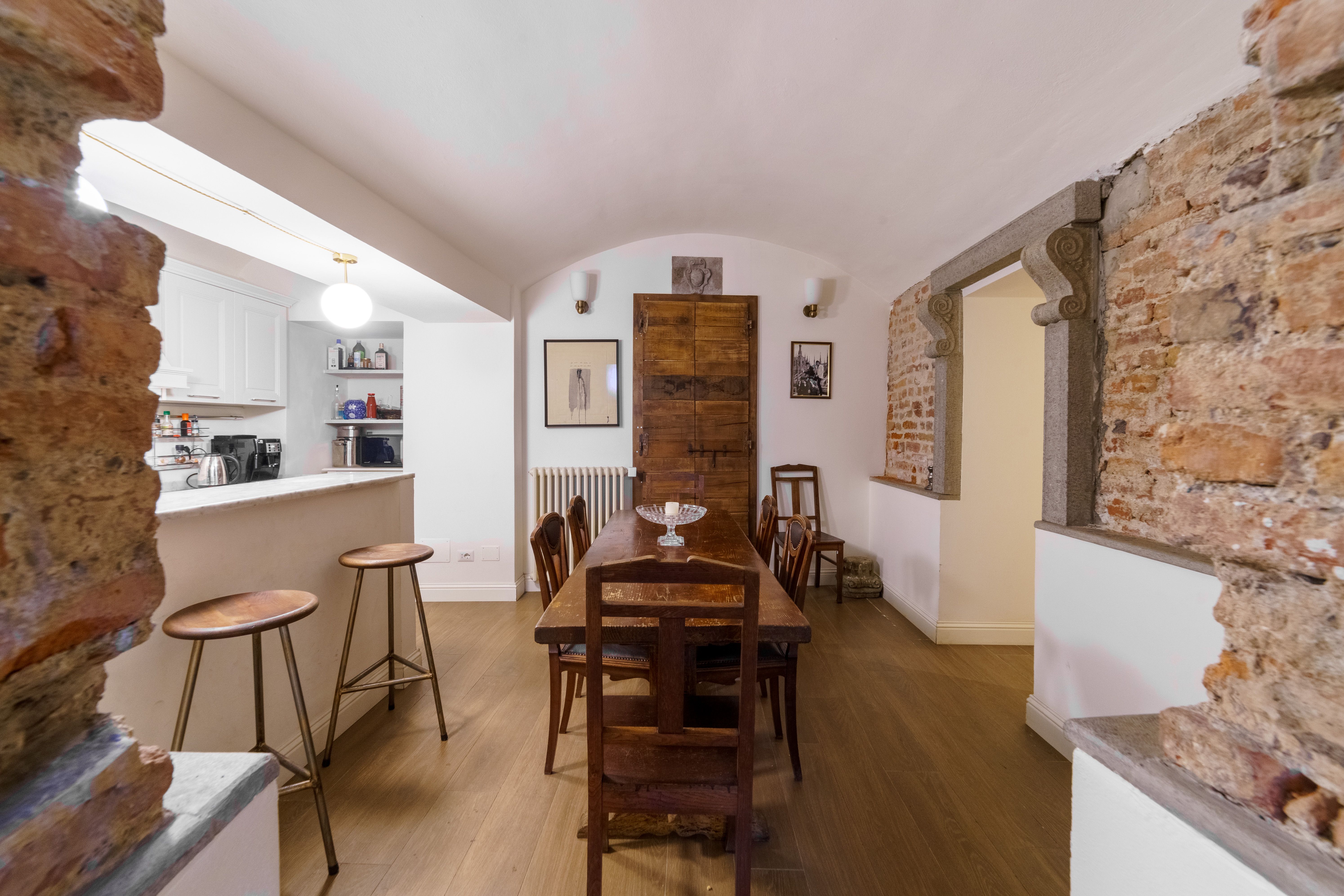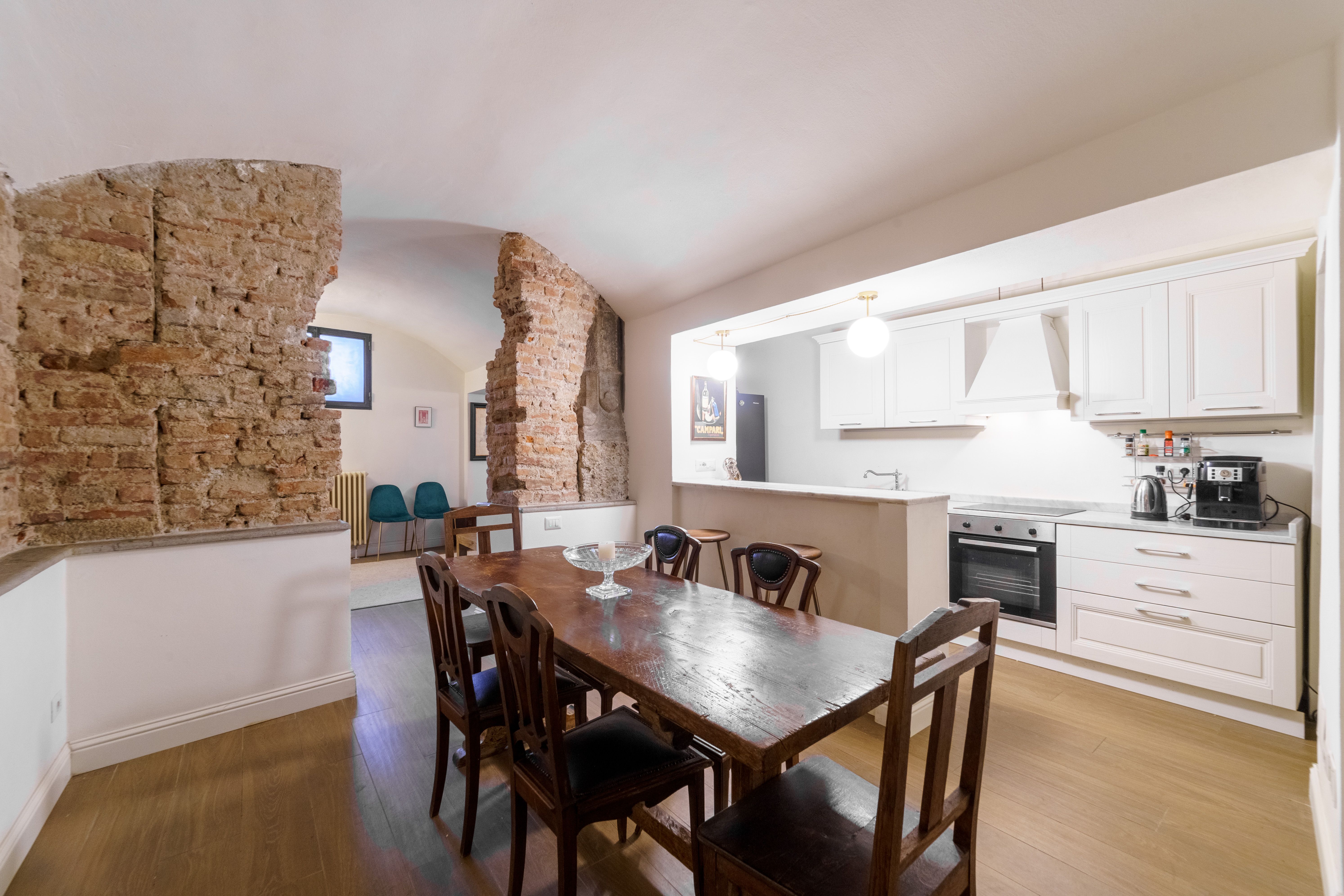 This two-floor apartment is situated on a quiet but central street in Milan. It’s in a peaceful spot but is within walking distance of the city’s main attractions – the Duomo is just a fifteen-minute walk away. You’ll also be close to shops, restaurants, and transport links. The apartment blends classic features like exposed brick and dark wood furniture with modern elements that make it a bright, welcoming home-from-home. At full occupancy, two guests will sleep on a sofa bed in the living room.