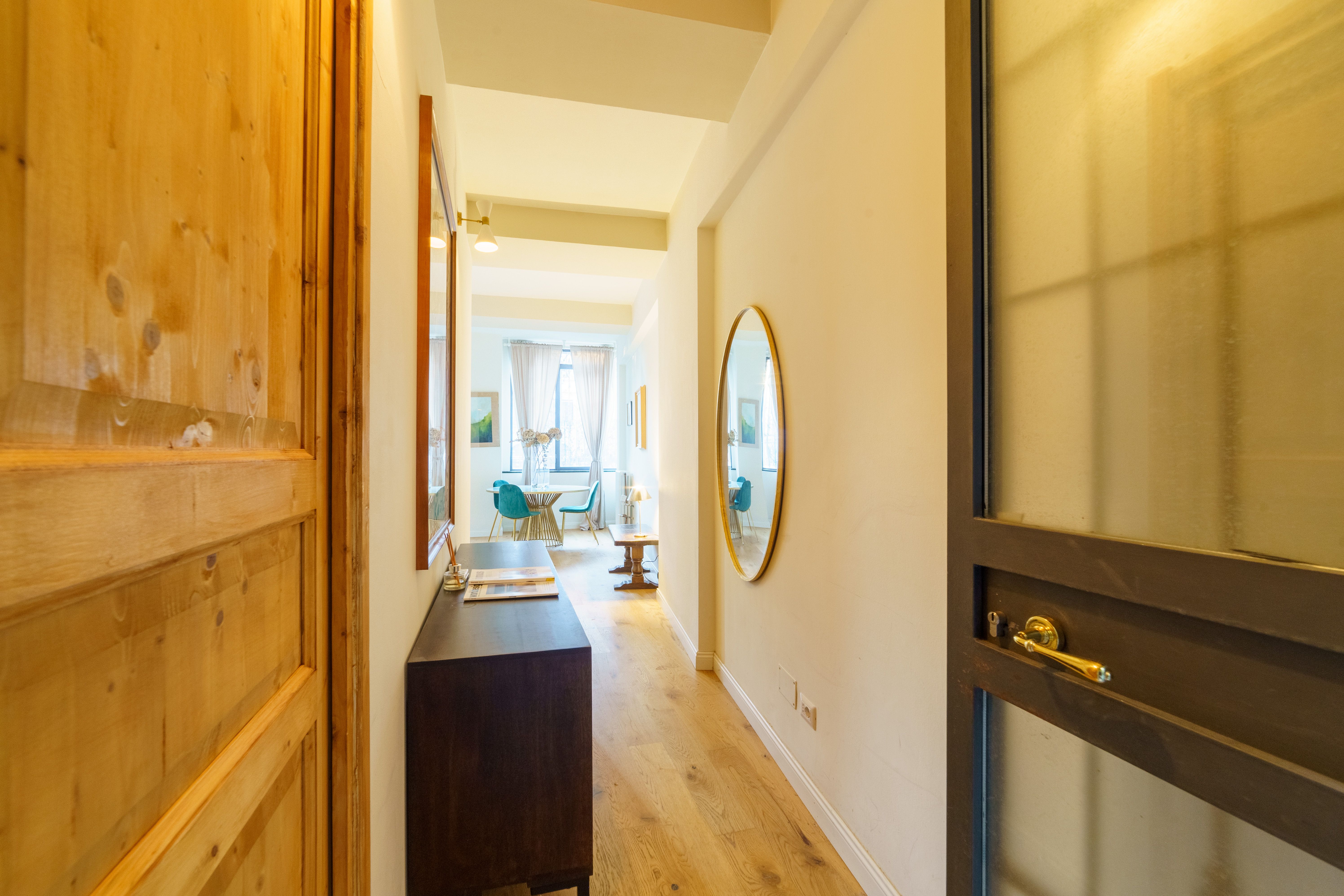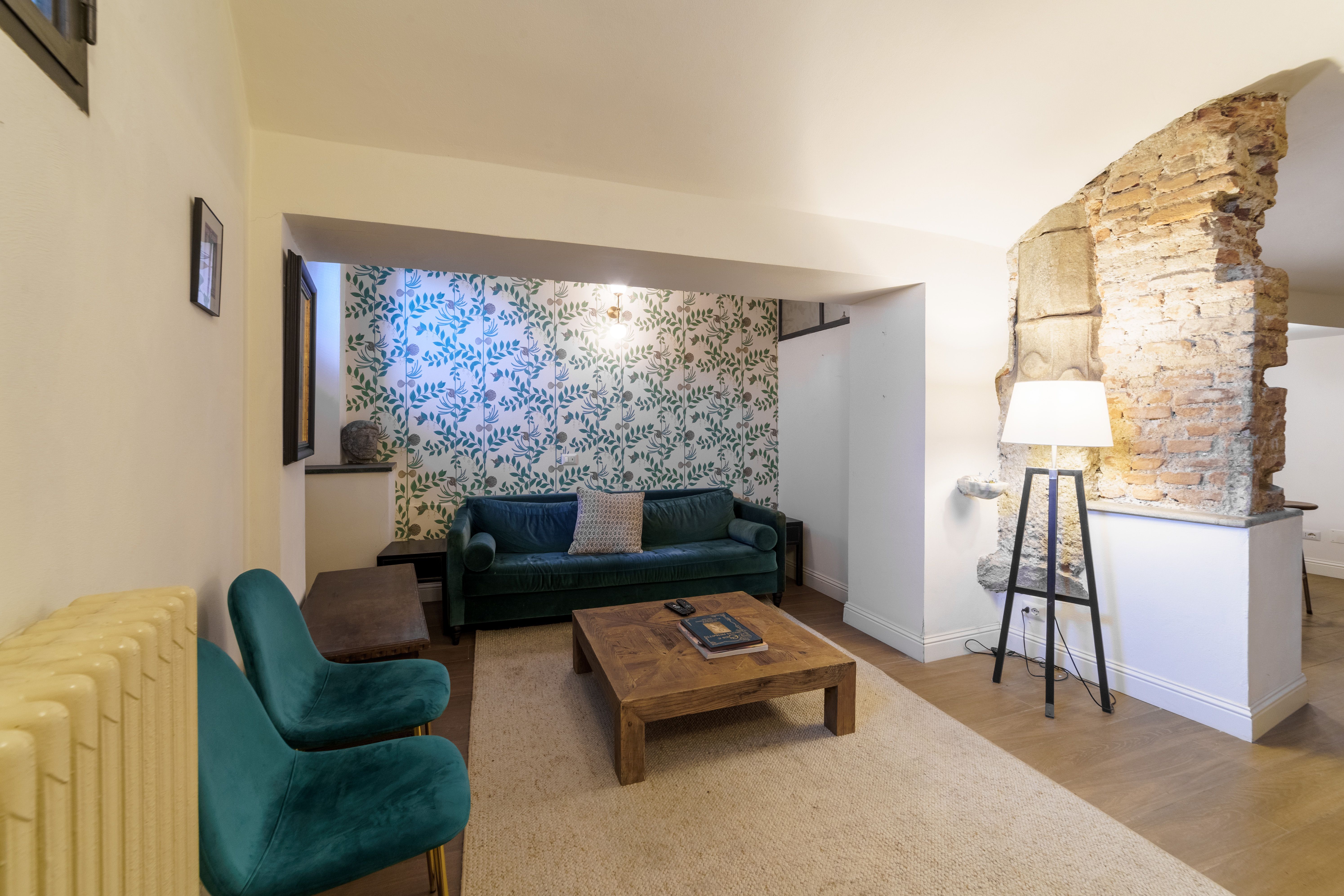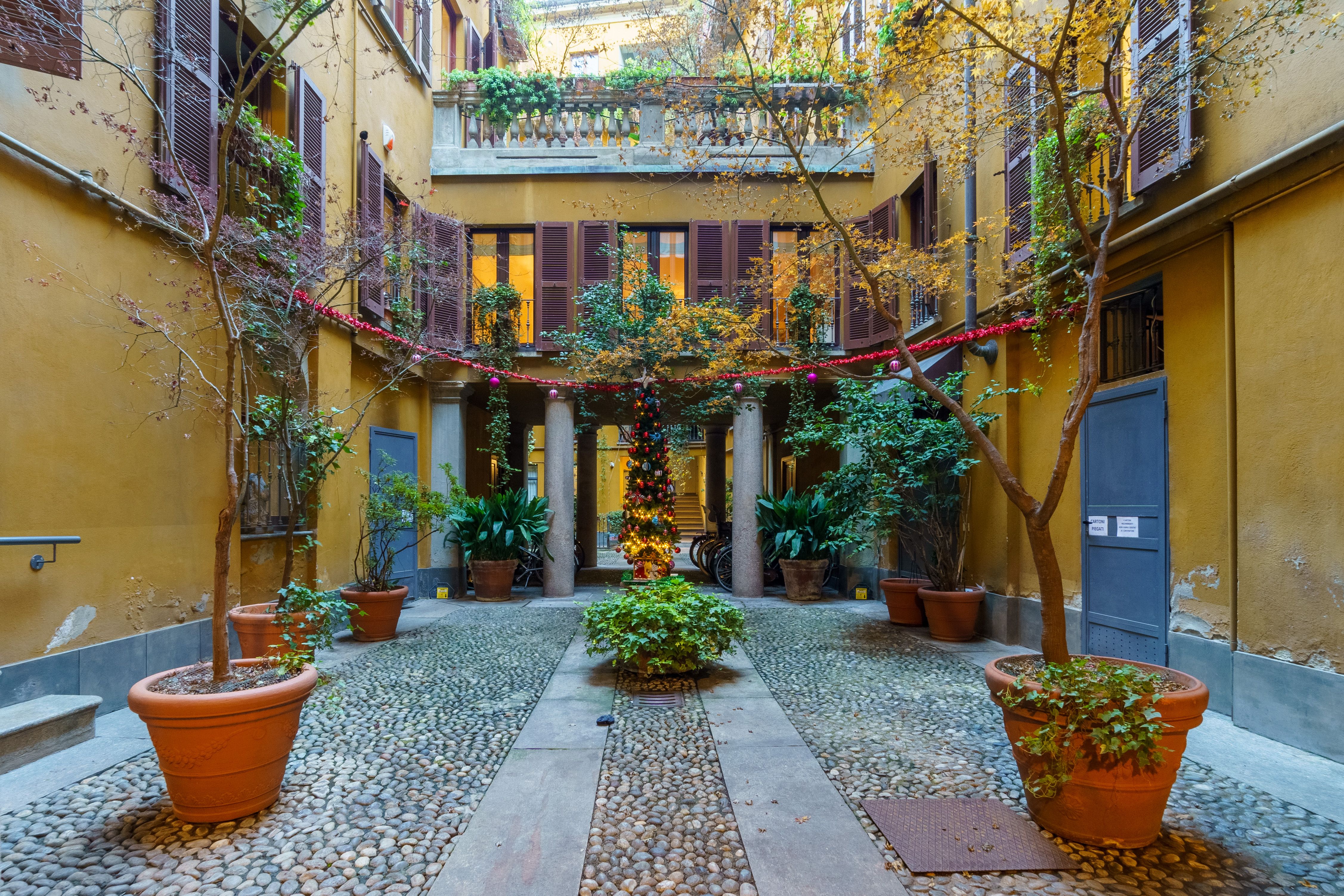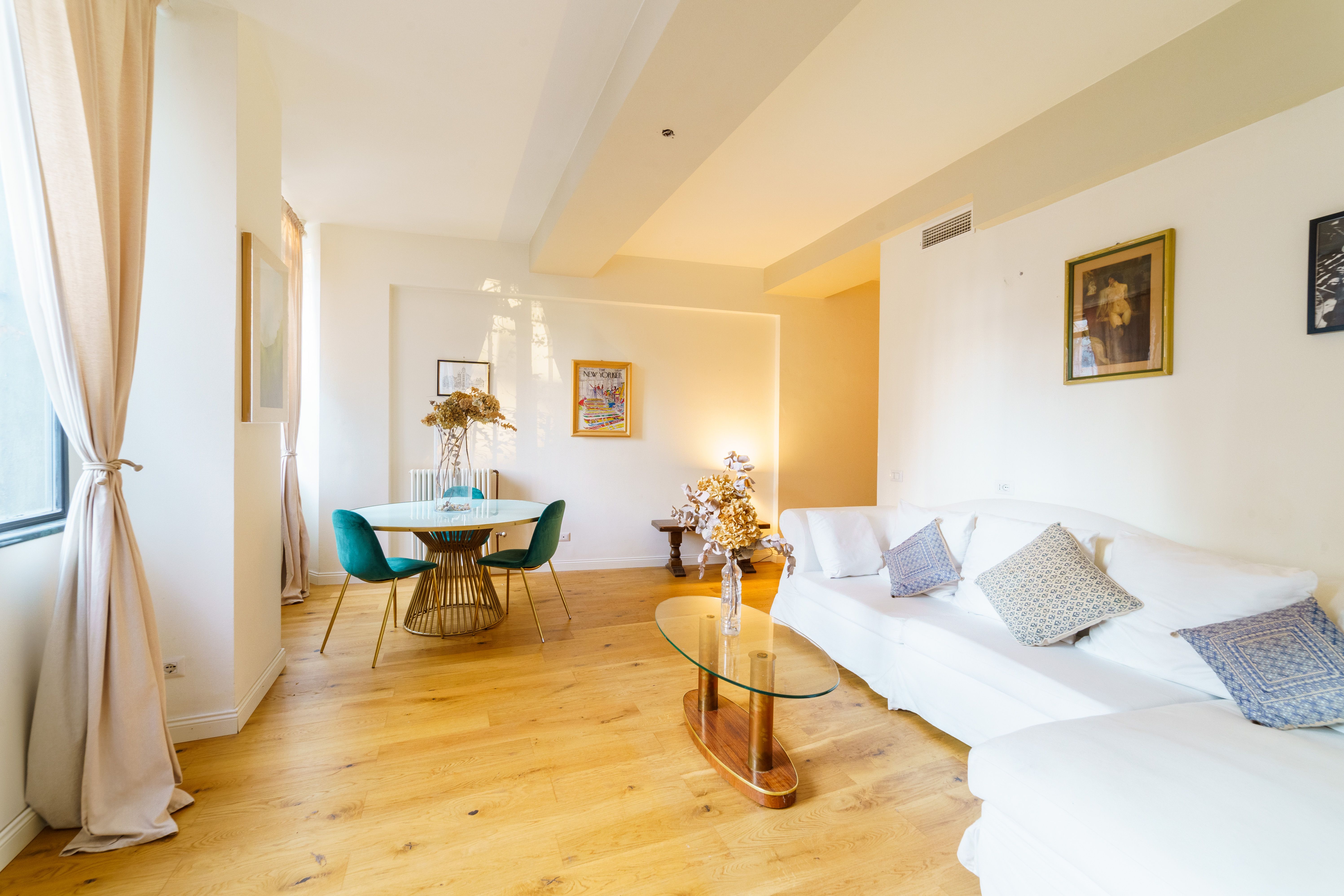 This two-floor apartment is situated on a quiet but central street in Milan. It’s in a peaceful spot but is within walking distance of the city’s main attractions – the Duomo is just a fifteen-minute walk away. You’ll also be close to shops, restaurants, and transport links. The apartment blends classic features like exposed brick and dark wood furniture with modern elements that make it a bright, welcoming home-from-home. At full occupancy, two guests will sleep on a sofa bed in the living room.