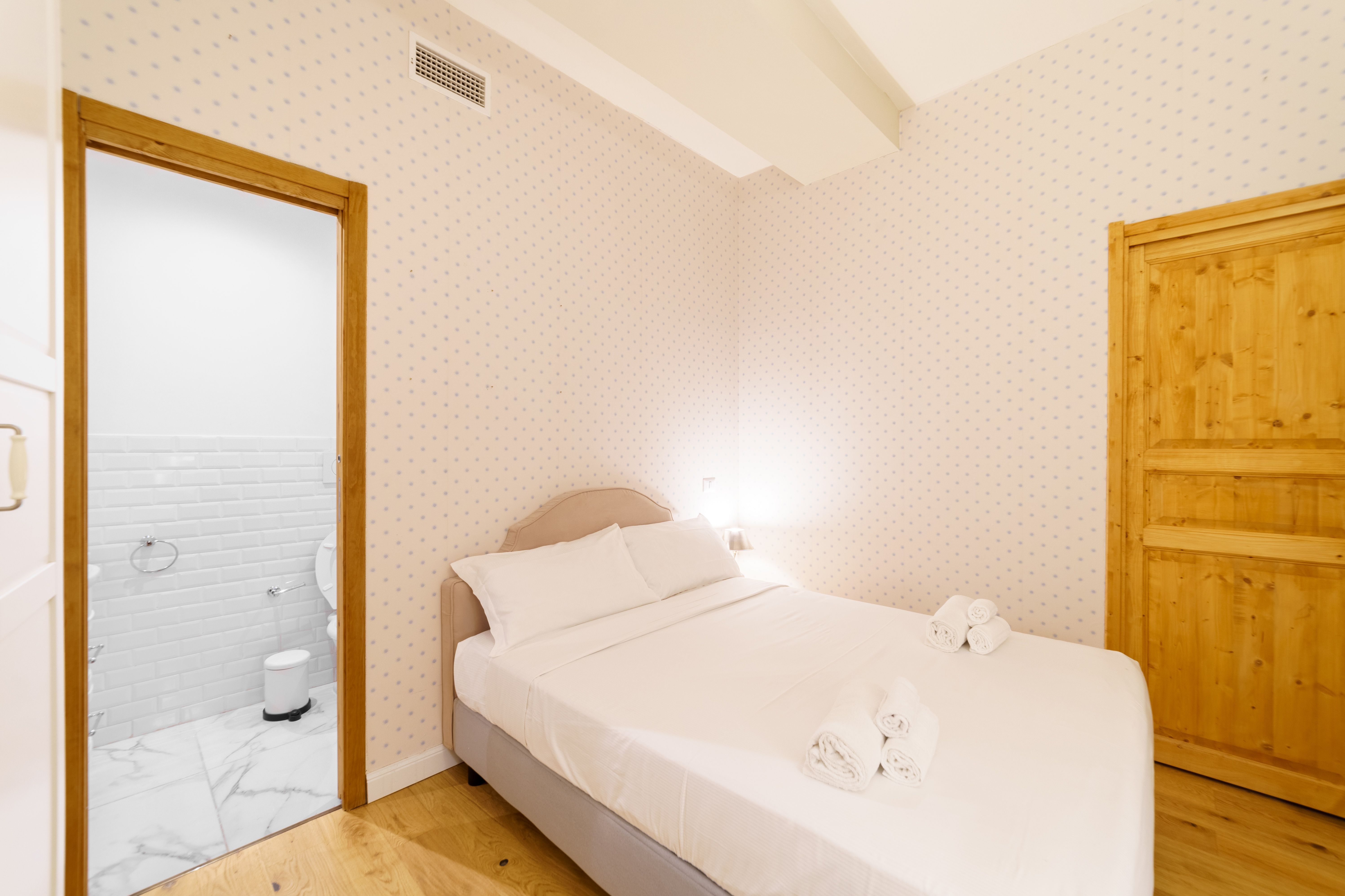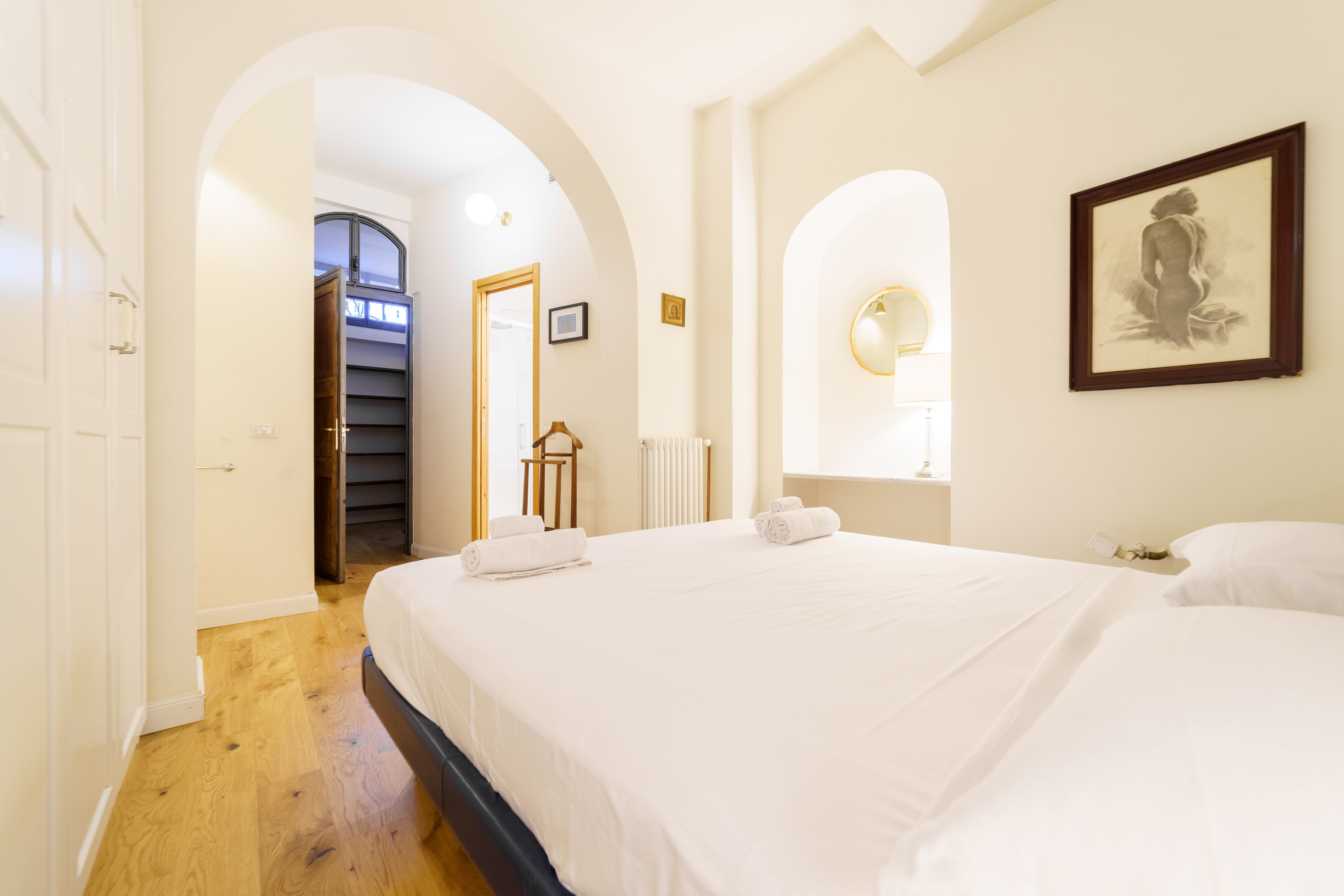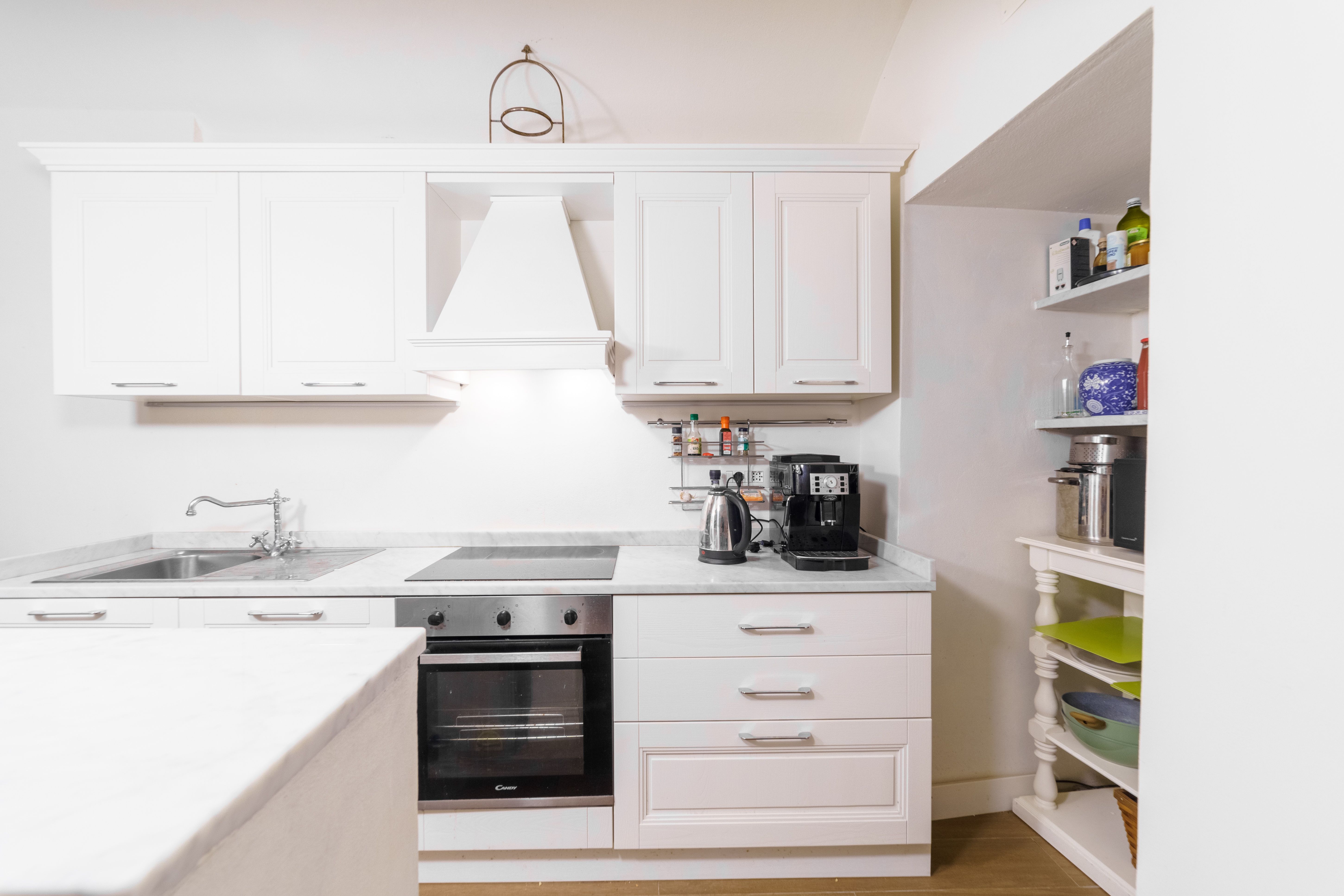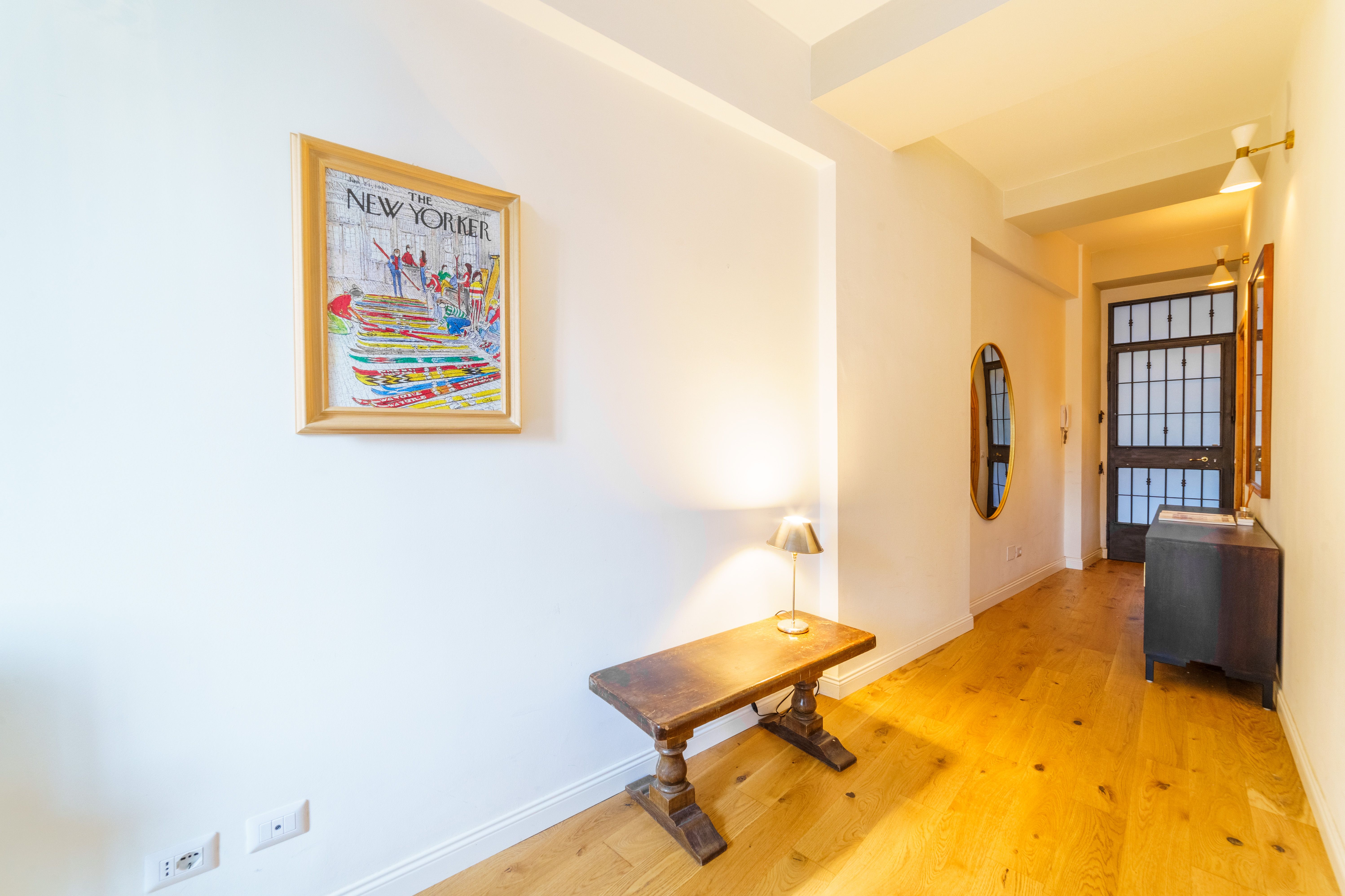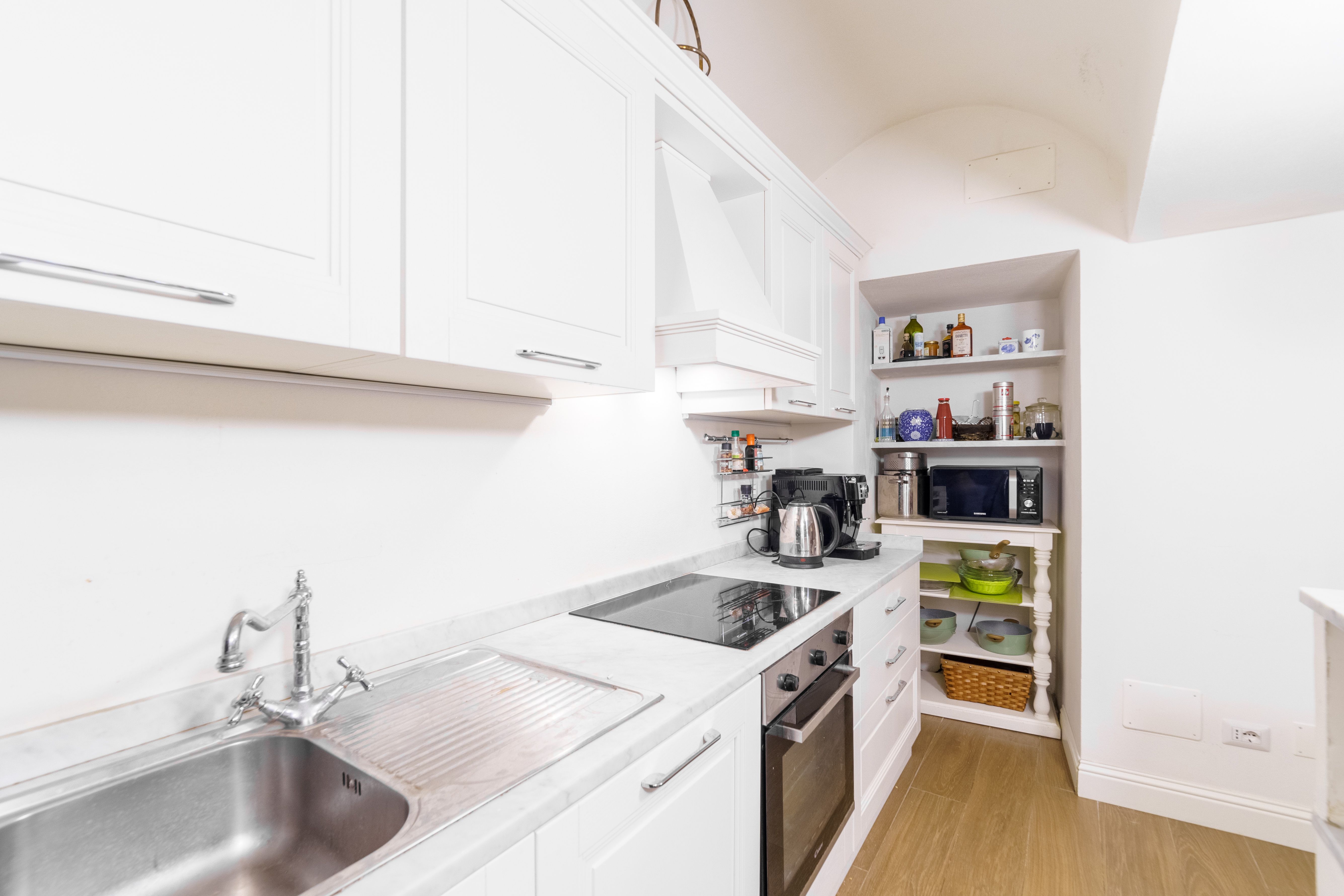 This two-floor apartment is situated on a quiet but central street in Milan. It’s in a peaceful spot but is within walking distance of the city’s main attractions – the Duomo is just a fifteen-minute walk away. You’ll also be close to shops, restaurants, and transport links. The apartment blends classic features like exposed brick and dark wood furniture with modern elements that make it a bright, welcoming home-from-home. At full occupancy, two guests will sleep on a sofa bed in the living room.