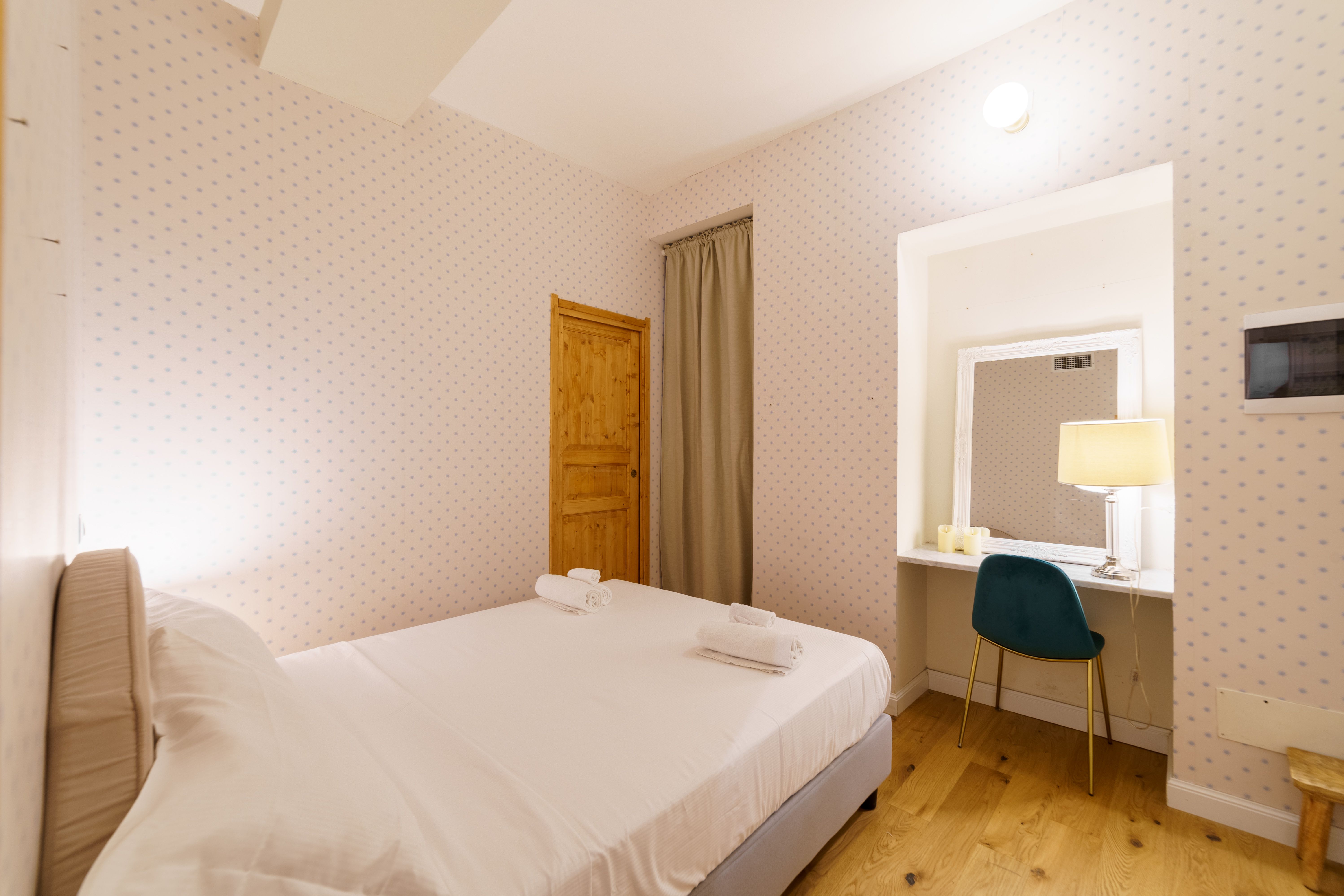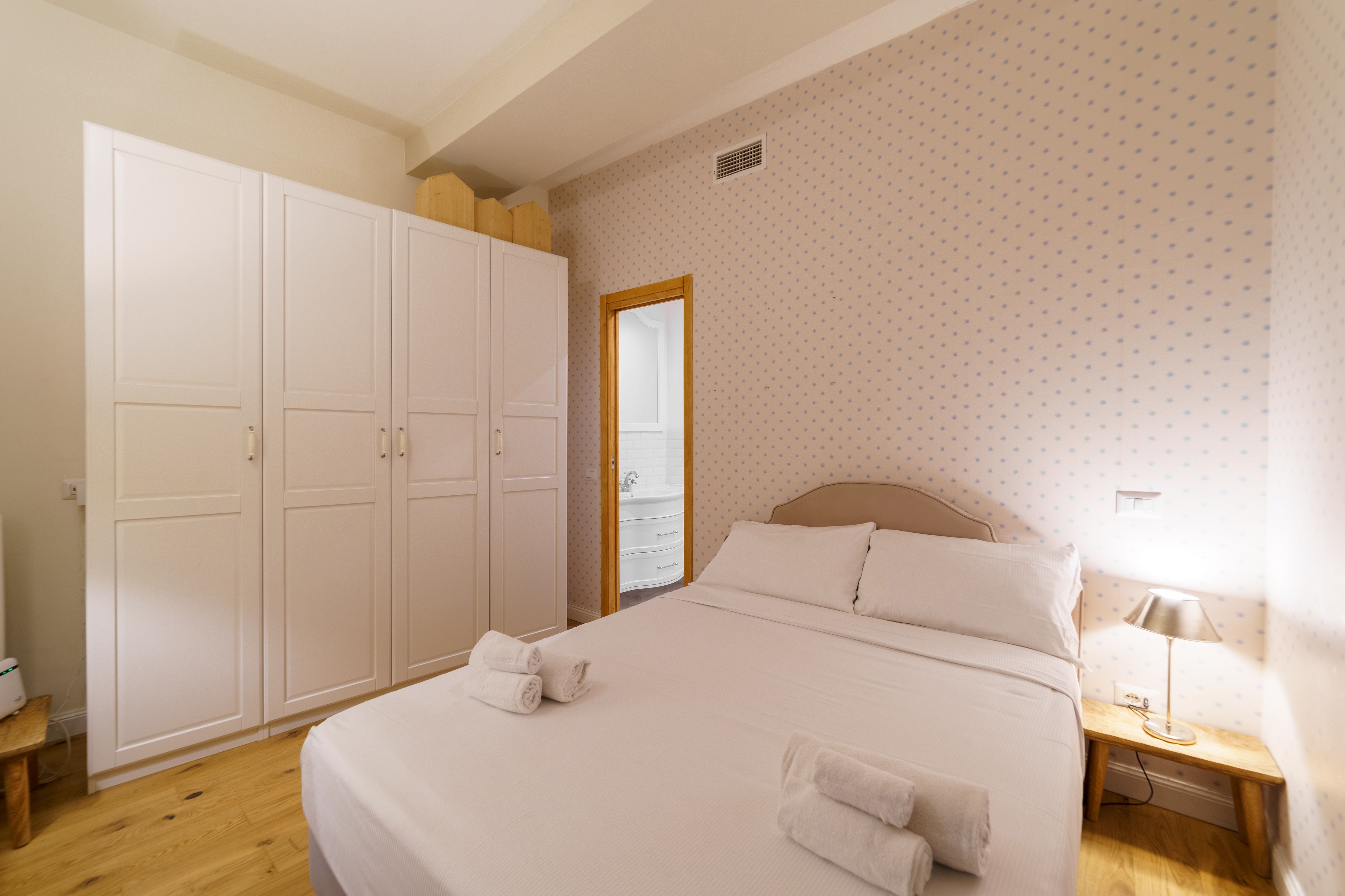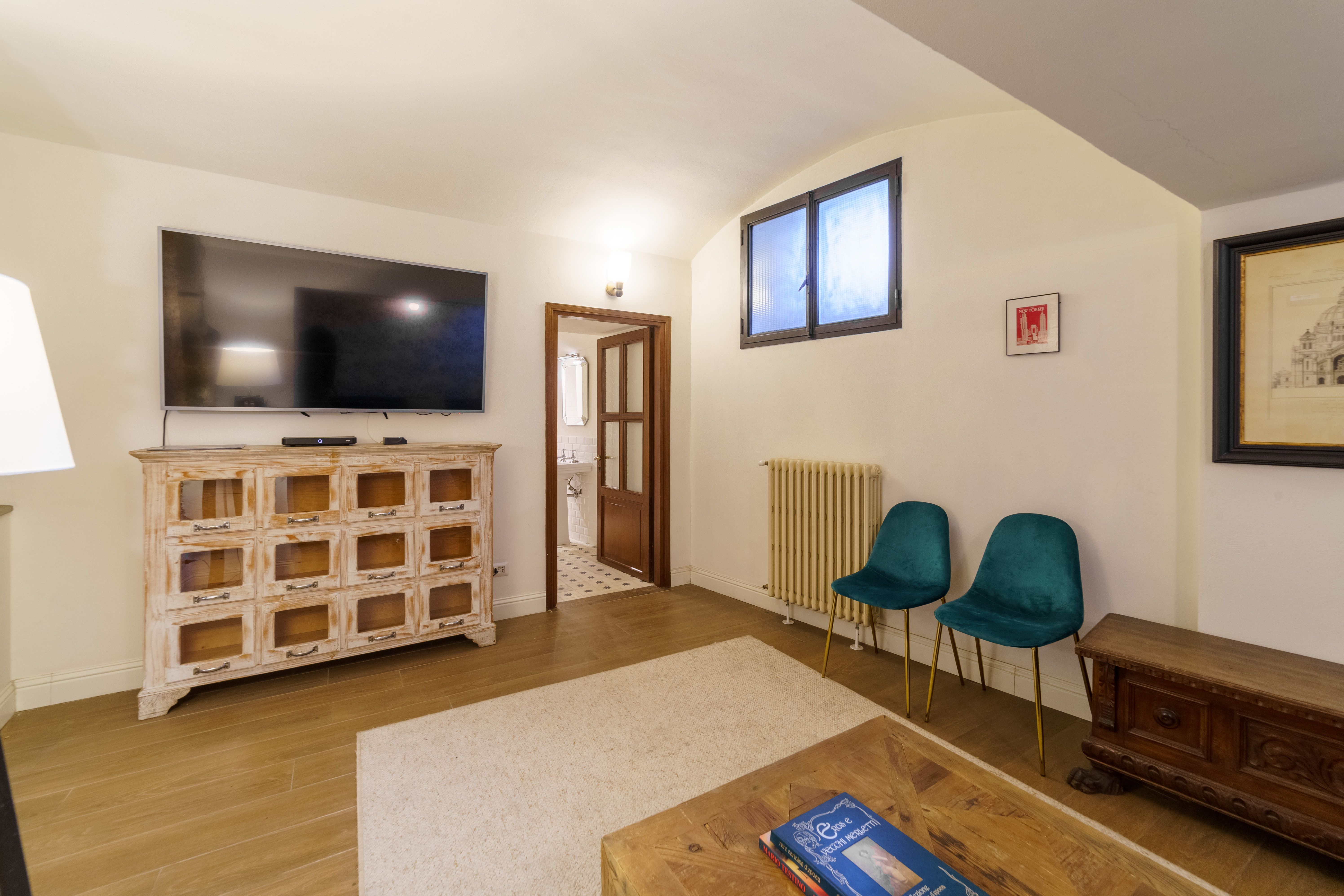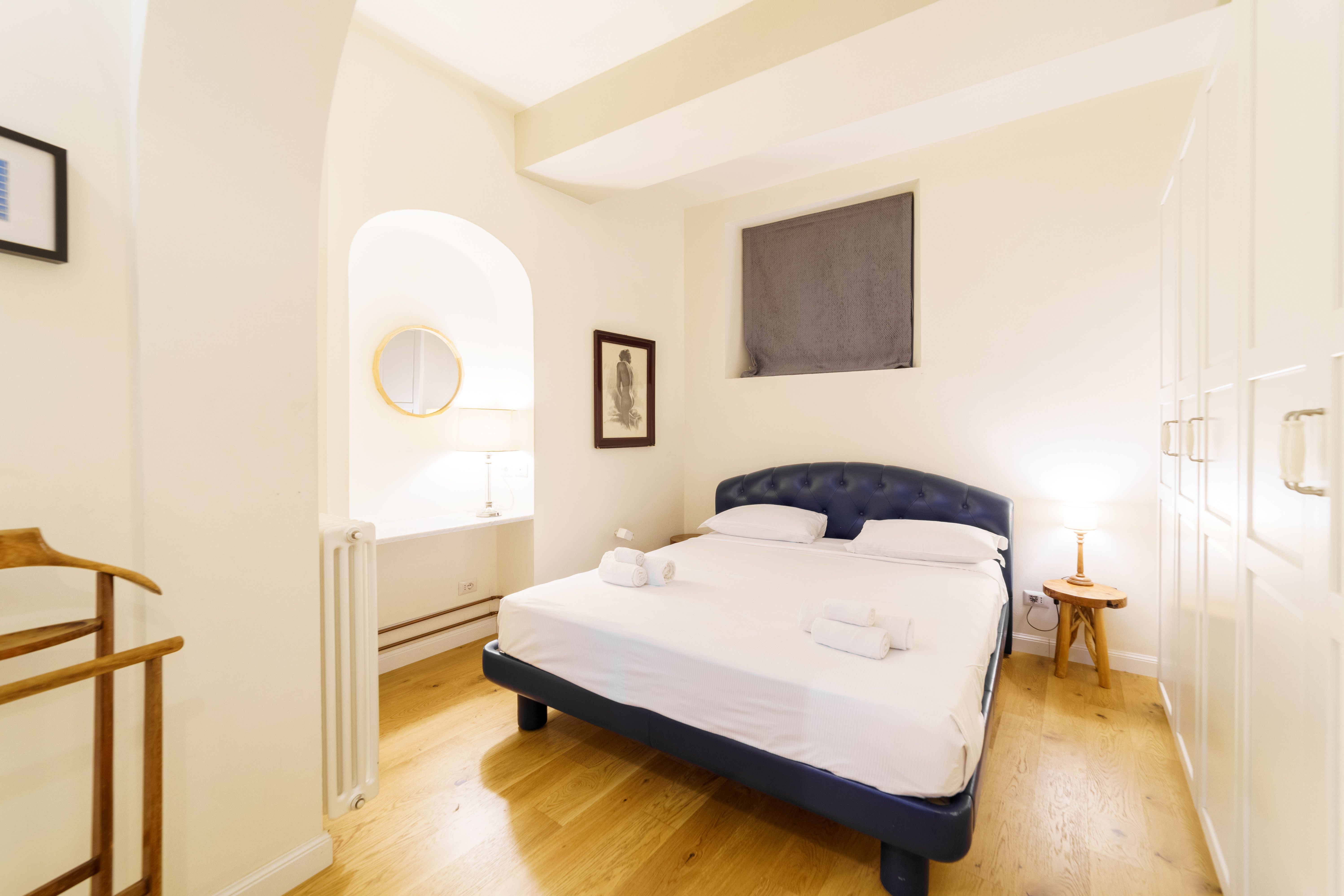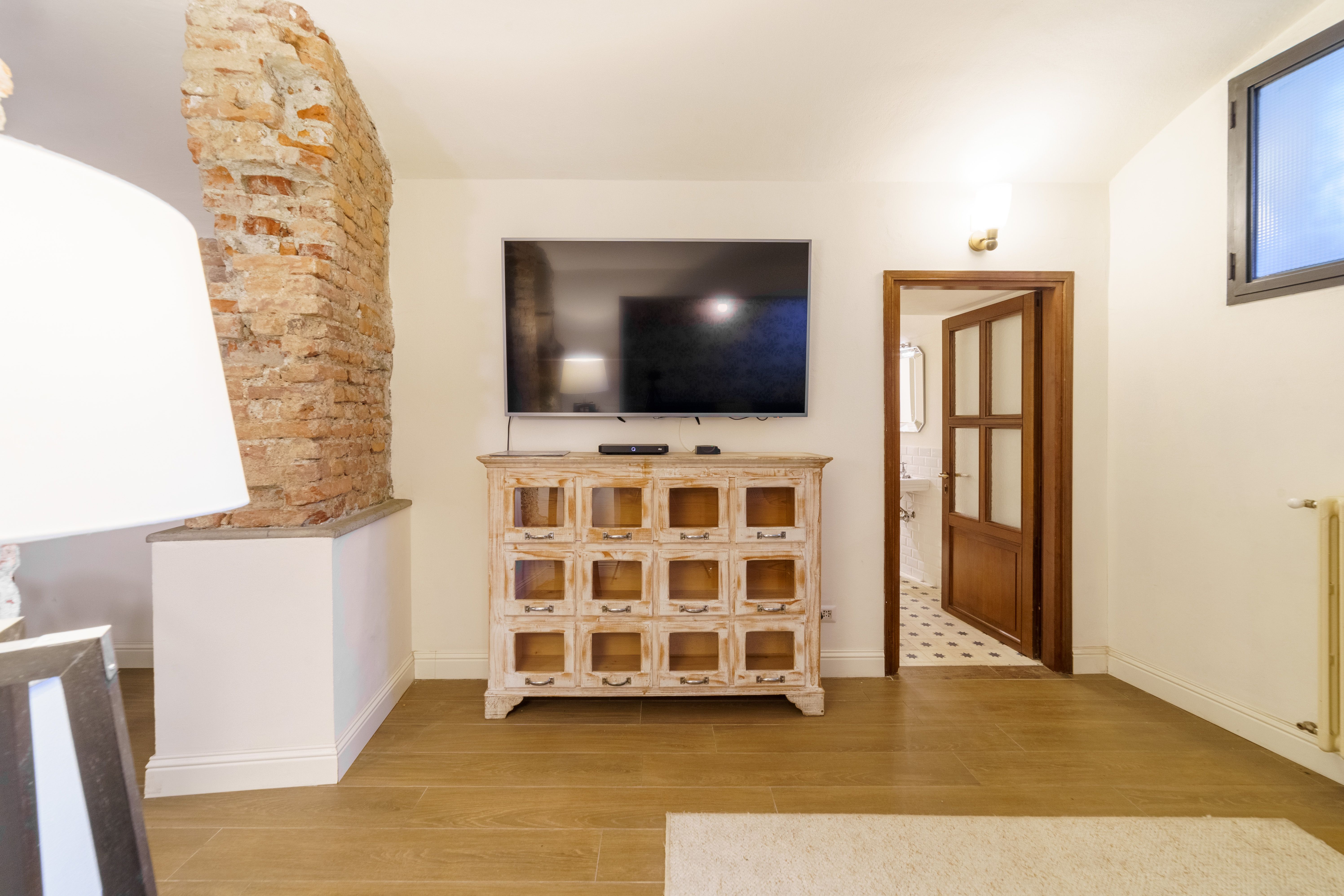 This two-floor apartment is situated on a quiet but central street in Milan. It’s in a peaceful spot but is within walking distance of the city’s main attractions – the Duomo is just a fifteen-minute walk away. You’ll also be close to shops, restaurants, and transport links. The apartment blends classic features like exposed brick and dark wood furniture with modern elements that make it a bright, welcoming home-from-home. At full occupancy, two guests will sleep on a sofa bed in the living room.