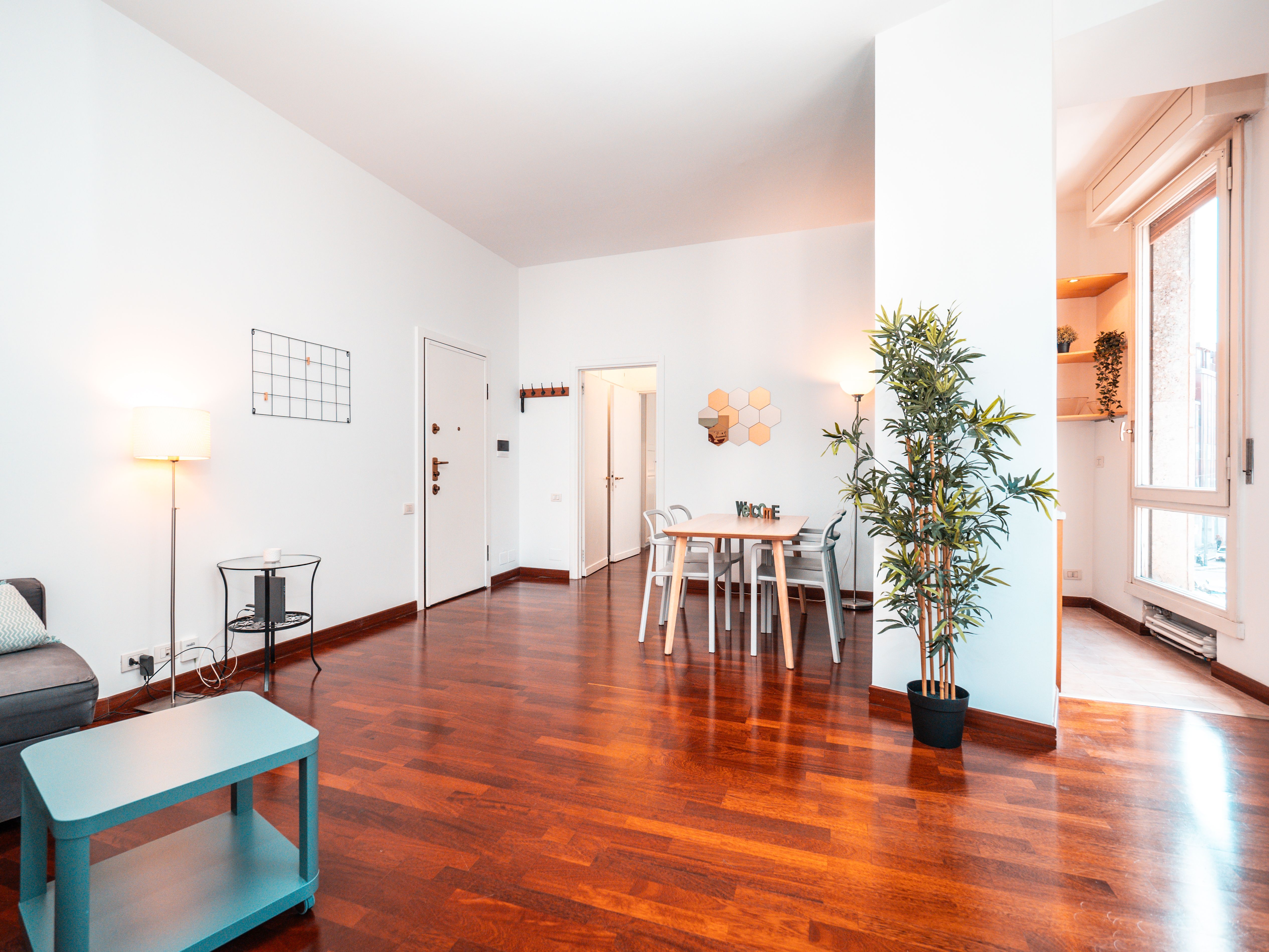 If you're visiting Milan to see the sights, this apartment is ideal. You can walk to most of the landmarks, be it the iconic Duomo or the lively canal district of Navigli (both around fifteen minutes on foot). Shops, restaurants, cafes – all the essentials are at your fingertips here. Back home, the design is fuss-free but comfortable. The living area has plenty of room to stretch out after your adventures. Just note that two guests will sleep on a sofa bed, making it better suited to quick visits.