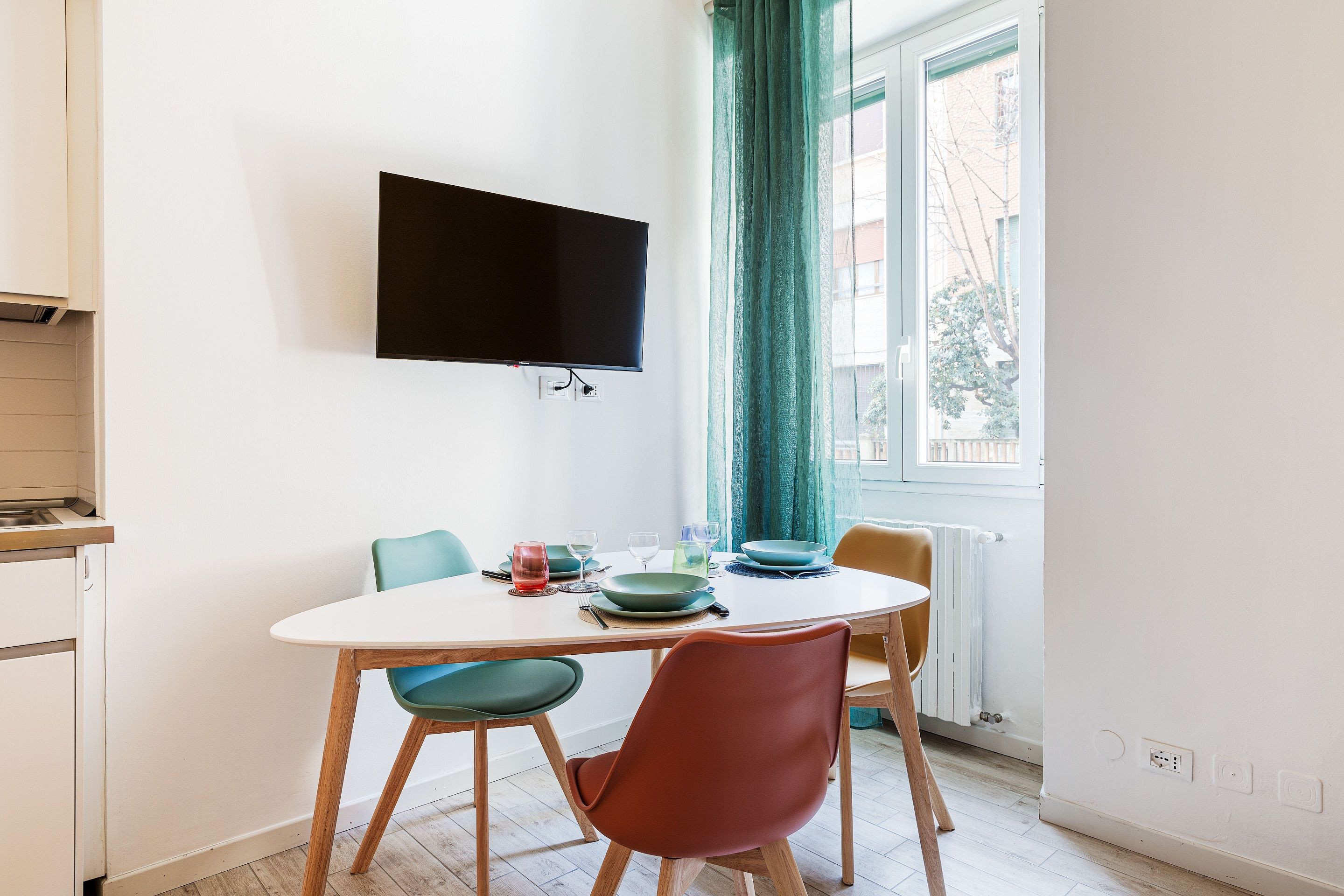 Space might be limited, but this apartment in Milan’s Città Studi district knows exactly how to make it work. Recently renovated with a crisp finish, it keeps things simple without feeling sparse. Clean lines, bright pops of colour and warm wood touches give the place a contemporary touch, while thoughtful details – like the study space and open-plan kitchen ensure it’s practical. There’s a calm energy to the surrounding streets, and with the Polytechnic University just around the corner, this neighbourhood hums with laid-back local life. Plus, Lambrate station is only a few minutes away when you want to explore Milan.